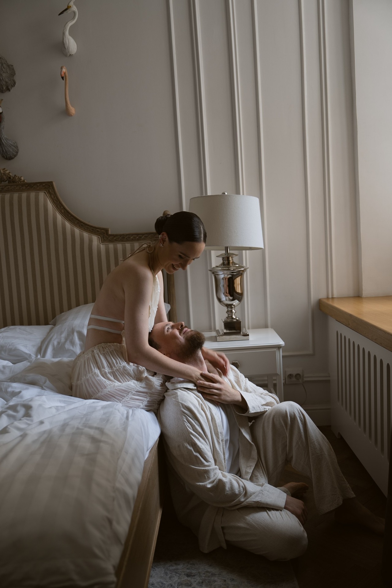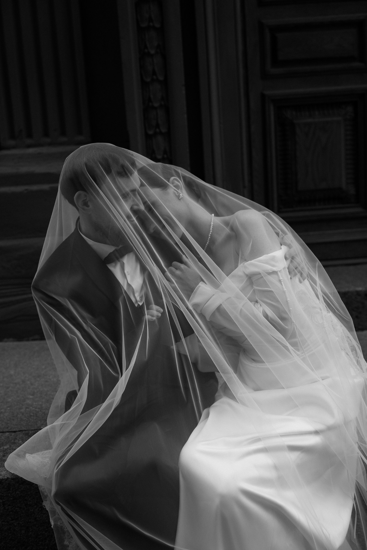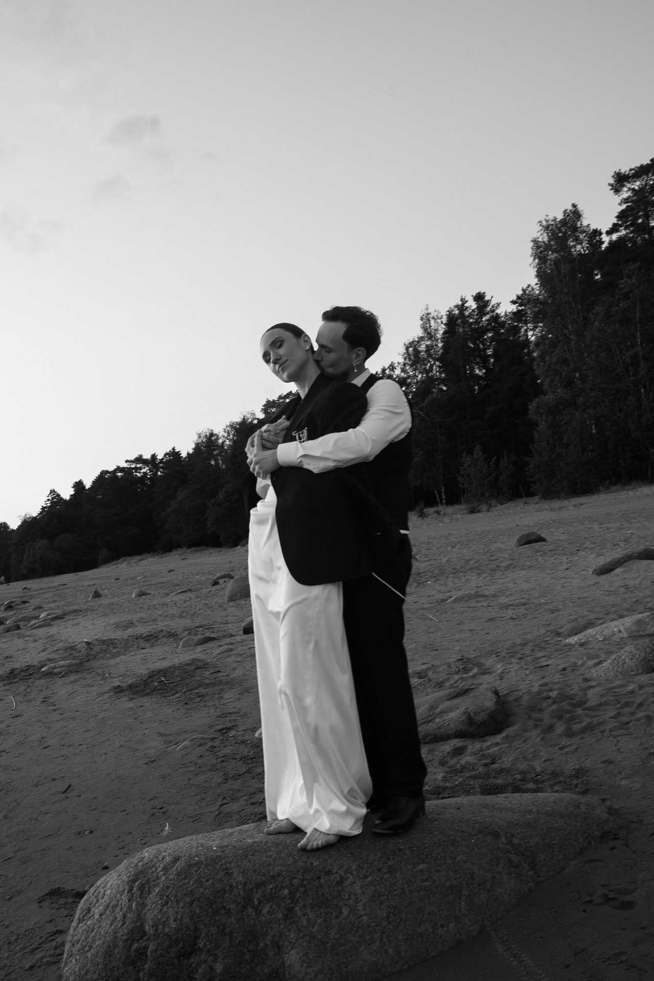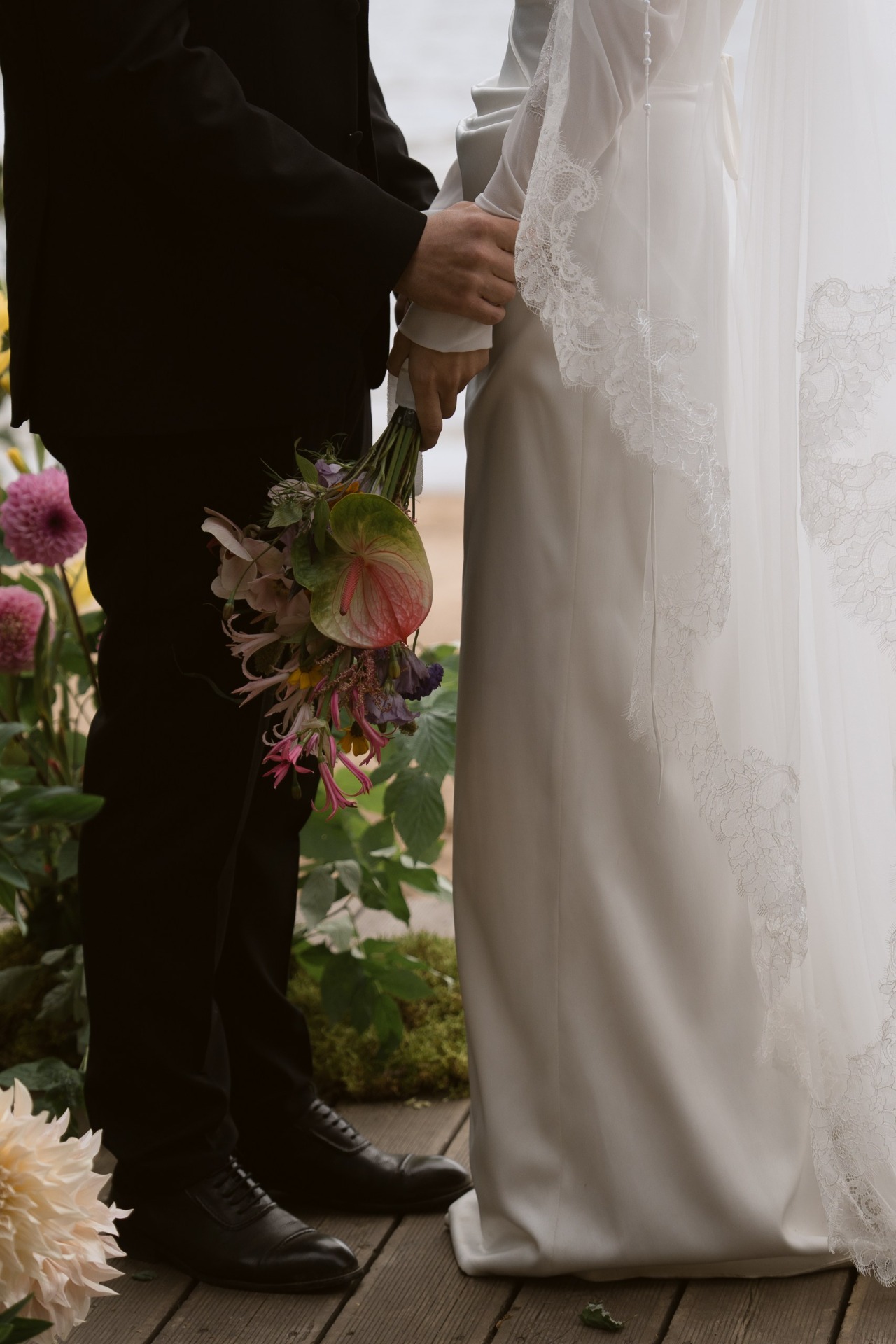 С моим платьем всё было сложнее. Я думала, что на первой же примерке у меня случится мэтч, но этого не произошло. Всё было не то, и, уже отчаявшись, я поехала в салон, где нашла его. Платье, которое не забирало всё внимание, не было изюминкой — оно было основой образа, классикой, которая соответствовала моему самоощущению и позволяла добавлять любые аксессуары.