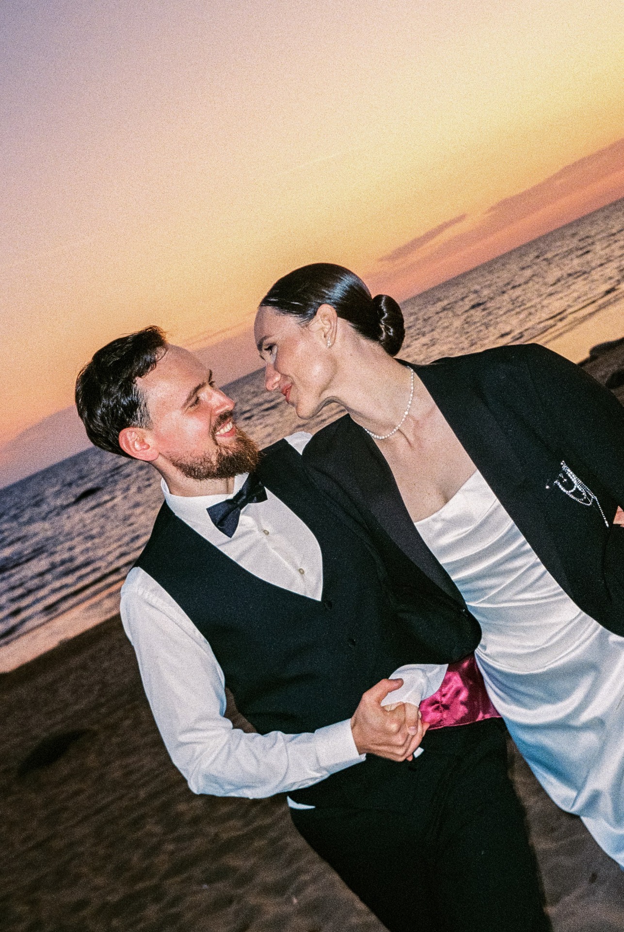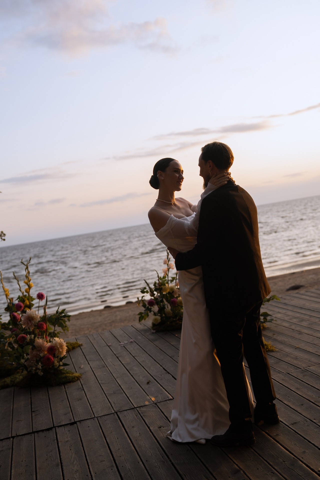 Мы так переживали, что погода на заливе будет неблагоприятной, но и тут всё сошлось. Наш первый танец прошёл на закате у залива! Чего ещё можно желать?