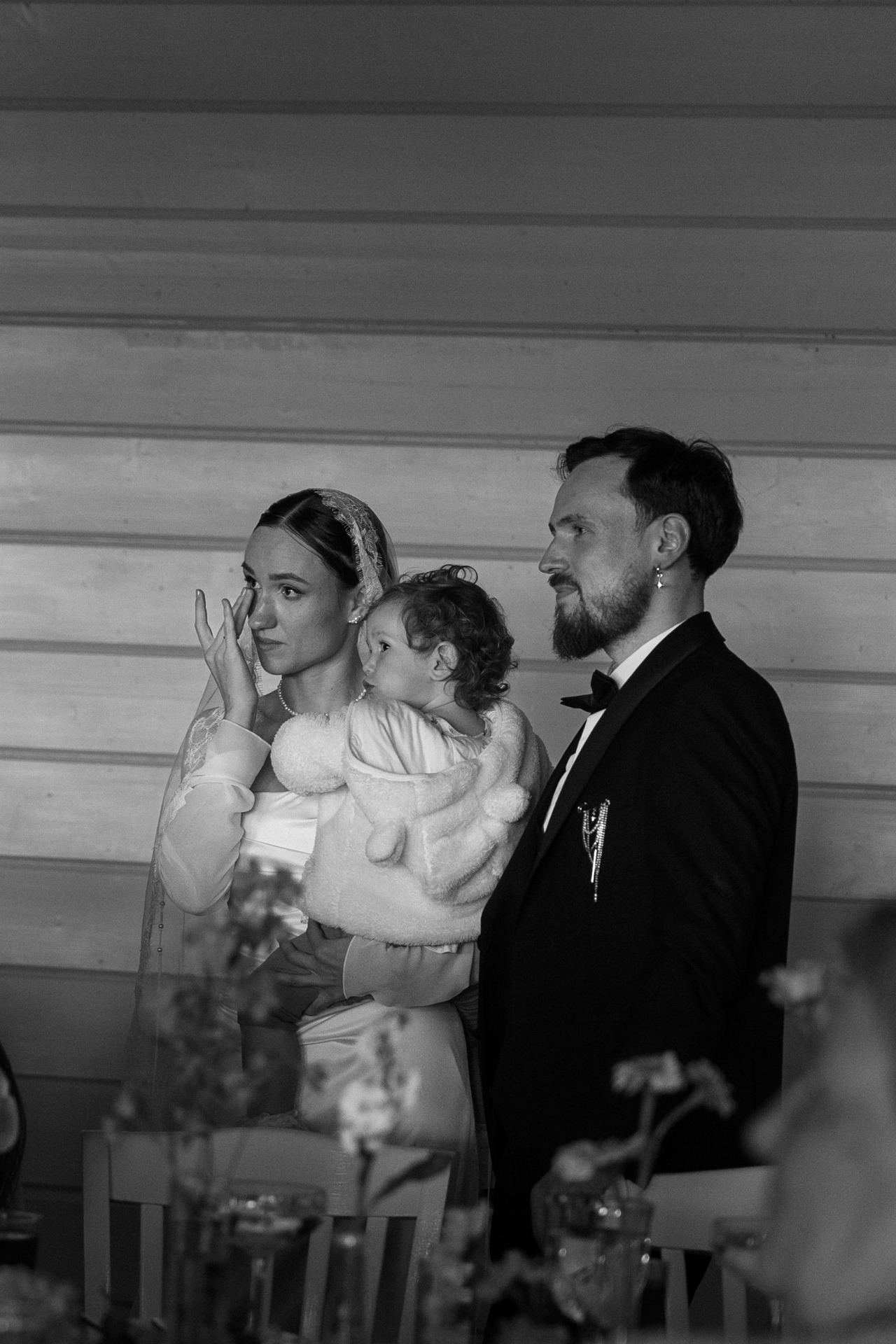 Для нас важны были детали: свадьба за городом, уютное торжество, без неловких моментов и, конечно, kids friendly формат, ведь к моменту свадьбы нашей малышке уже исполнилось 1,5 года.