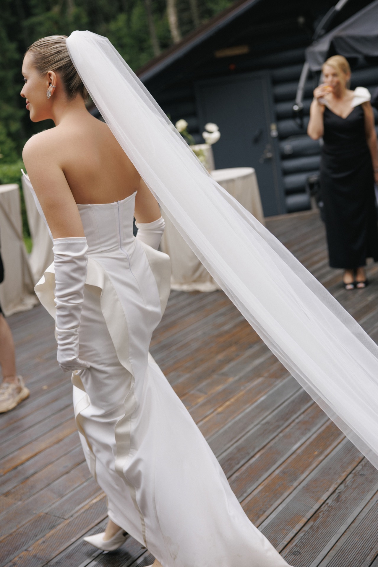 Для утра невесты Настя выбрала образ от бренда Looksee. Для церемонии она предпочла платье от Say no more, оно было воплощением элегантности и изысканности. Классика, благородные ткани и минимум декора – всё говорило о вкусе невесты. Для второй части торжества Настя подобрала платье от Murashka, которое отличалось большей лёгкостью и свободой. Воздушная ткань, струящийся силуэт, получился романтичный и кокетливый образ. В этом платье Настя могла свободно двигаться и танцевать, наслаждаясь каждой минутой праздника.
