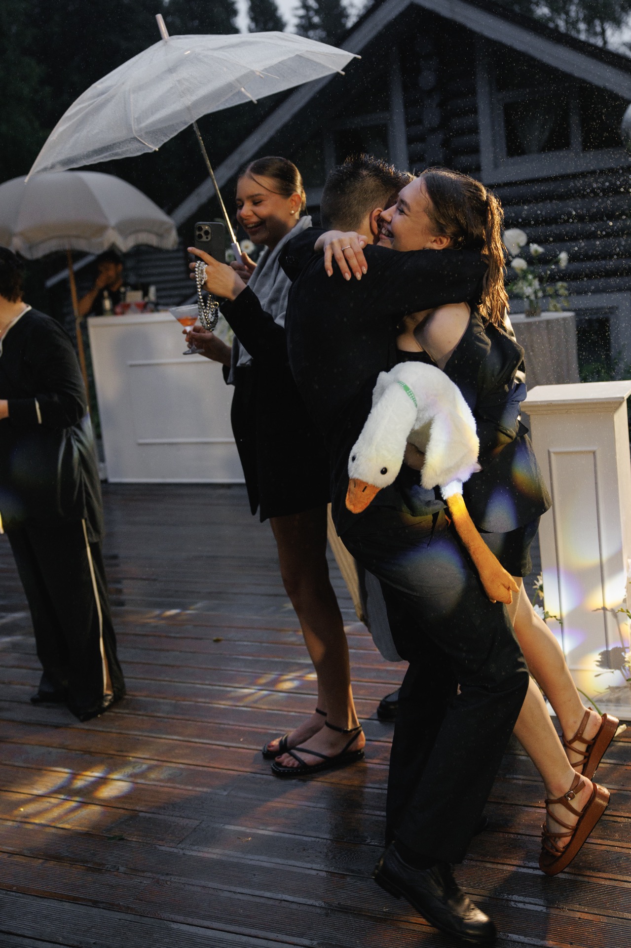 В этот день всё утро светило солнце, а к моменту выхода Насти на церемонию, началась гроза. Ребята произносили свои клятвы под звуки грома! Дождь периодически то заканчивался, то начинался, и так было весь вечер, но это совсем не портило атмосферу, наоборот — все гости с горящим сердцем танцевали под дождем, это было уникально!