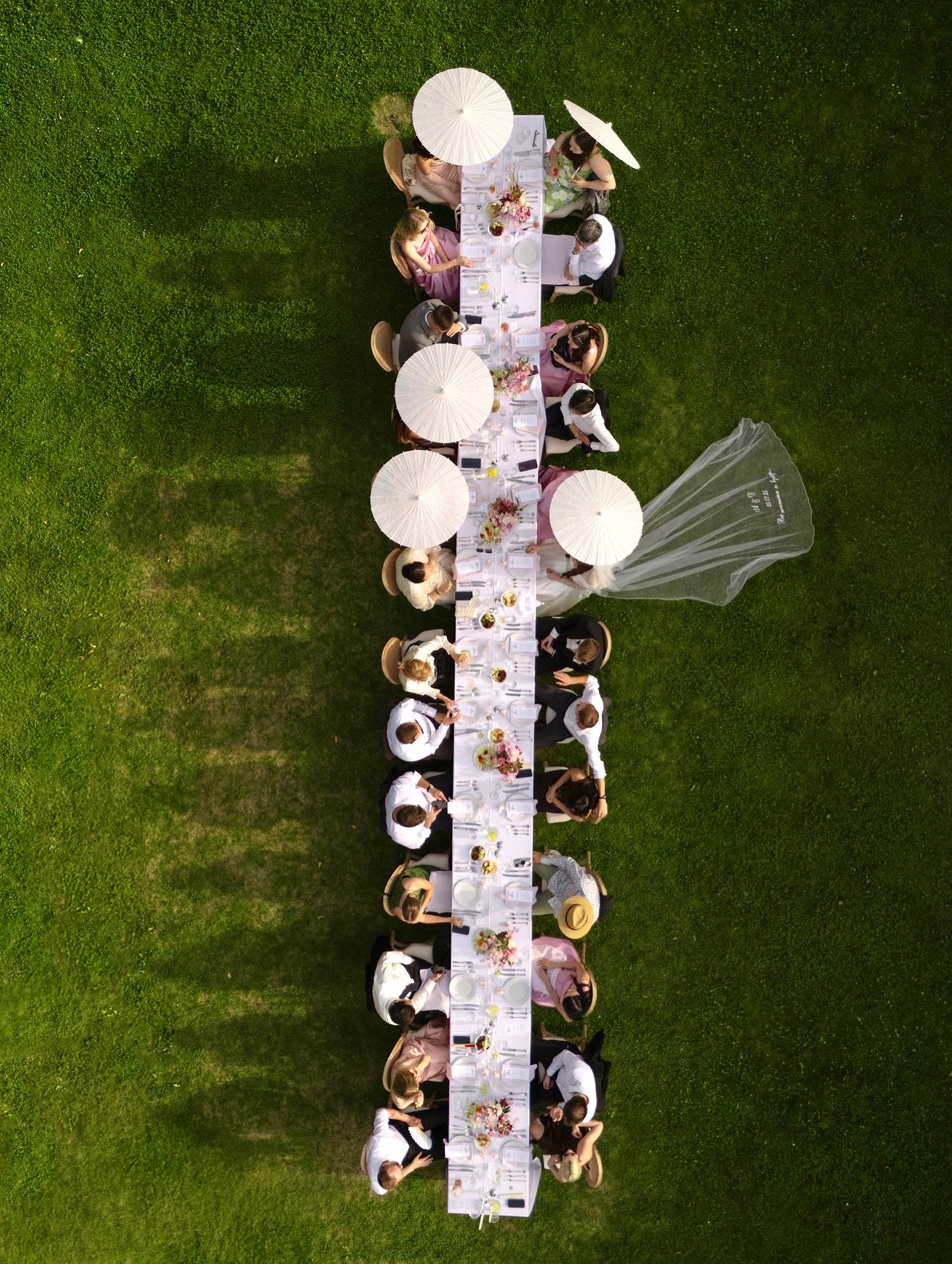 Вблизи дроны, во-первых, не дадут красивых снимков, а во-вторых, будут всем мешать. Это достаточно небезопасно и навязчиво. Идея: можно собрать гостей на одной территории и сделать общую фотографию.