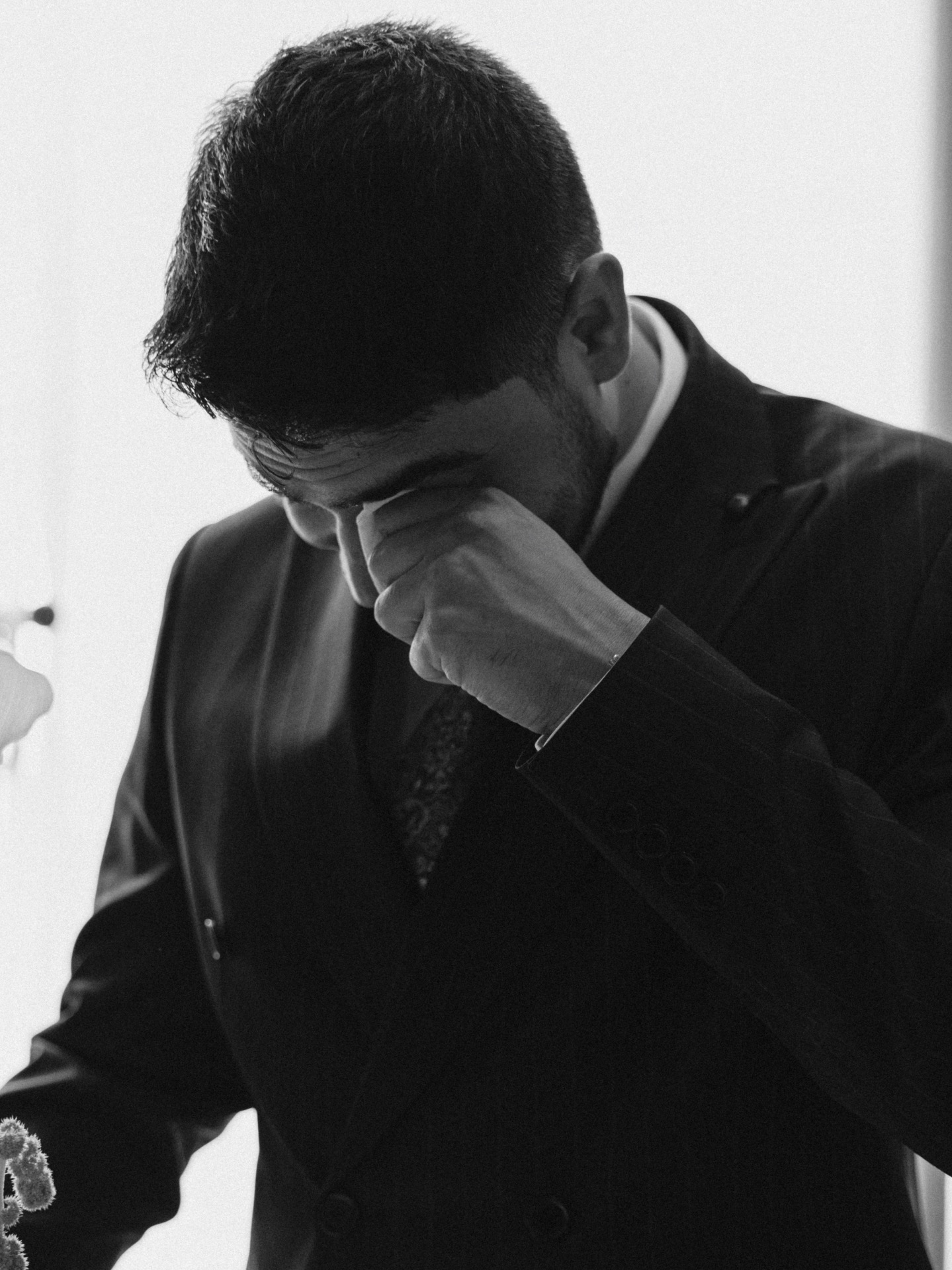 Гасан подошёл к выбору костюма более расслабленно, чем я. Всего за два месяца до свадьбы он нашёл свой идеальный вариант — итальянский двубортный костюм в тонкую полоску. Стильный, элегантный и при этом не слишком официозный, идеально отражавший его характер.