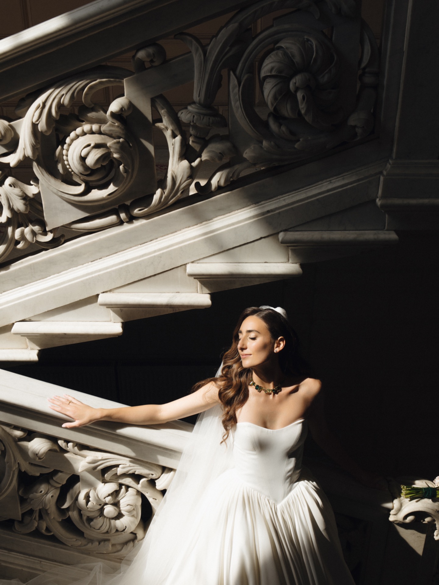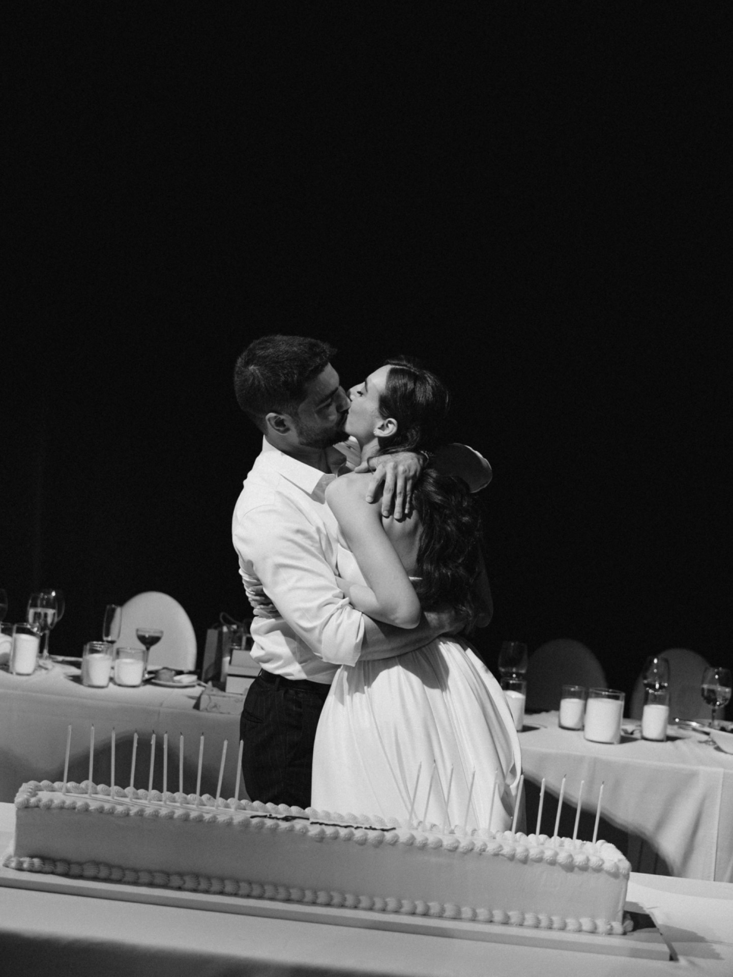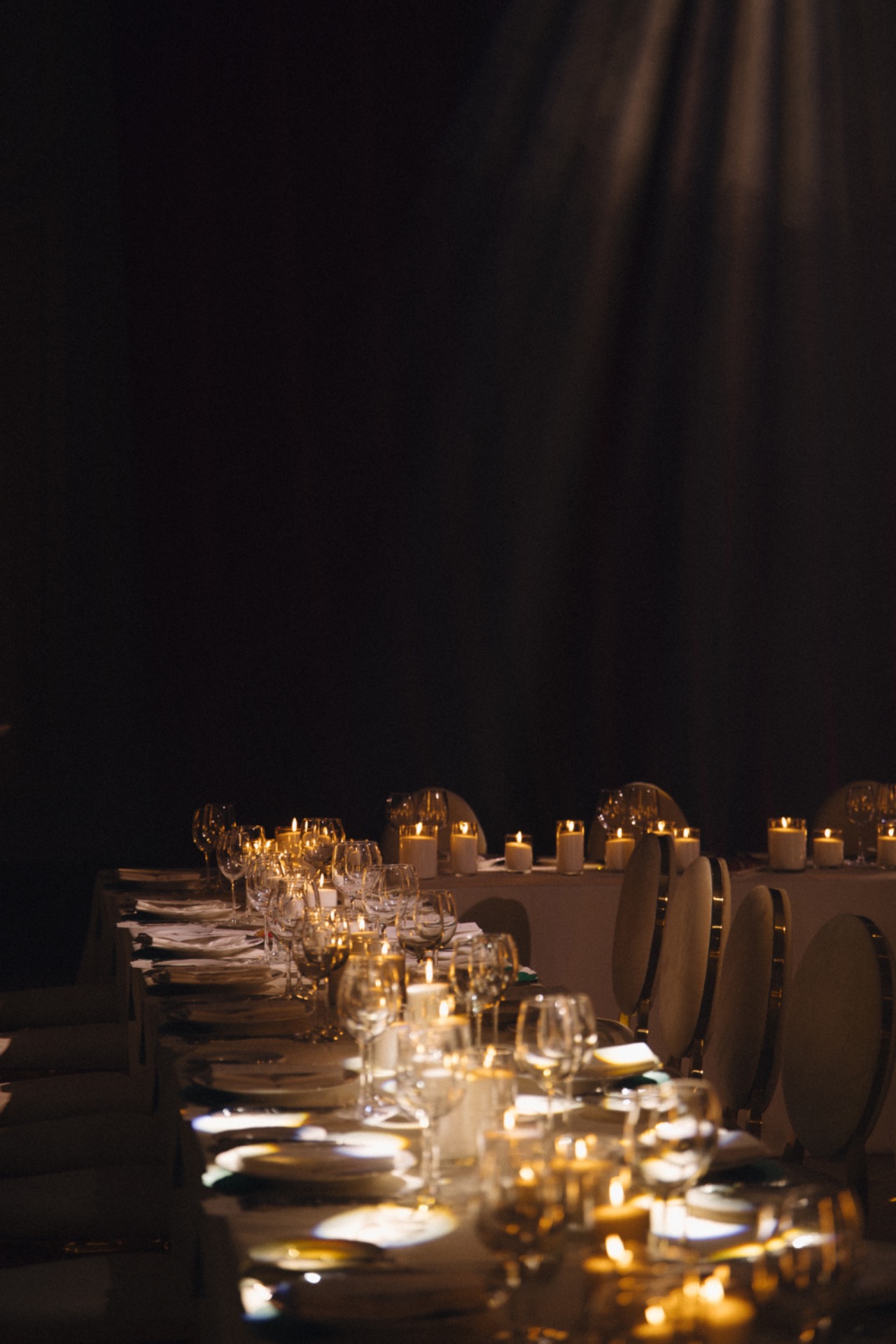 Мы хотели, чтобы всё выглядело изящно и вне времени. Площадку выбрали светлую, просторную, где сам интерьер стал декором. Столы мы украсили только свечами, чтобы создать мягкое, романтичное освещение.