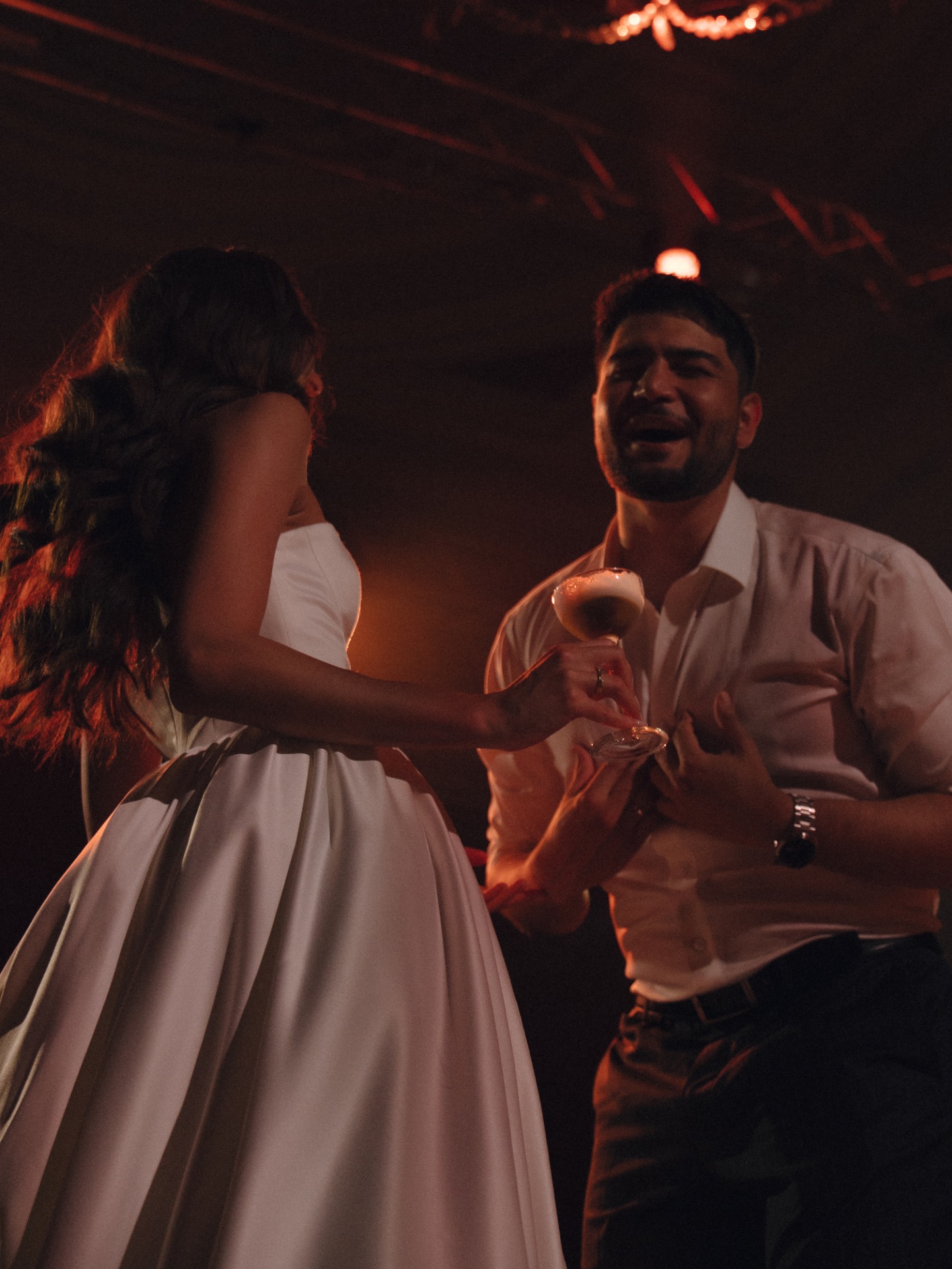 Церемония была трогательной и торжественной. Казалось, всё вокруг, от света до музыки, подстраивалось под нас. Обмен кольцами и наш первый поцелуй вызвали настоящий взрыв эмоций: любви, радости и предвкушения нового этапа жизни.