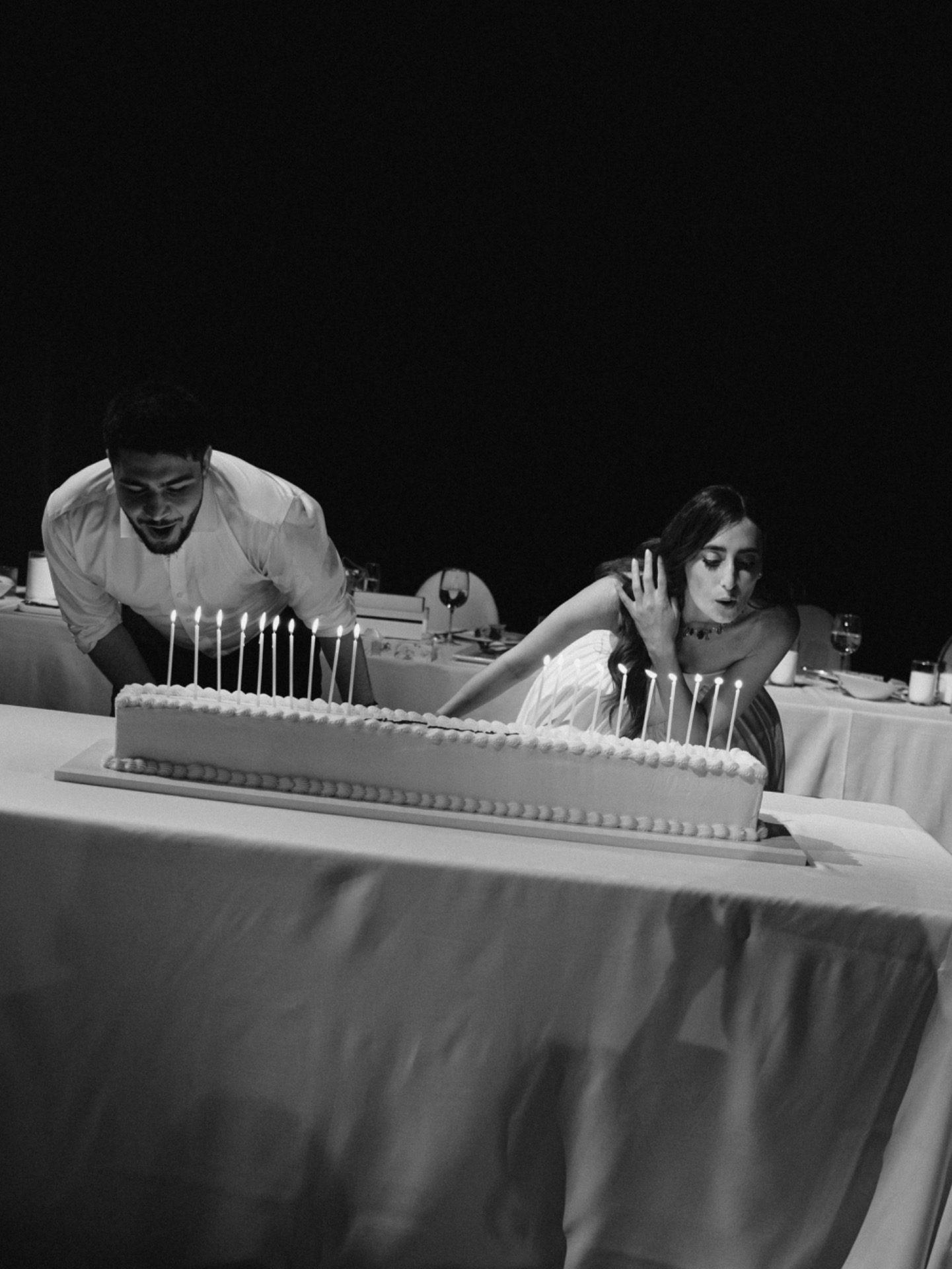 Когда появился торт, мы задули свечи и сразу же откусили его вдвоём, пропустив традиционное разрезание первого куска.