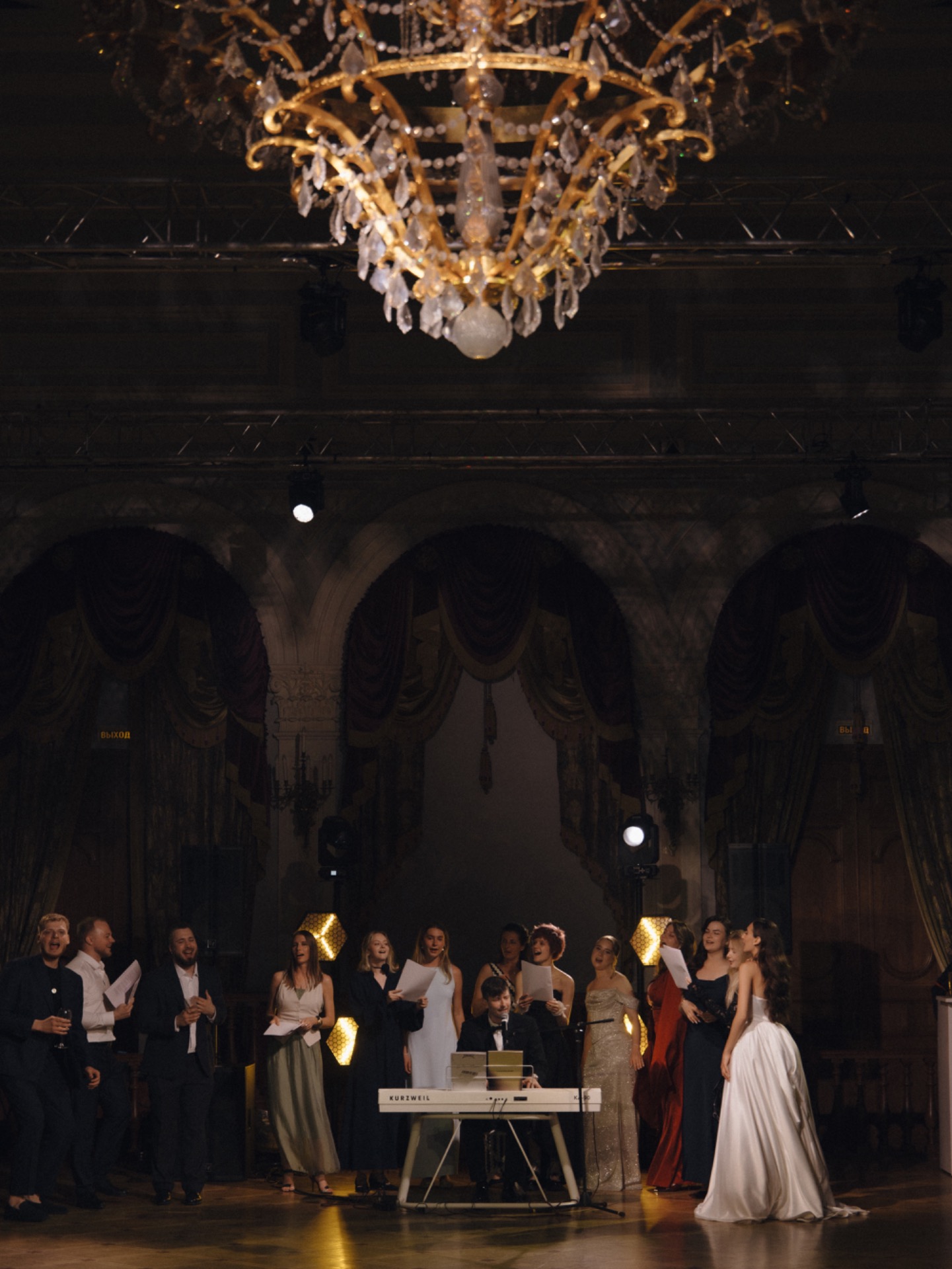 Подготовка заняла у нас всего полгода. За месяц до свадьбы произошёл форс-мажор: дворец, где мы должны были праздновать, внезапно отменил бронь. Но благодаря организаторам из KASLA Wedding всё решилось почти волшебным образом. Они нашли новую площадку, даже более атмосферную, чем первая.