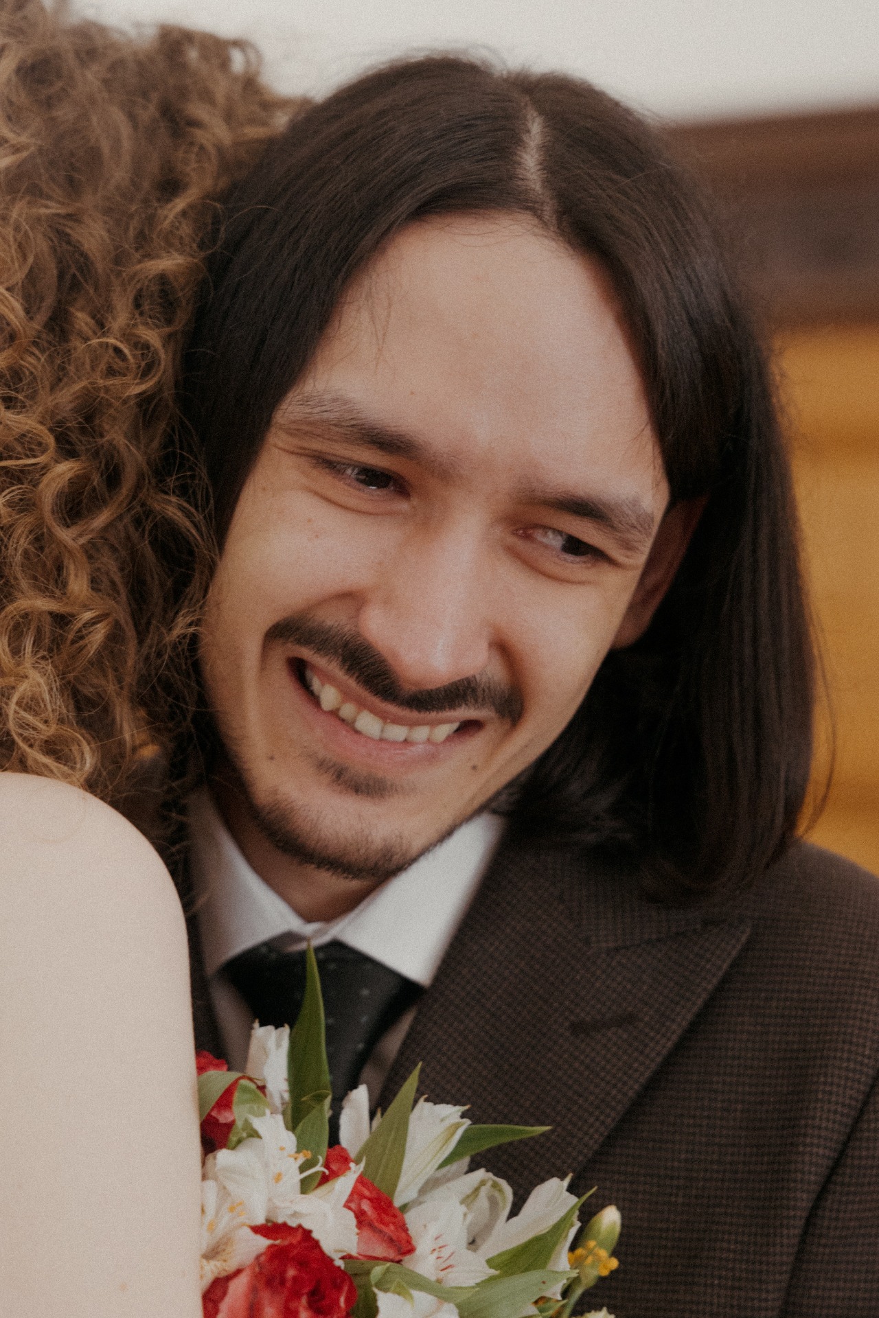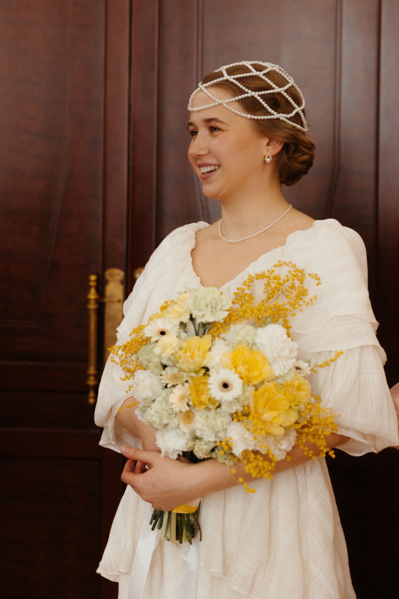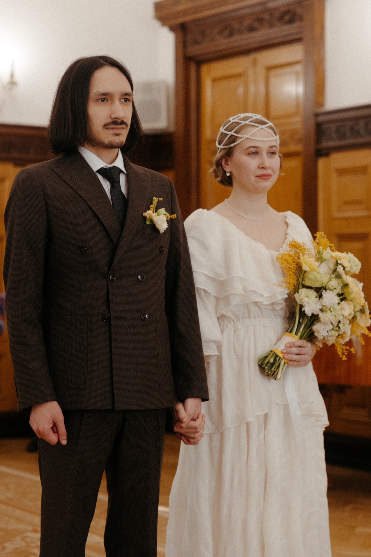 В день свадьбы я отказалась от «утра невесты» с фотосессией и выбрала завтрак с лучшей подругой и сборы в любимом салоне красоты. Жених собирался дома с лучшим другом, а полноценную совместную фотосессию мы решили не проводить, встретились уже в отеле прямо перед тем, как поехать в ЗАГС. Совместную мини-фотосессию мы провели перед регистрацией.