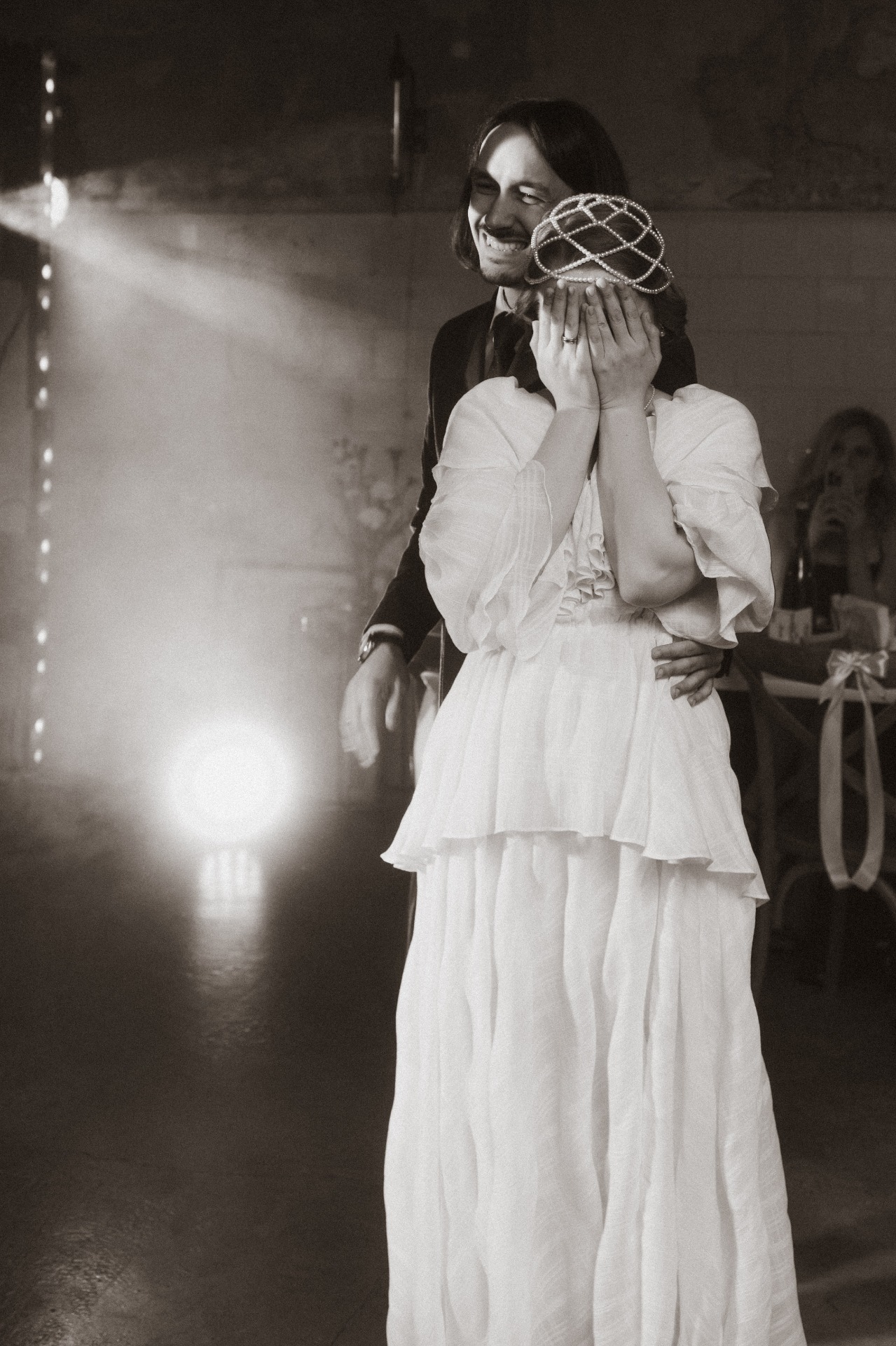 Мы не хотели традиционных свадебных активностей и конкурсов, поэтому заранее попросили некоторых гостей подготовить свадебные речи, их выступления стали важной частью программы вечера. У нас с женихом были микрофоны на столах, и по ходу ужина это помогало нам общаться с гостями. Гости были вовлечены в различные интерактивы: помогали составлять шуточные клятвы друг другу и писали записки с идеями для будущих свиданий. Это было очень трогательно!
