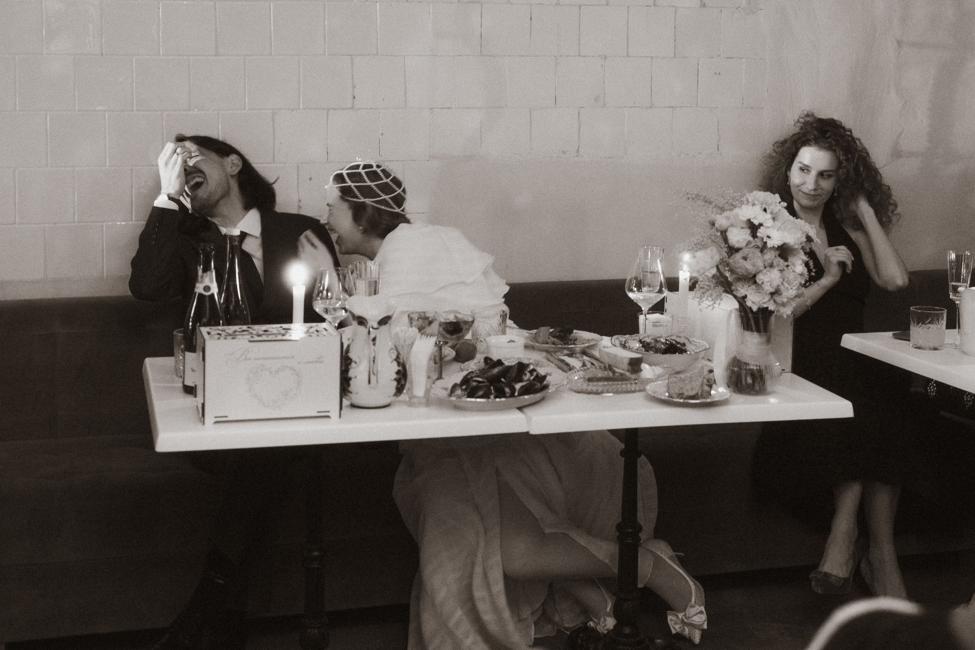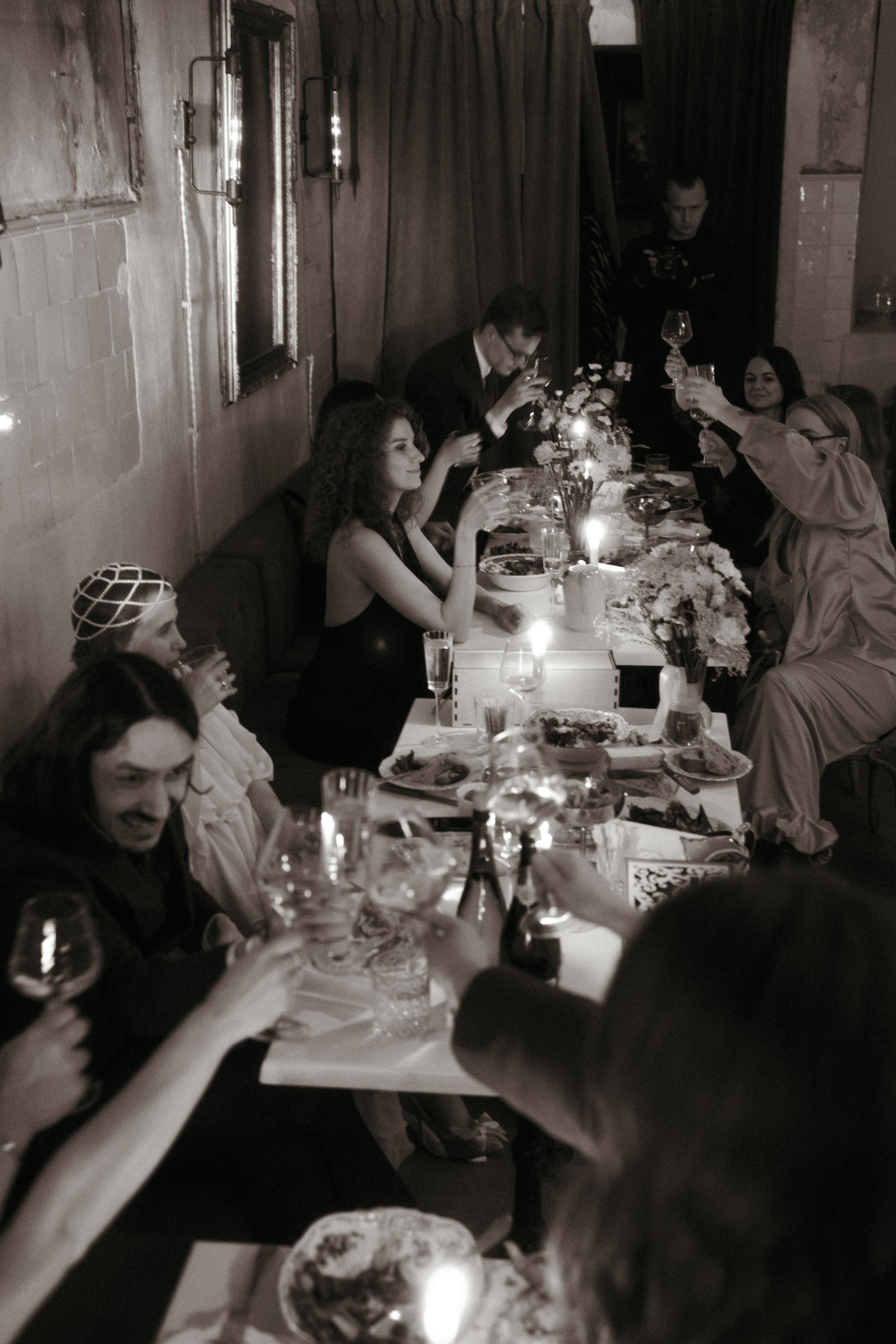 Так родилась идея главной фишки свадьбы — праздник на двух площадках в один день! После ЗАГСа прошёл тёплый, романтичный ужин с родственниками и близкими в ресторане. А затем — вечеринка в лофте с диджеем и коктейль-баром только для друзей.