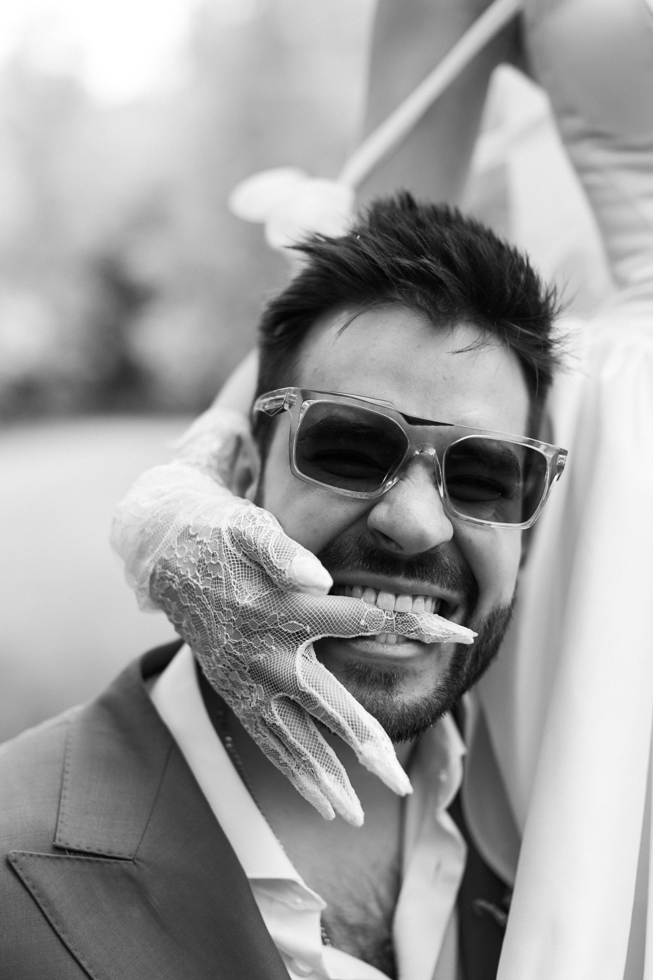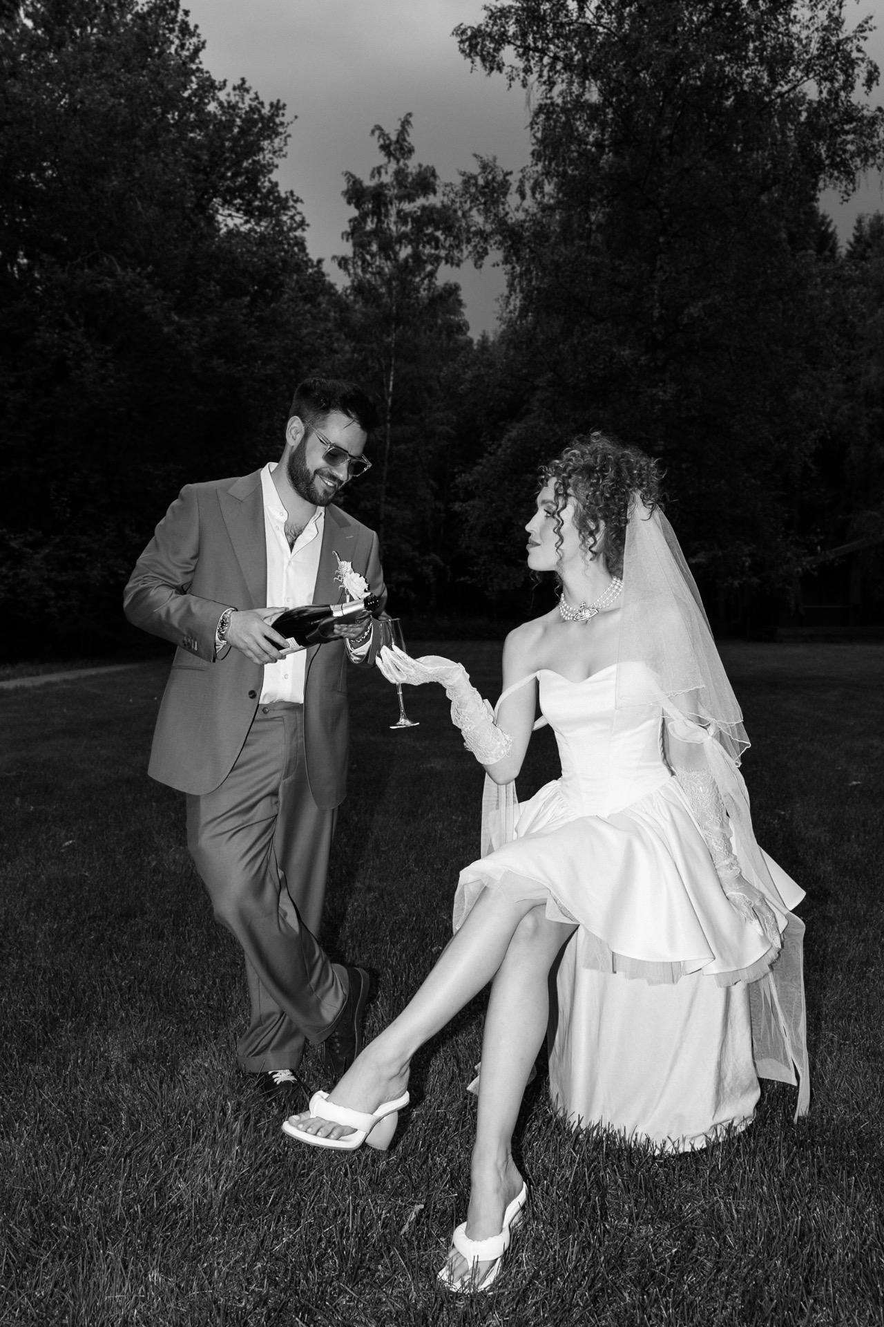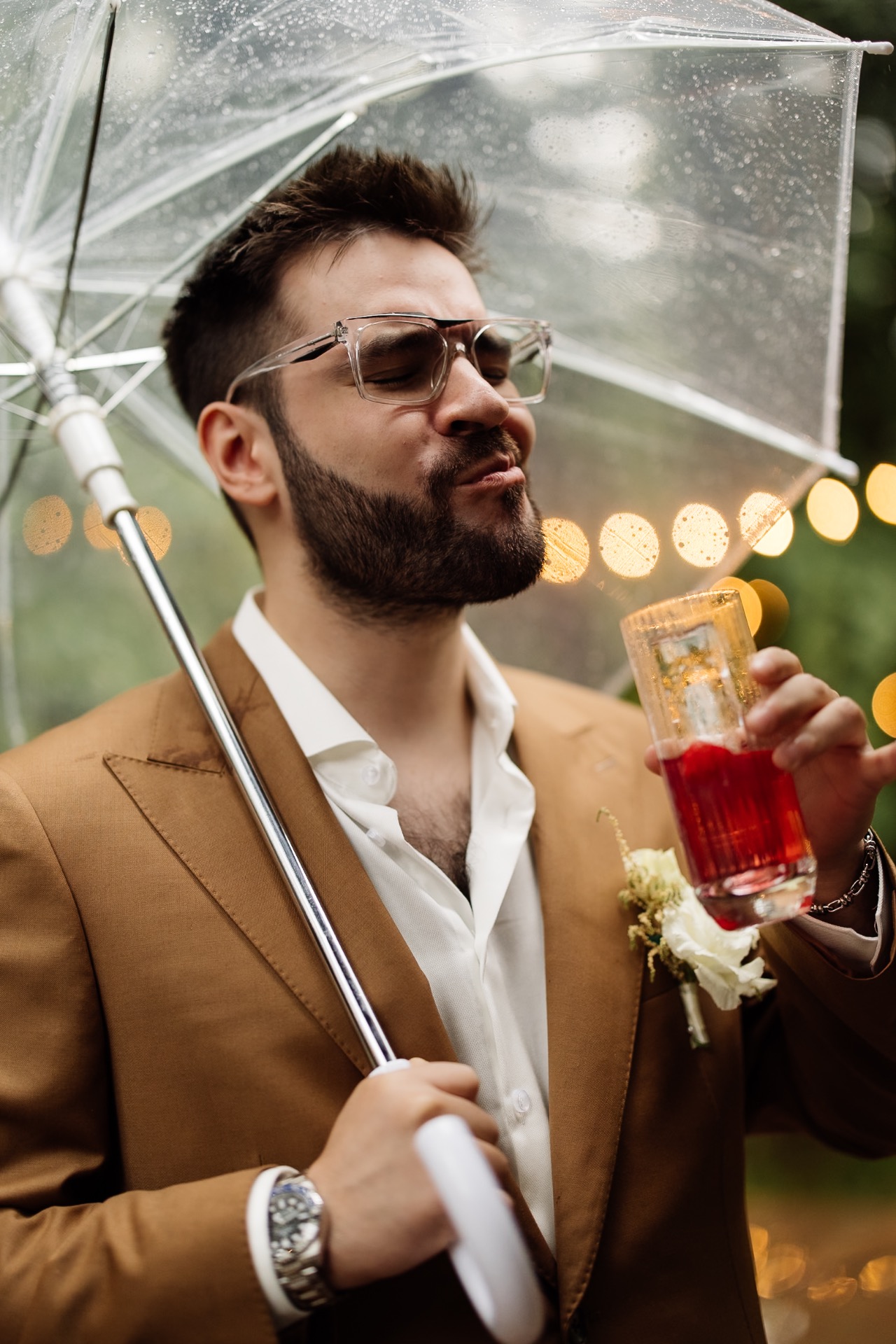 Мы подождали, но дождь не прекращался. Наш пёс, который должен был вынести кольца, успел промокнуть и испачкаться. Мы решили начинать и не дожидаться лучшего момента. Это было по-своему мило и весело. Моя причёска за пять минут превратилась в гнездо, но мне было не до неё. А в момент нашего с Владом поцелуя дождь внезапно закончился.