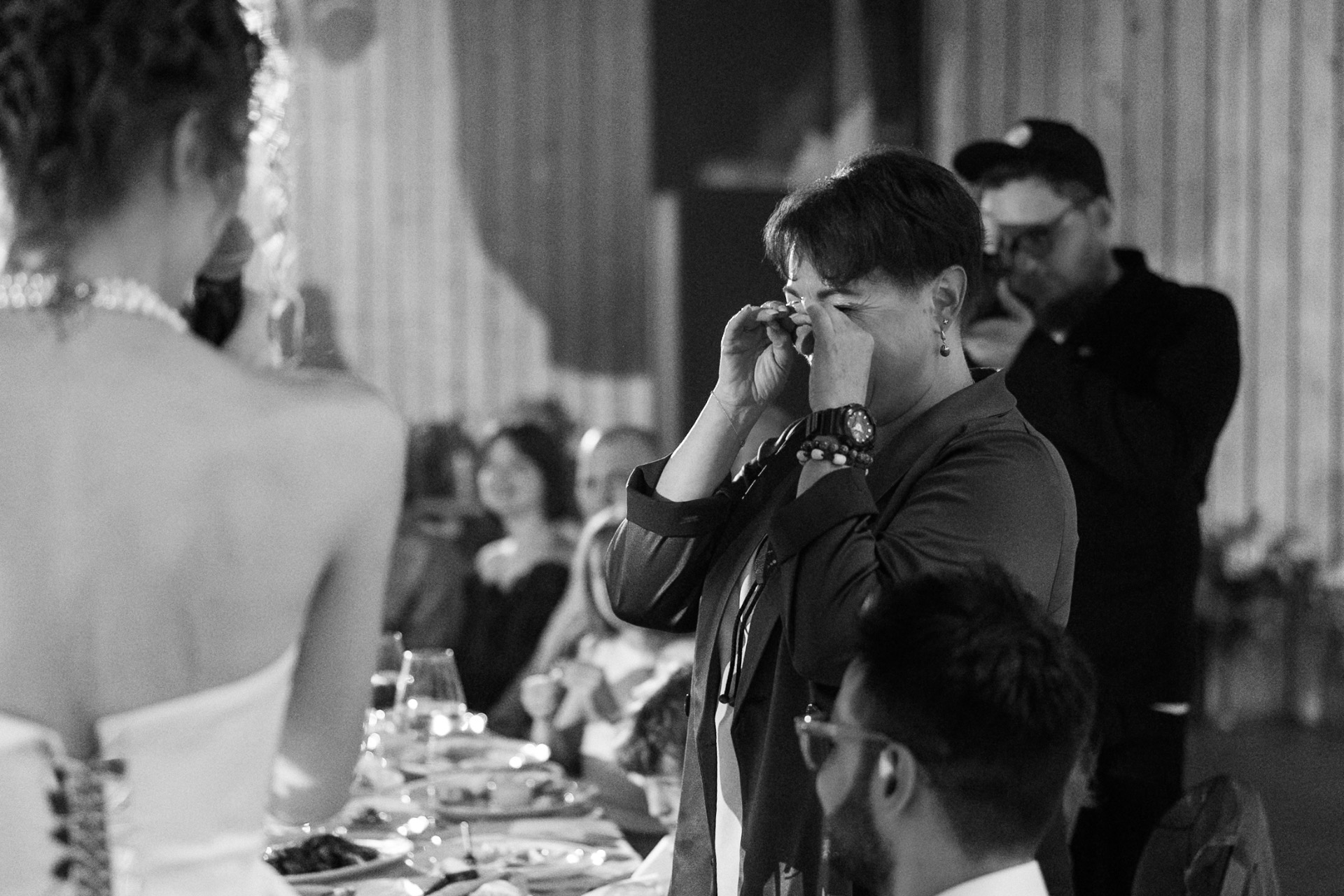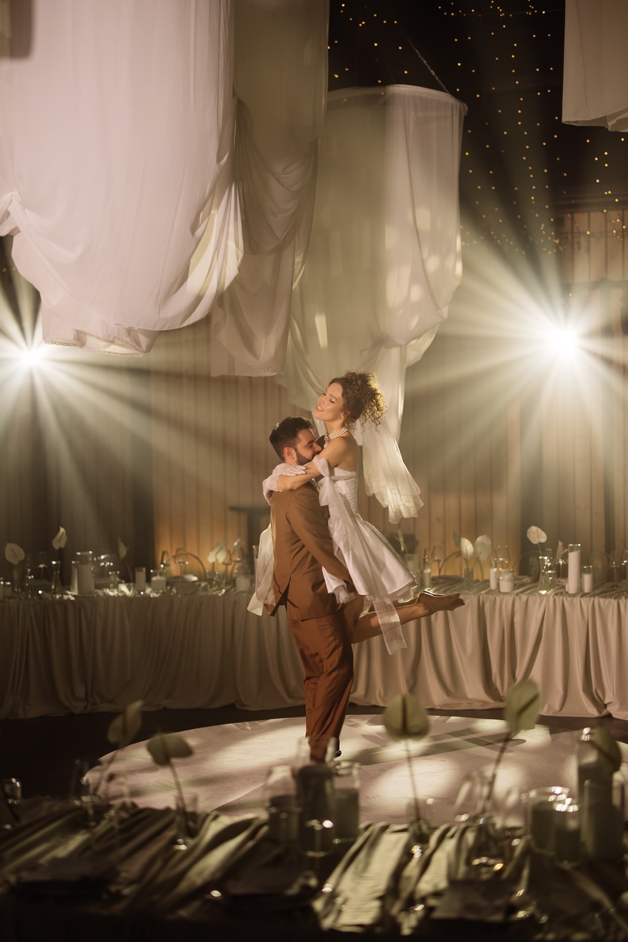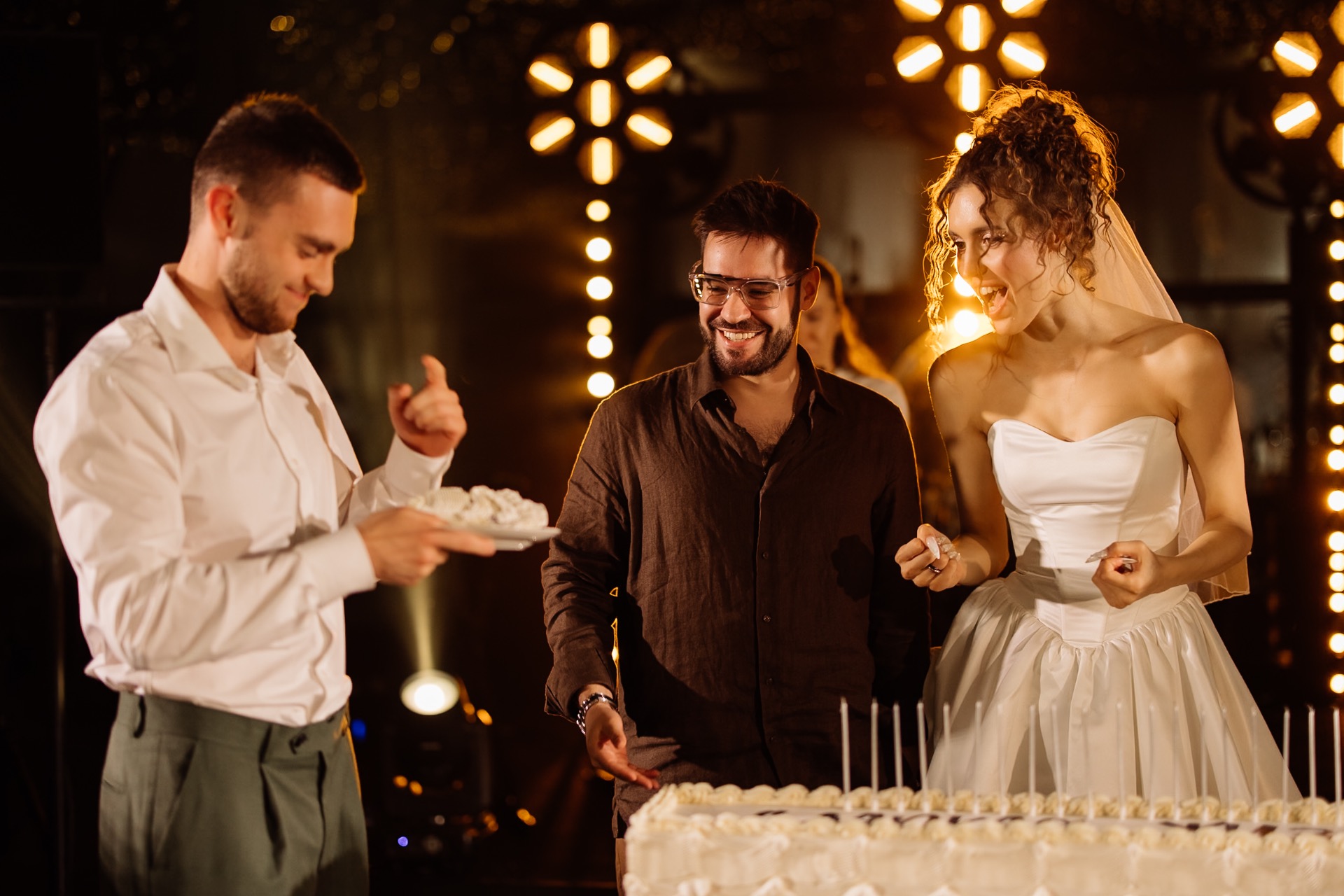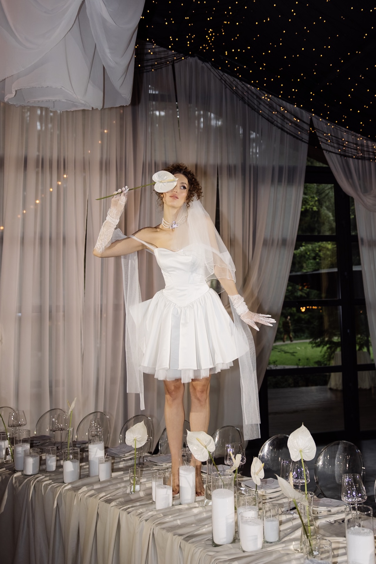 В зале были тосты, много тёплых слов. Из развлечений: свадебное бинго для знакомства гостей, музыкальная викторина «Мальчики против девочек» (нужно было угадать песню по мелодии). Я бросала подругам букет, а парни мерились силой на специальном аппарате, самый сильный из всех получил приз.
