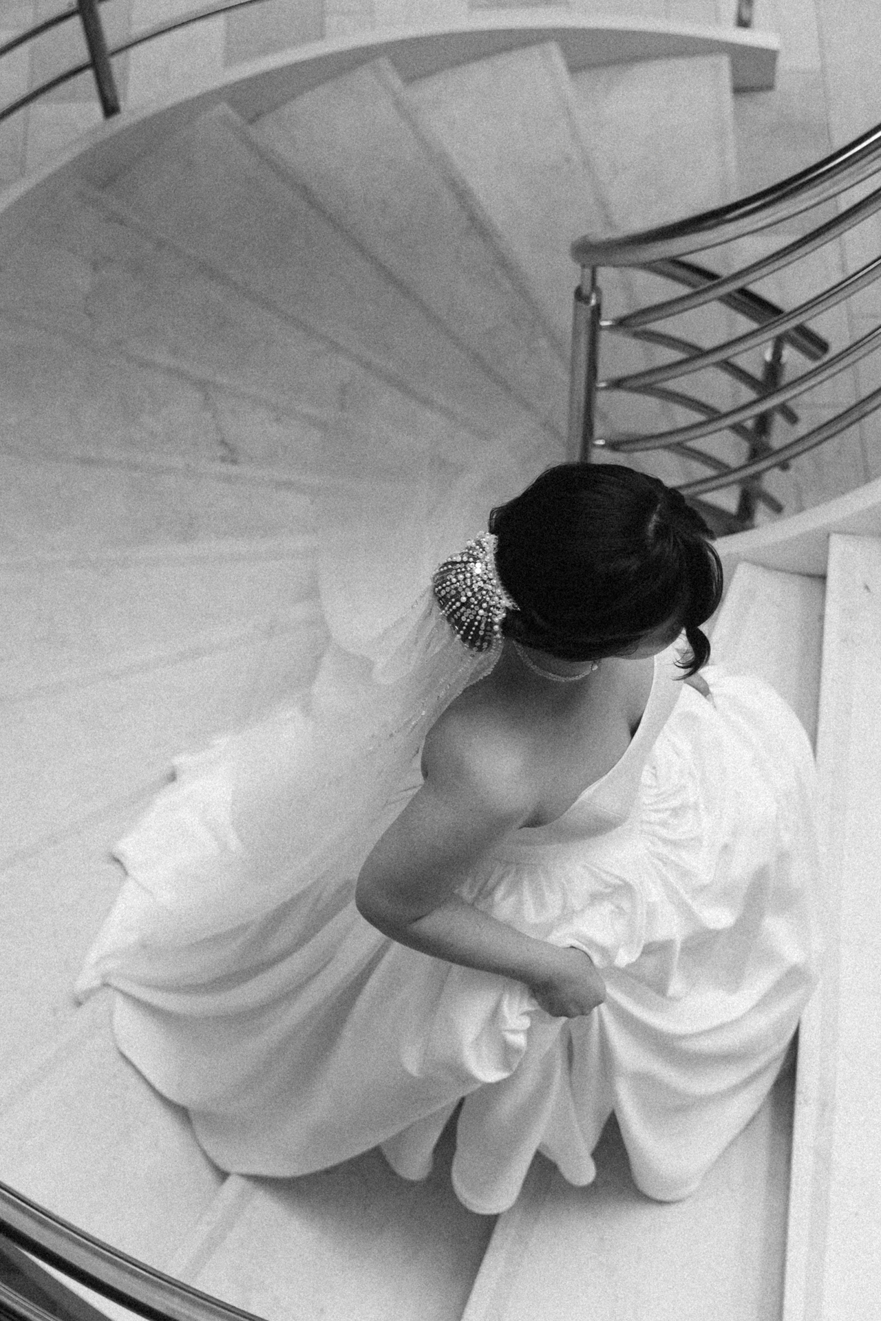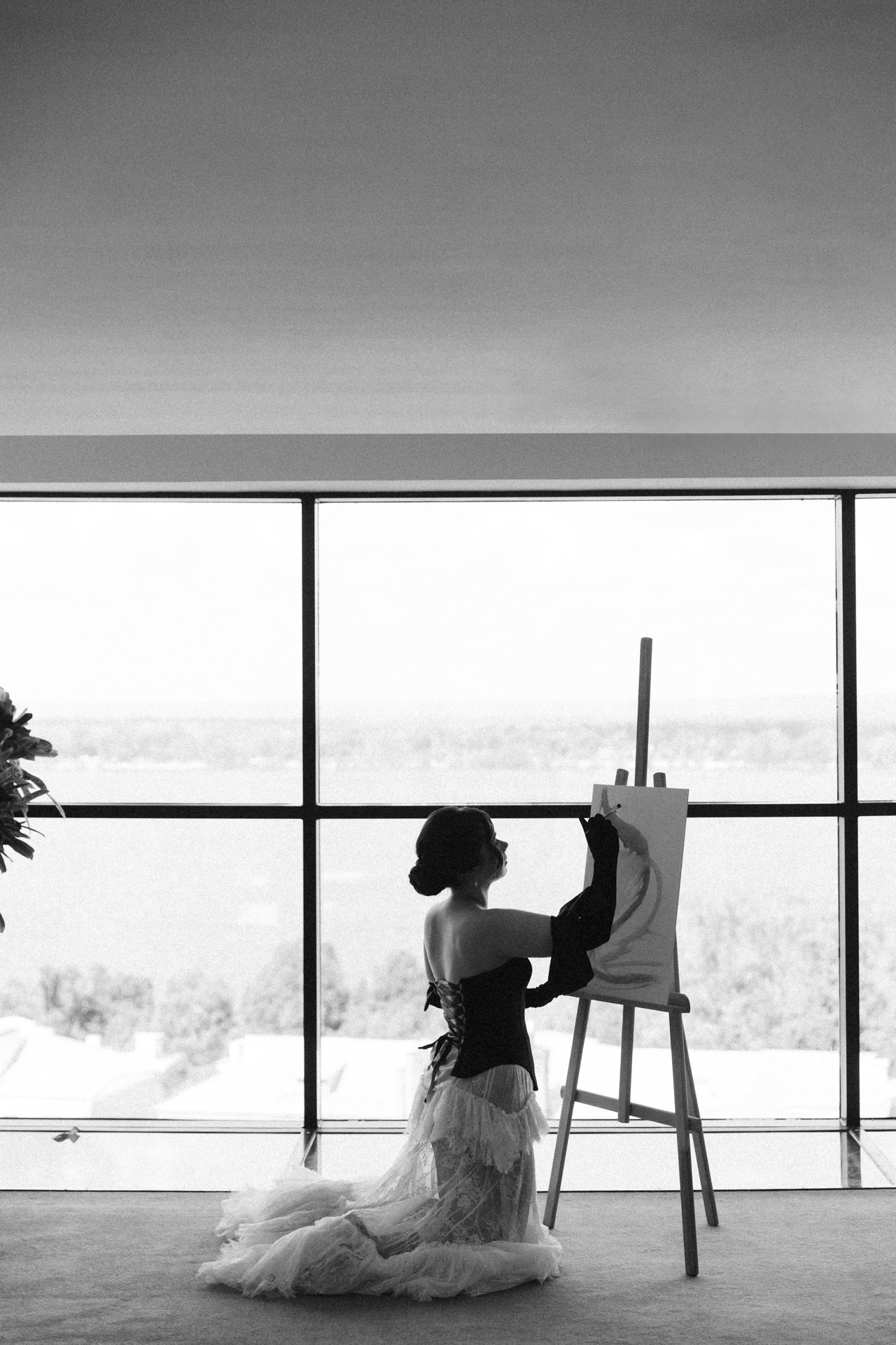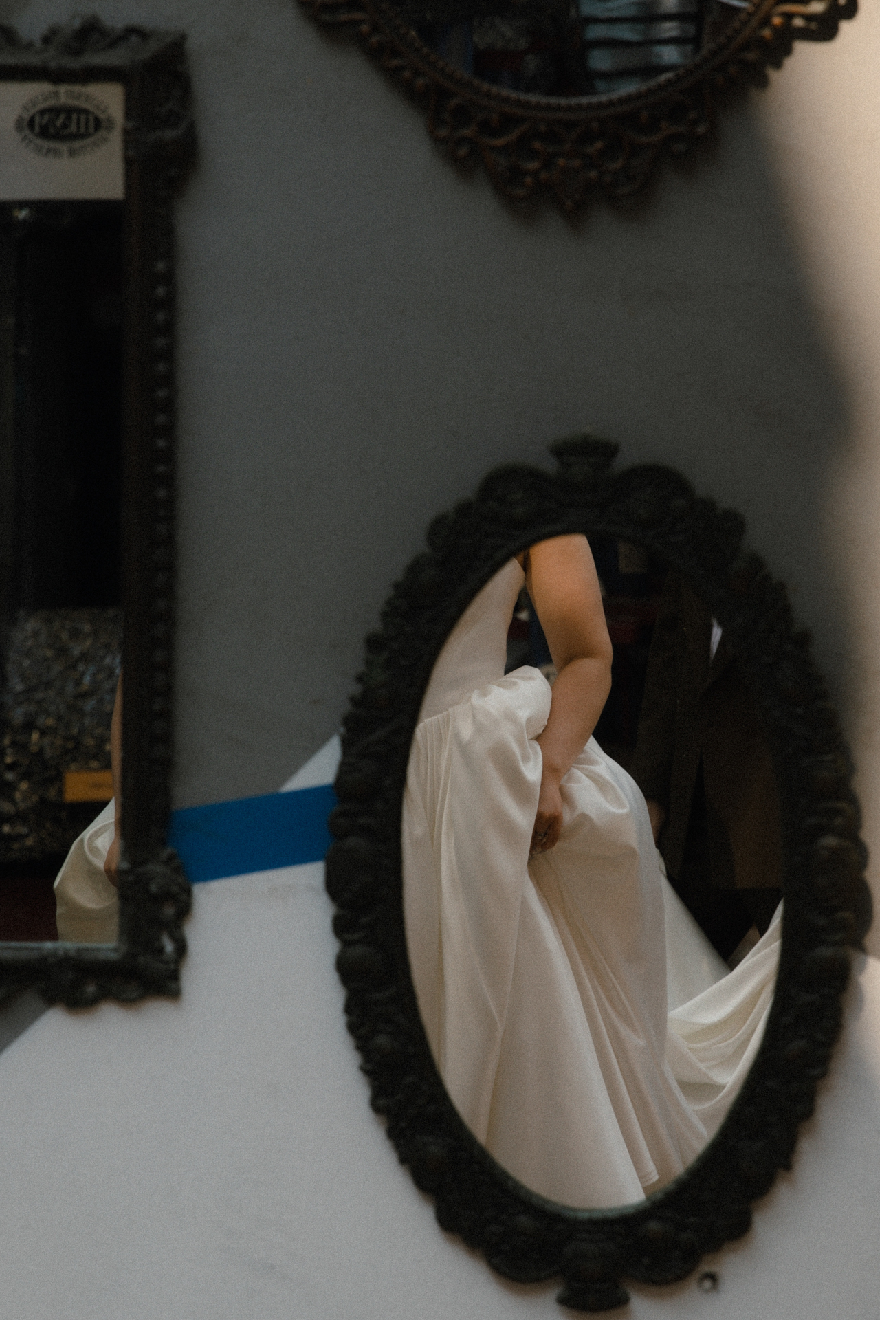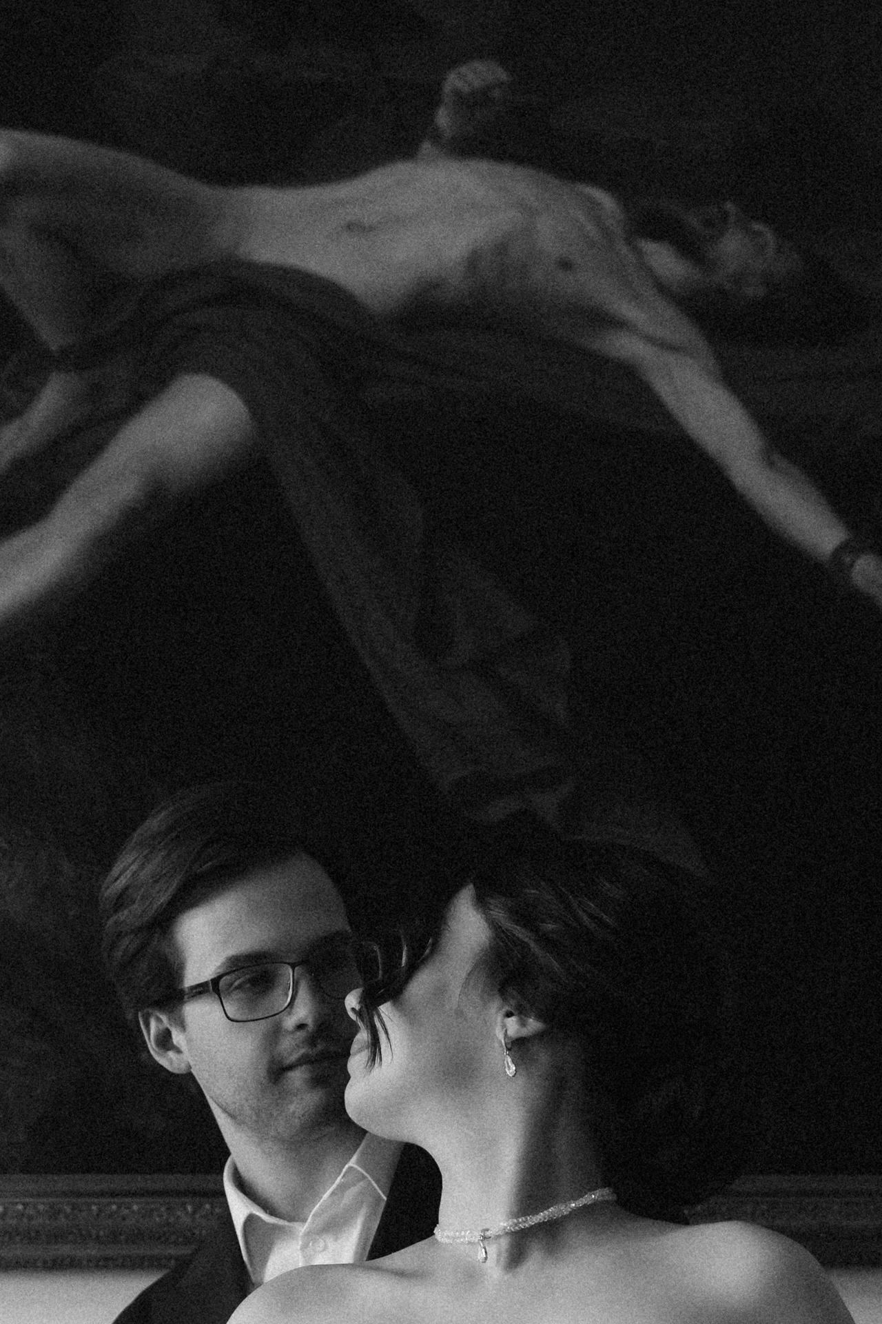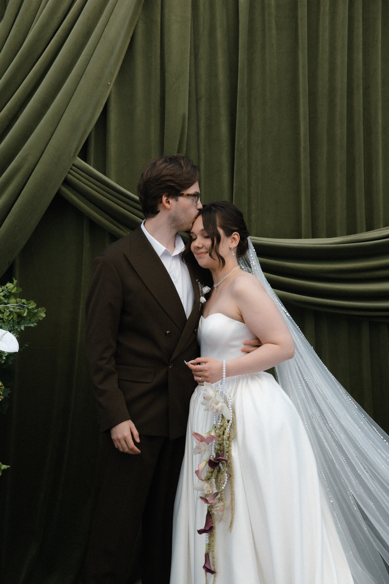 Мы решили объединить это всё воедино, и родилась идея разделить свадьбу на две части. Первая — элегантная и классическая, вторая — неформальная и тусовочная. Это разделение мы подчеркнули и в нашей фотосессии. Первая локация — это художественный музей, вторая — азиатский бар с неоновыми огнями.
