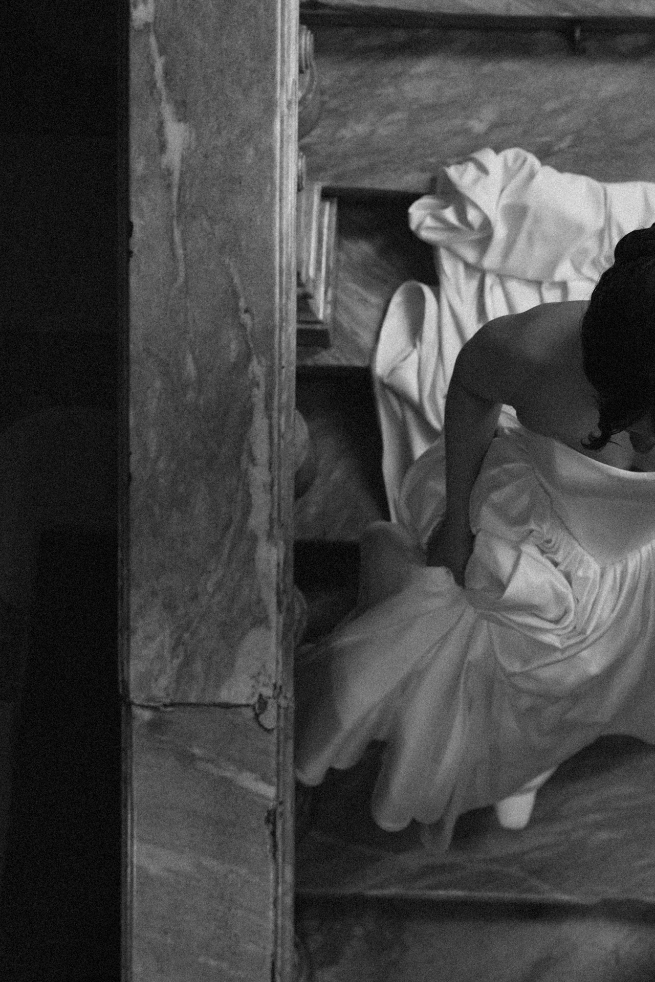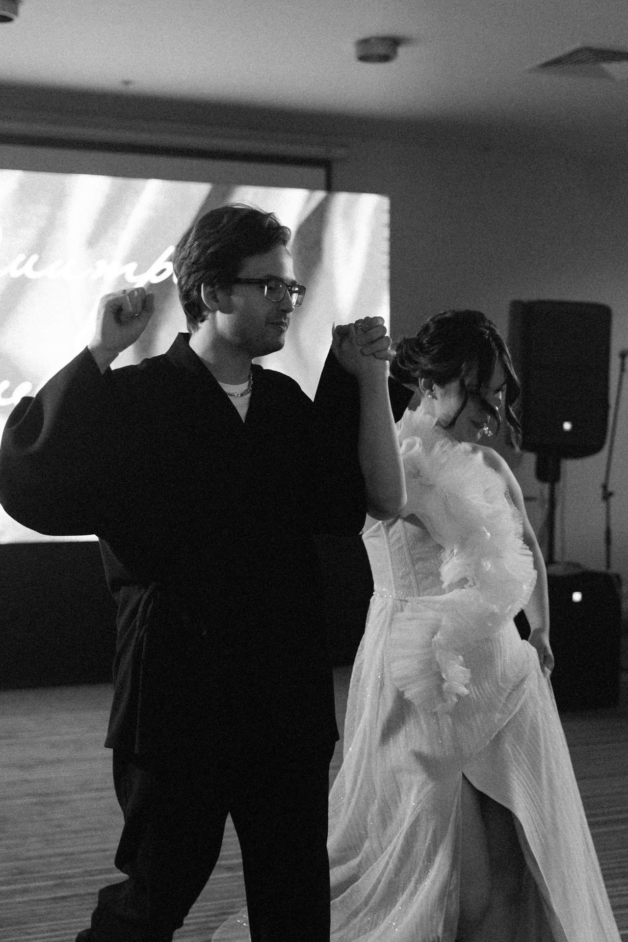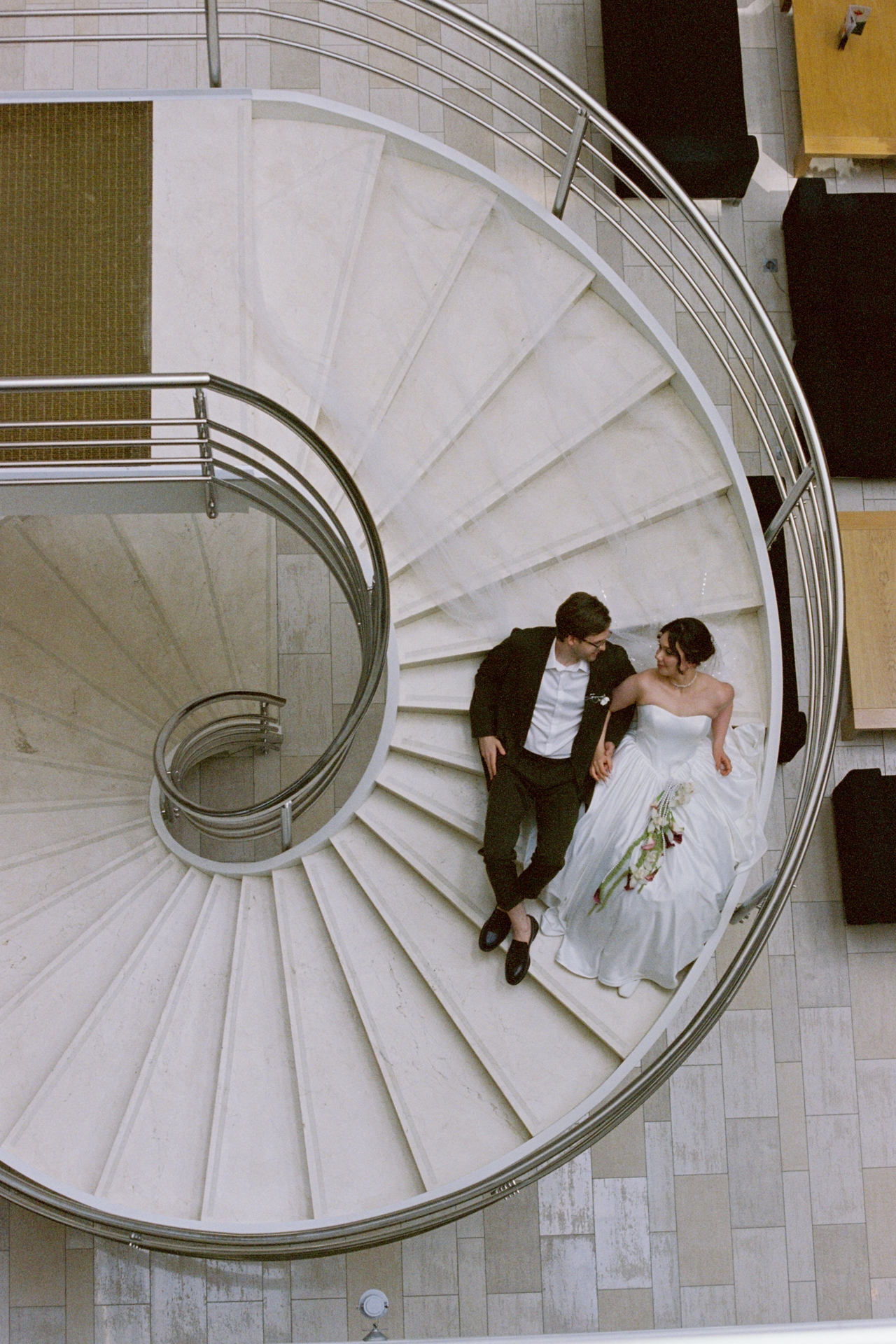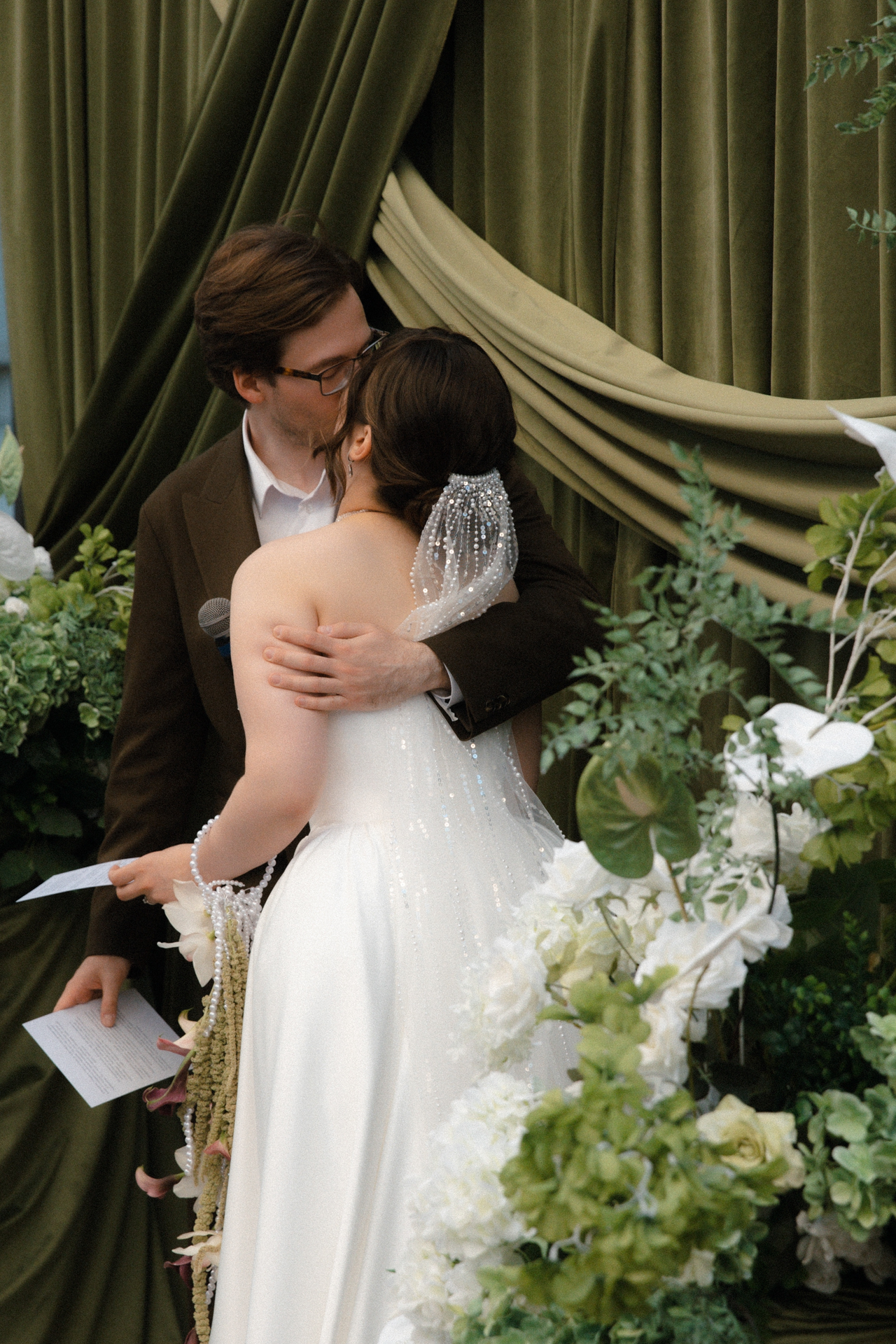 Мы решили объединить это всё воедино, и родилась идея разделить свадьбу на две части. Первая — элегантная и классическая, вторая — неформальная и тусовочная. Это разделение мы подчеркнули и в нашей фотосессии. Первая локация — это художественный музей, вторая — азиатский бар с неоновыми огнями.