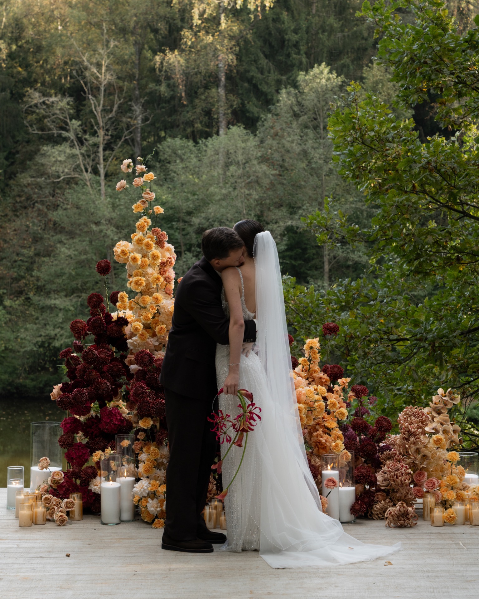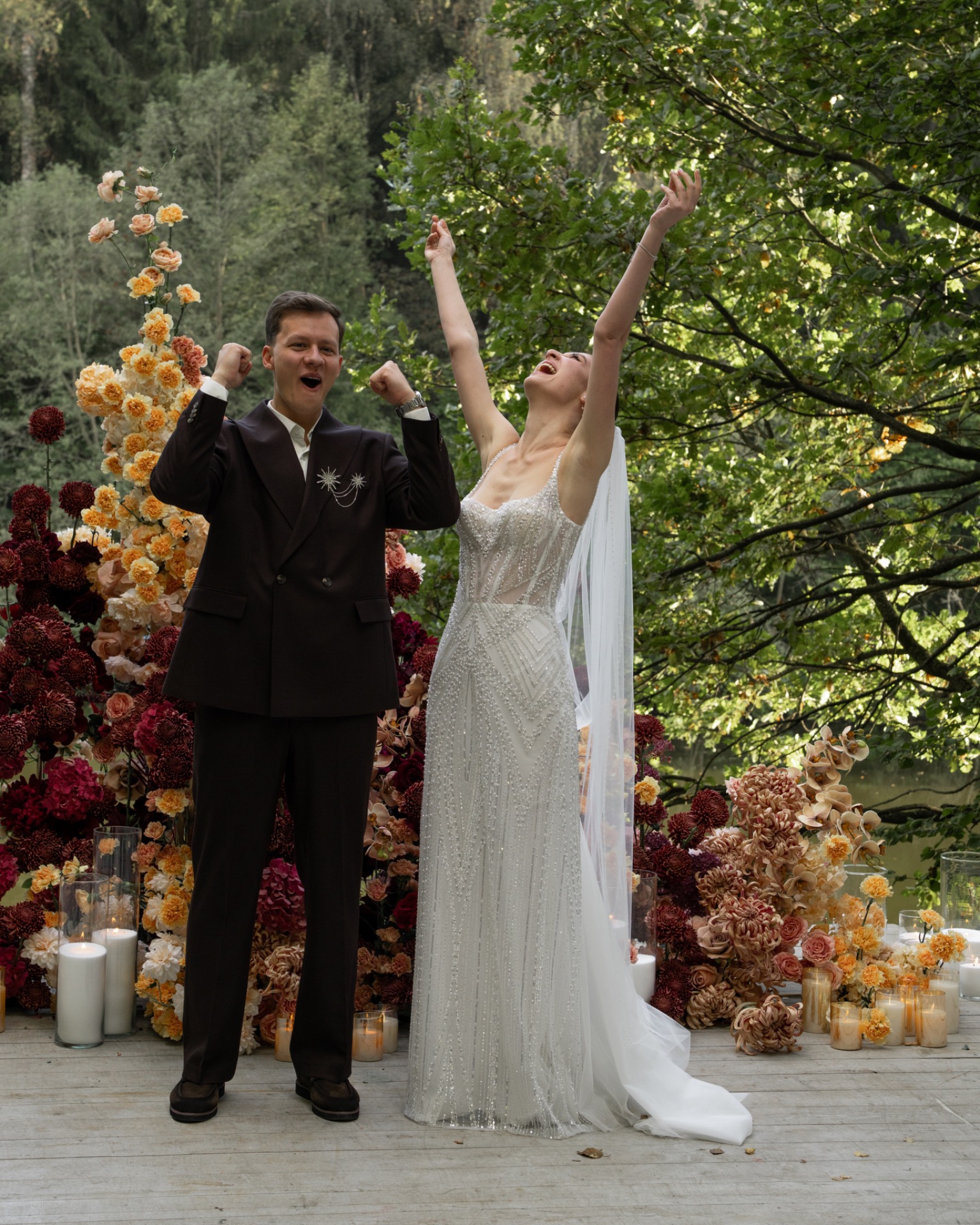 Мы с Андреем хотели организовать свадебное торжество в осенней тематике с яркими акцентами, опавшими рыжими листьями, приглушёнными тонами и глубиной, присущей этому времени года. Исходя из этой концепции, организатор предложила нам лучших подрядчиков, с которыми мы медленно и вдумчиво подбирали каждую деталь для воплощения нашей идеи.
