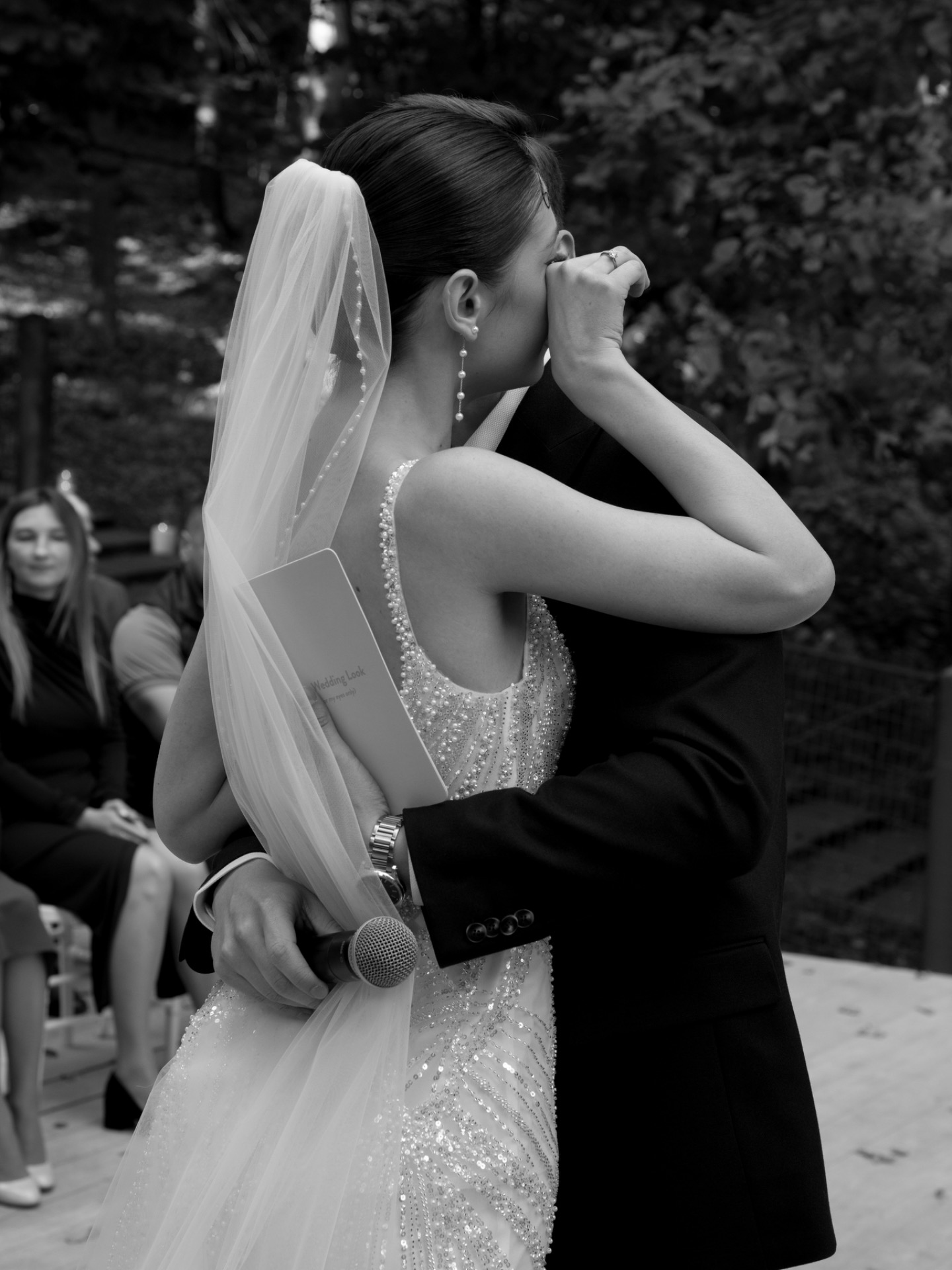 Наш ведущий, Никита Жуков, смог идеально выдержать баланс трогательности и веселья, помогая нам чувствовать каждый момент и находиться здесь и сейчас. Благодаря этому мы и наши гости успевали насладиться свадьбой, друг другом и активностями.