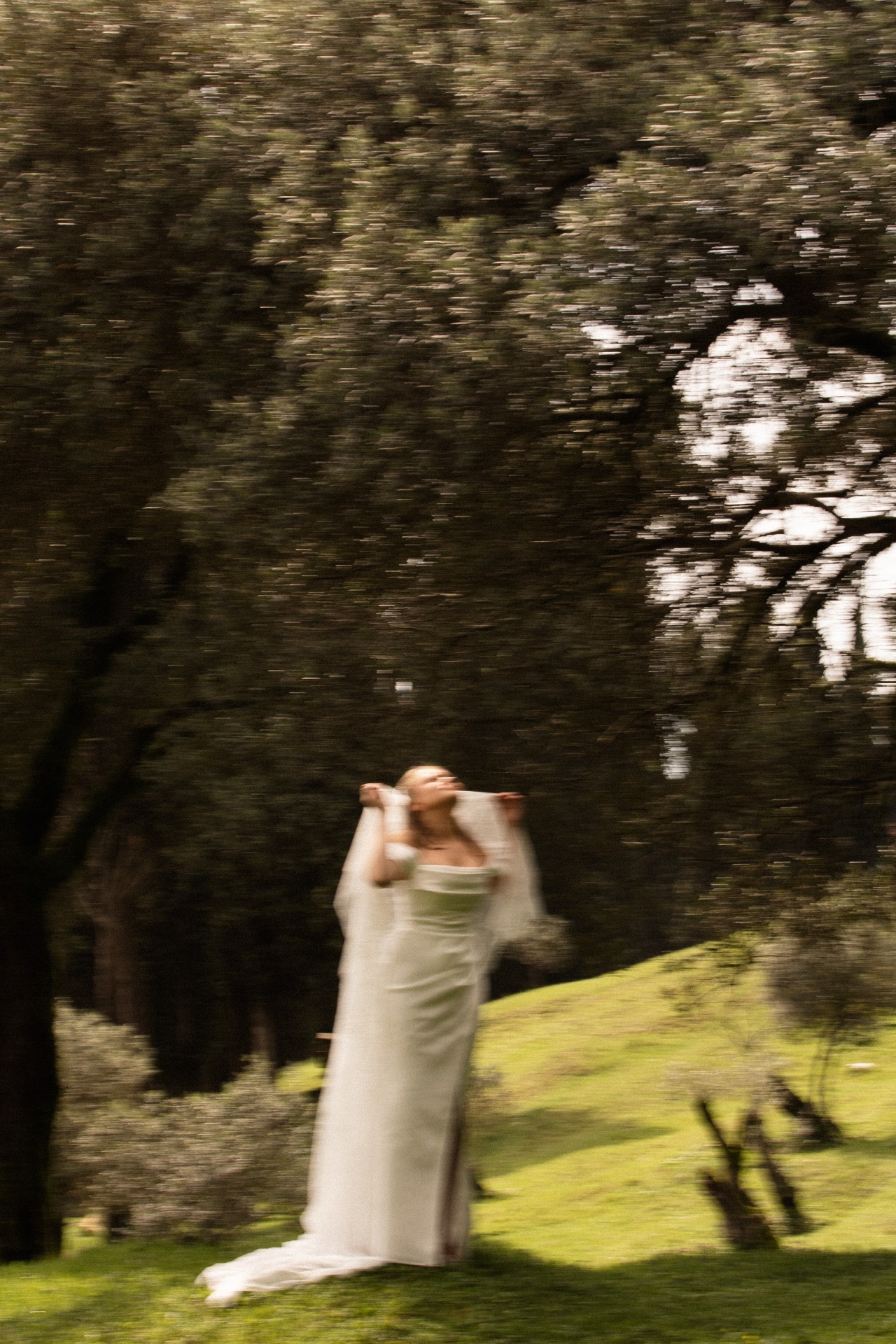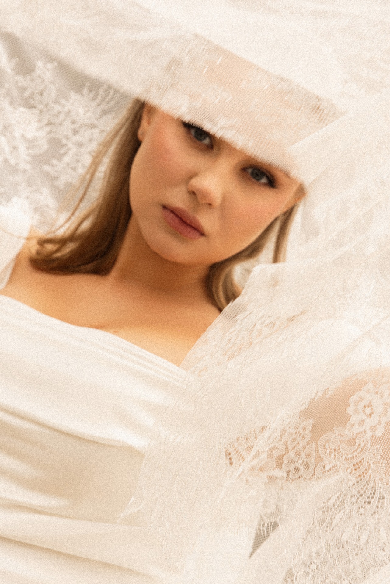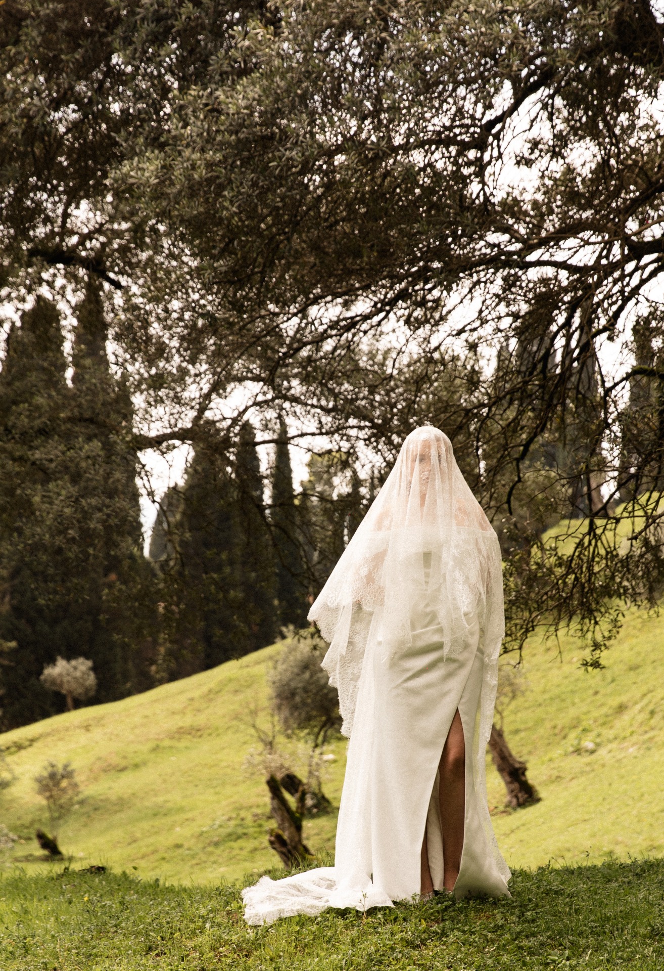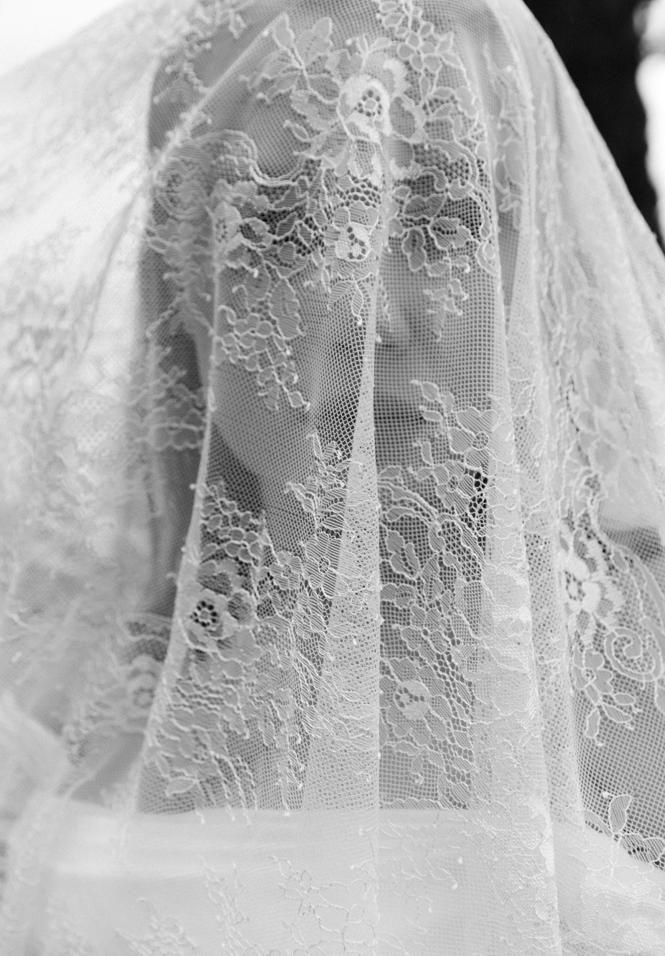 Я хотела платье в пол, которое подчеркнуло бы мою талию, но не смотрелось бы громоздко на нашей свадьбе у моря. В итоге я остановила свой выбор на элегантном платье с открытыми плечами, а мой образ идеально дополнила кружевная фата.