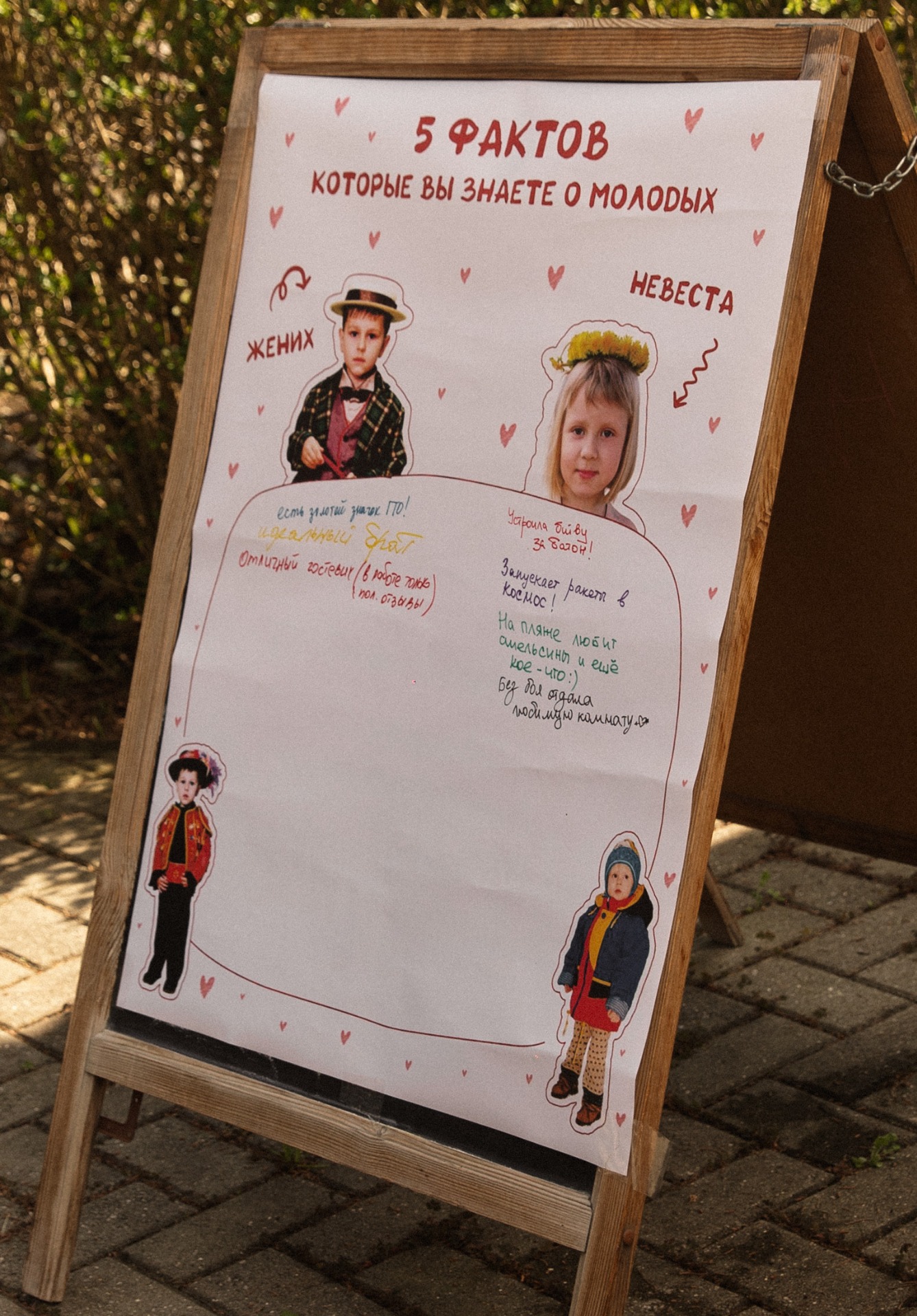Нашей фишкой стали карточки рассадки, которые были сделаны в стиле карт Таро с персональным предсказанием для каждого гостя. А вместо торта мы решили заказать пироги с мороженым, и все гости остались в восторге от нашего десерта.