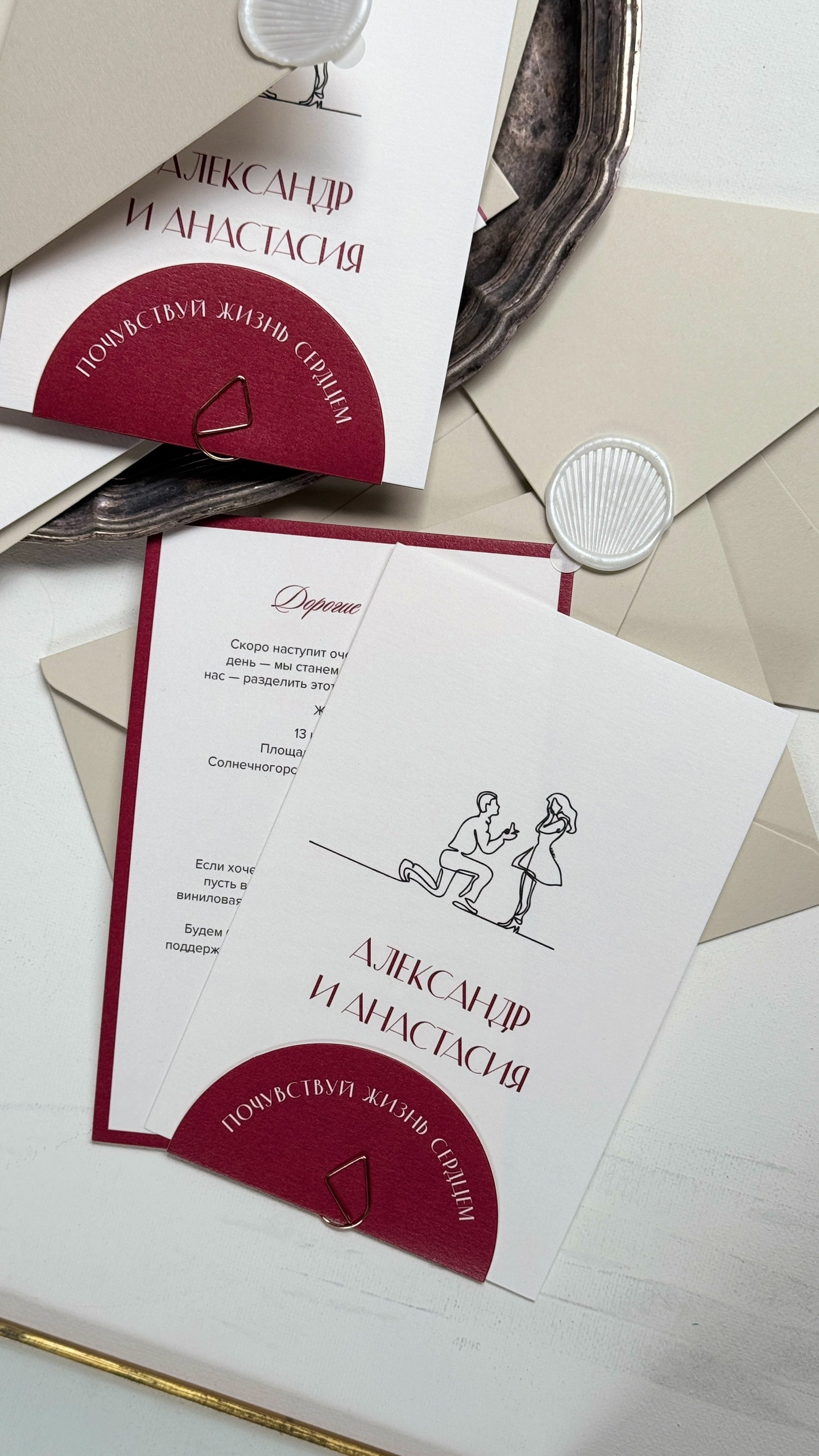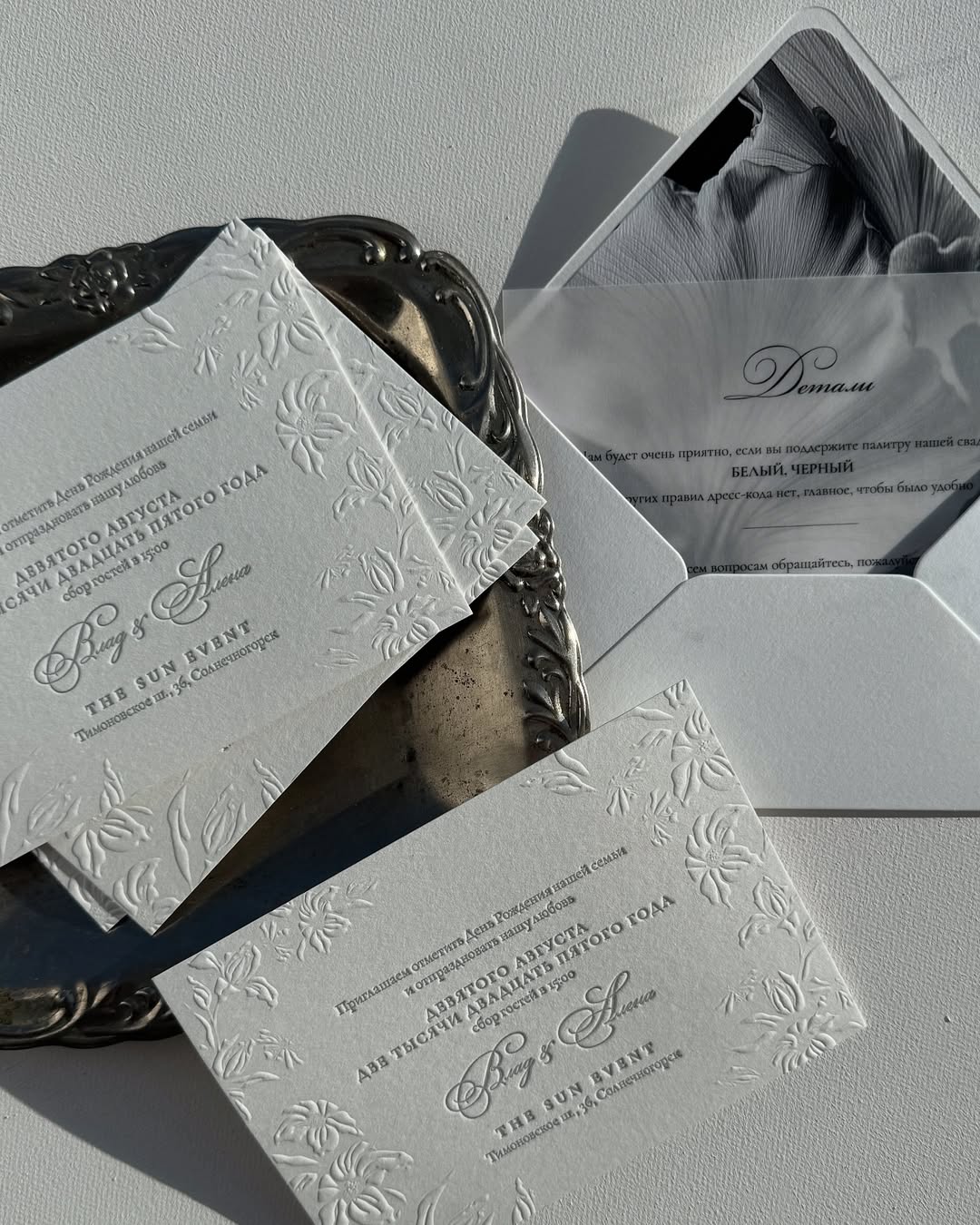 Свадебное приглашение — это первый взгляд гостей на вашу историю любви. Ваша свадьба начнётся для них не с приветственного фуршета, а с того момента, как они откроют конверт с приглашением.