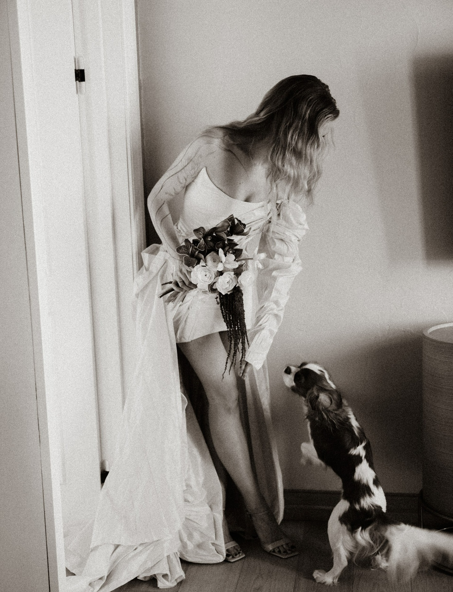 Образ я дополнила асимметричными винтажными серёжками, а также добавила любимый мокрый эффект на волосы перед выходом на церемонию.