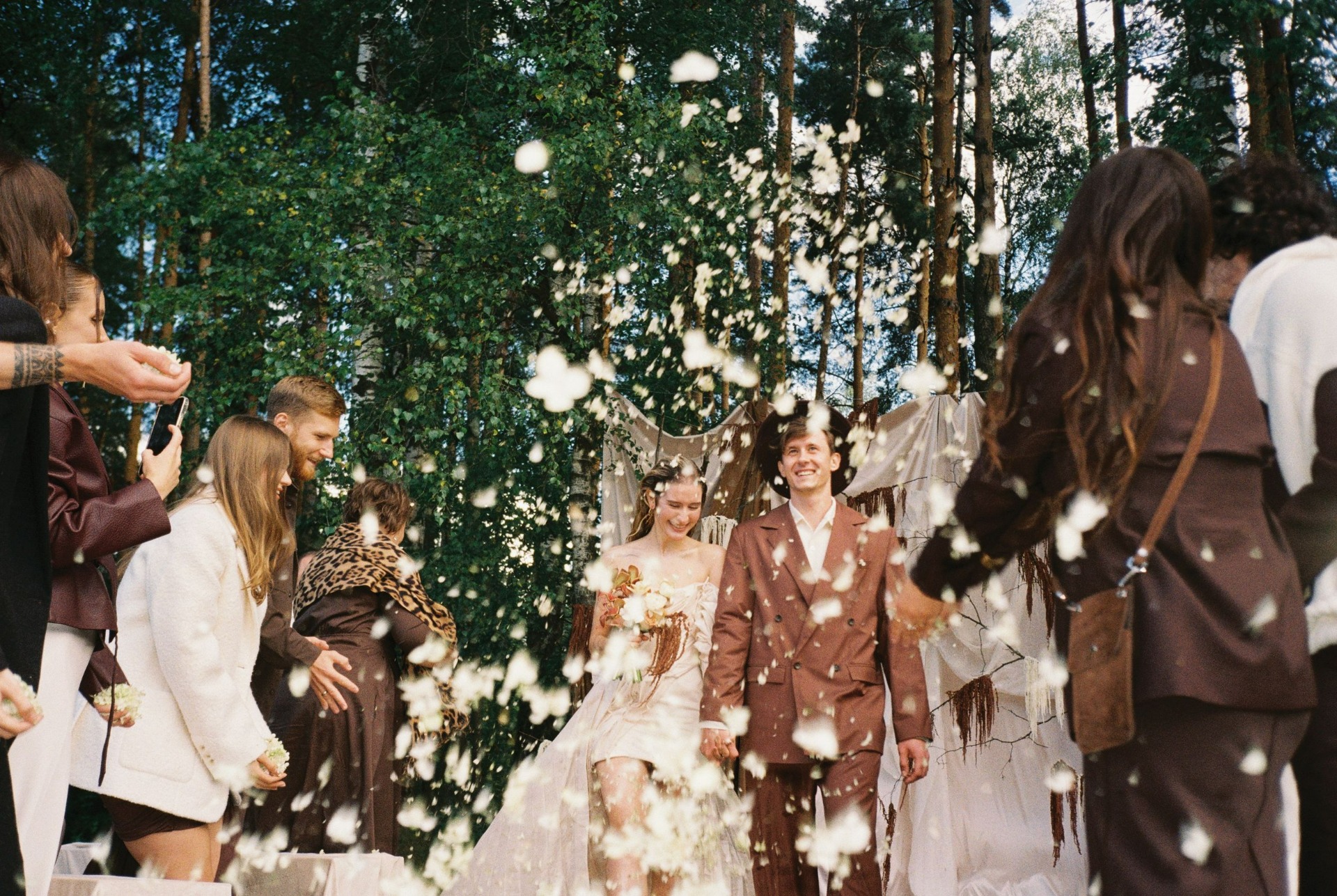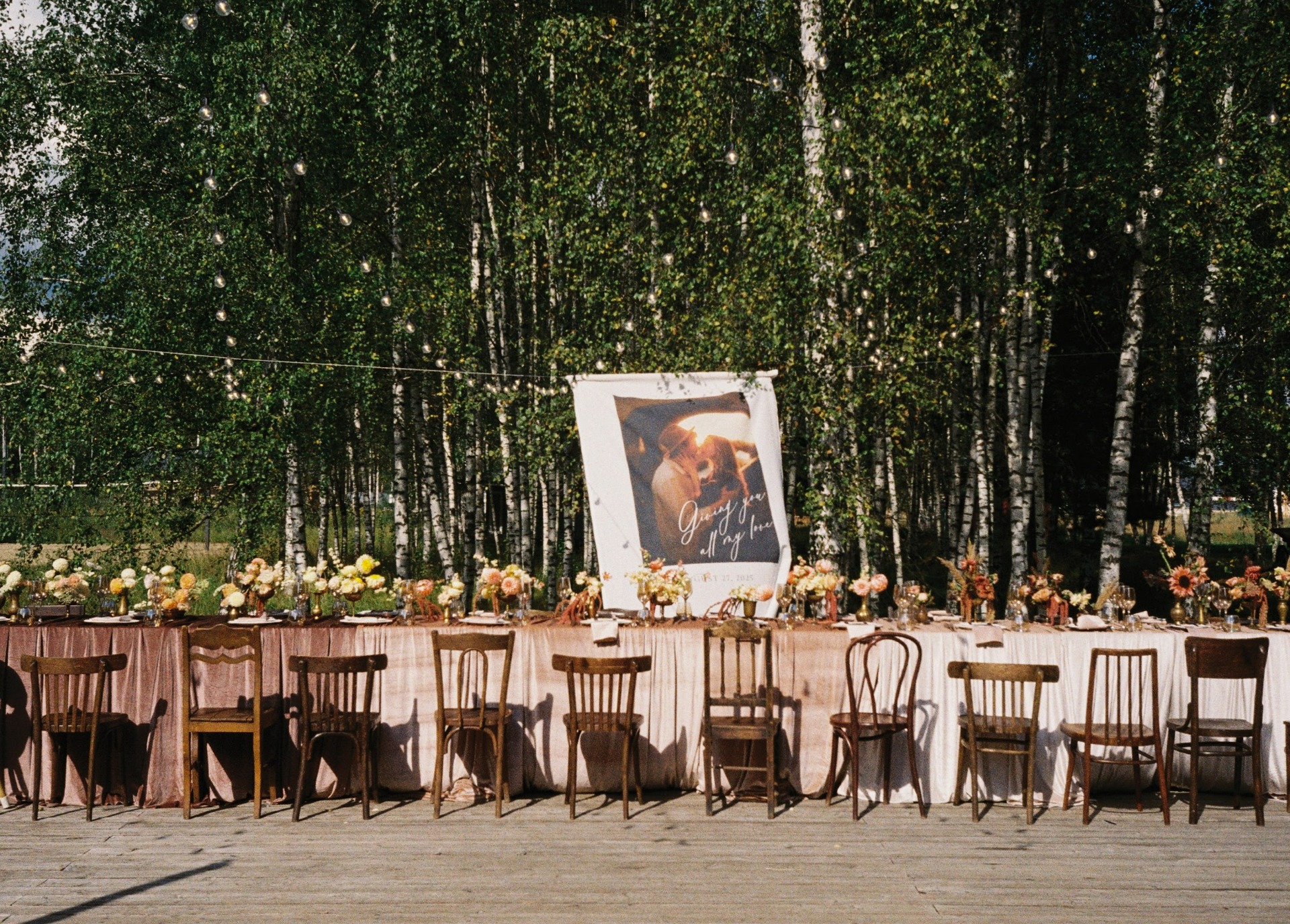 Мы хотели свадьбу на открытом воздухе без помпезности и вычурности. Только мы, наши самые близкие, объятия и танцы.