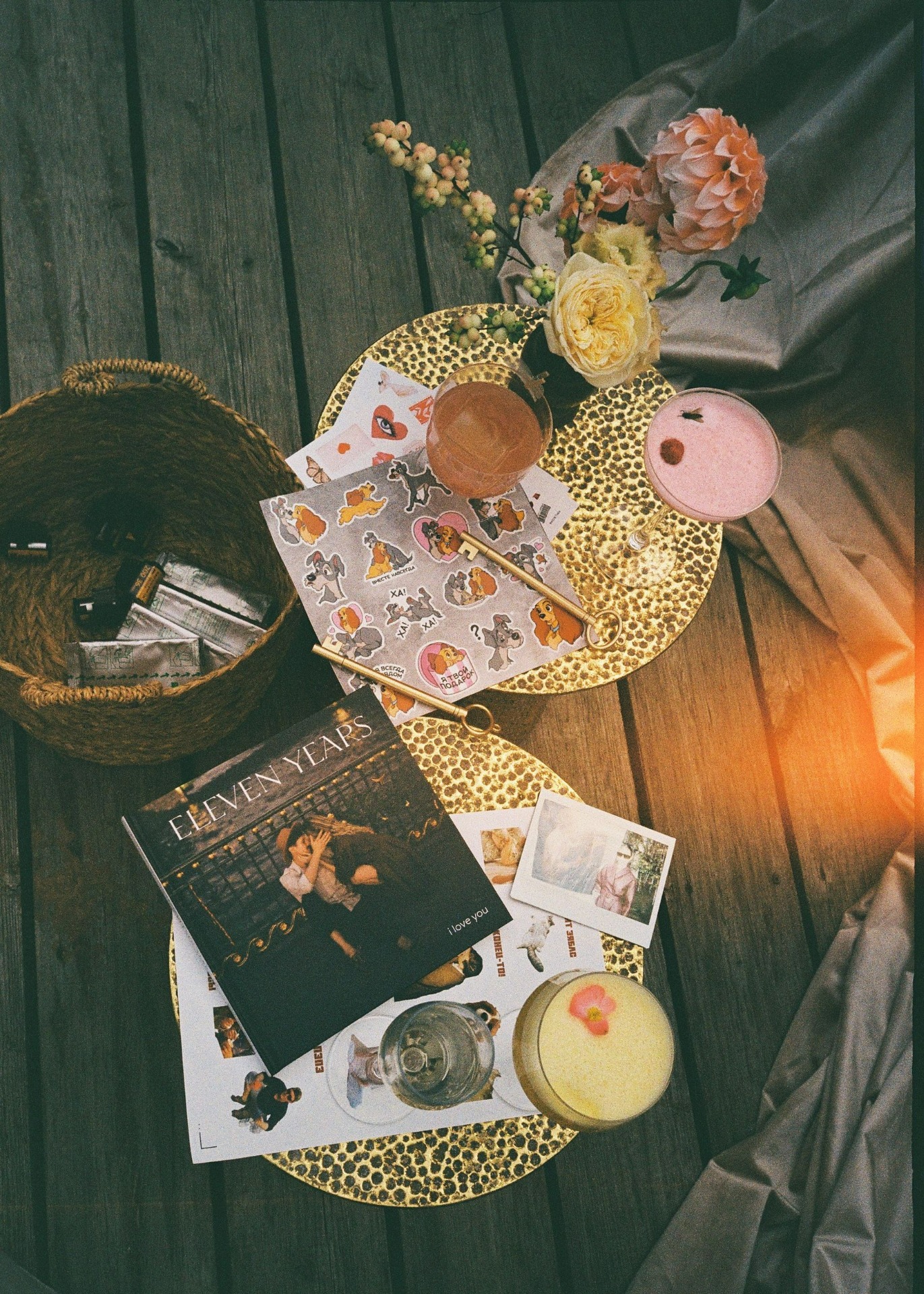 На велкоме мы присутствовали вместе: мне всегда было грустно наблюдать за невестами, которые пропускали эту кайфовую часть дня. Для книги пожеланий мы подготовили наклейки с нашими фотографиями и фразами. Также я захватила свои плёночные мыльницы — на них снимали и гости, и я сама.