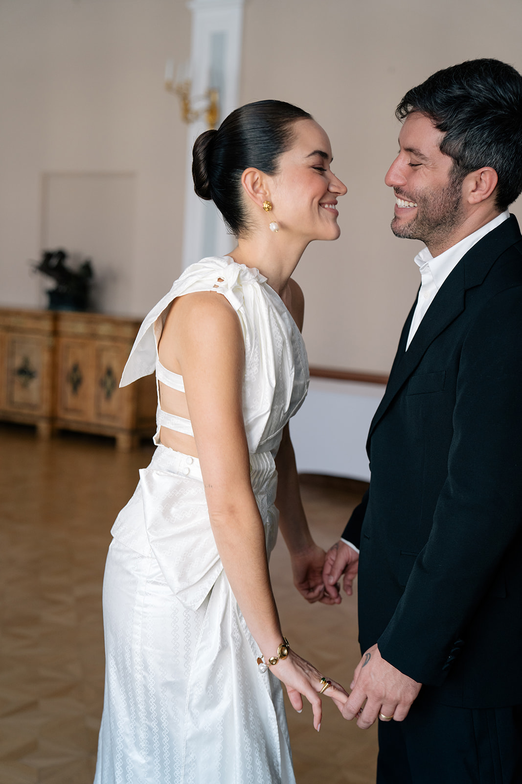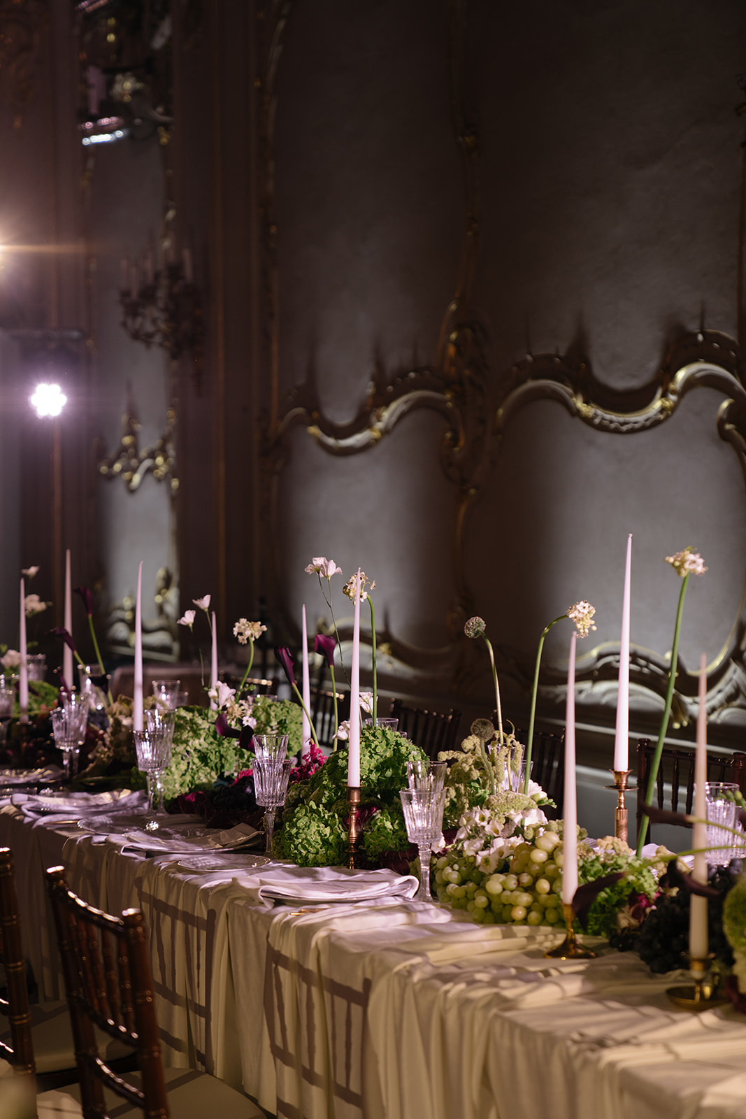 Леа и Дан максимально хотели отразить Петербург и его эстетику. Поэтому, с самого начала мы рассматривали только старинные особняки и дворцы. Также были очень важны детали и качество подаваемых блюд. Молодожёнам сразу понравился, сохранившийся до наших дней, белый танцевальный зал во дворце 19 века, переживший Революцию и военные время. Единственный минус исторической локации: отсутствие кондиционеров, но мы были к этому готовы, и в день свадьбы компенсировали это установкой вентиляторов по всему залу.