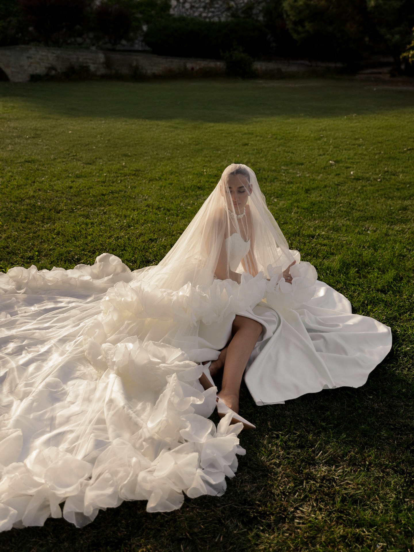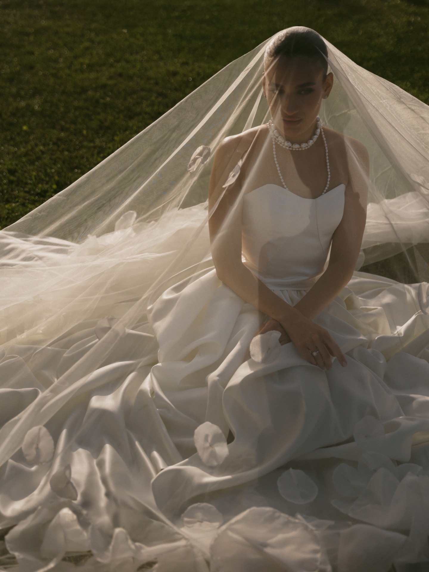 Я решила пойти примерить фату и посмотреть на работы дизайнера, который её создал. Когда я пришла, оказалось, что она шьет на заказ и мы можем создать платье именно под меня. У неё был макет в разработке, который мне понравился. Она дала мне внести правки. И по итогу получился образ мечты.