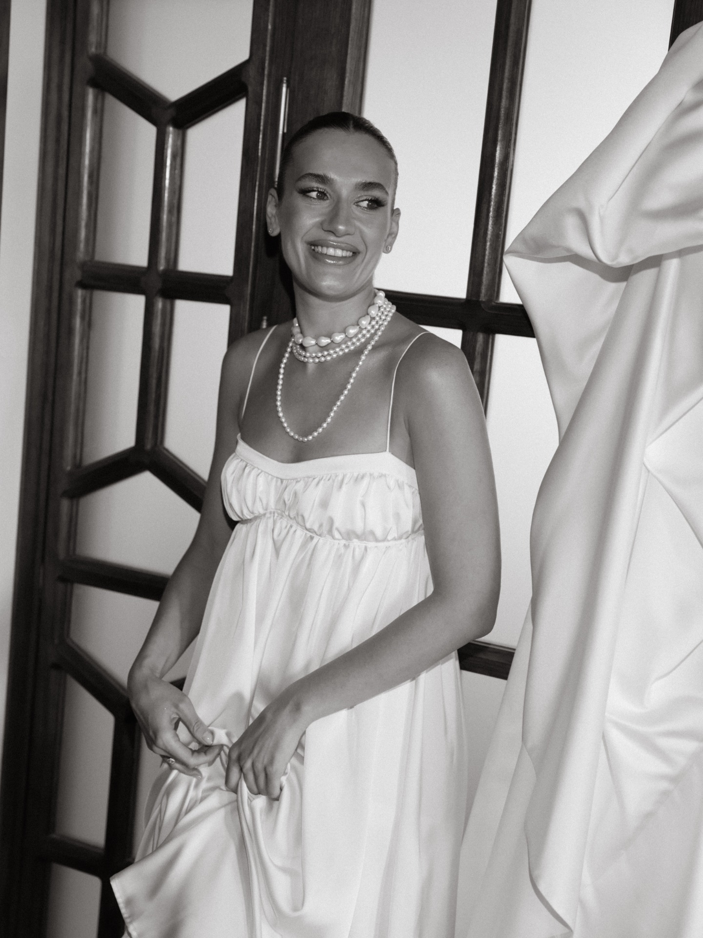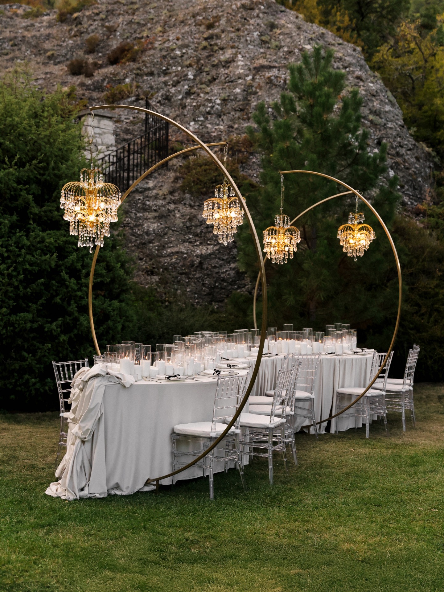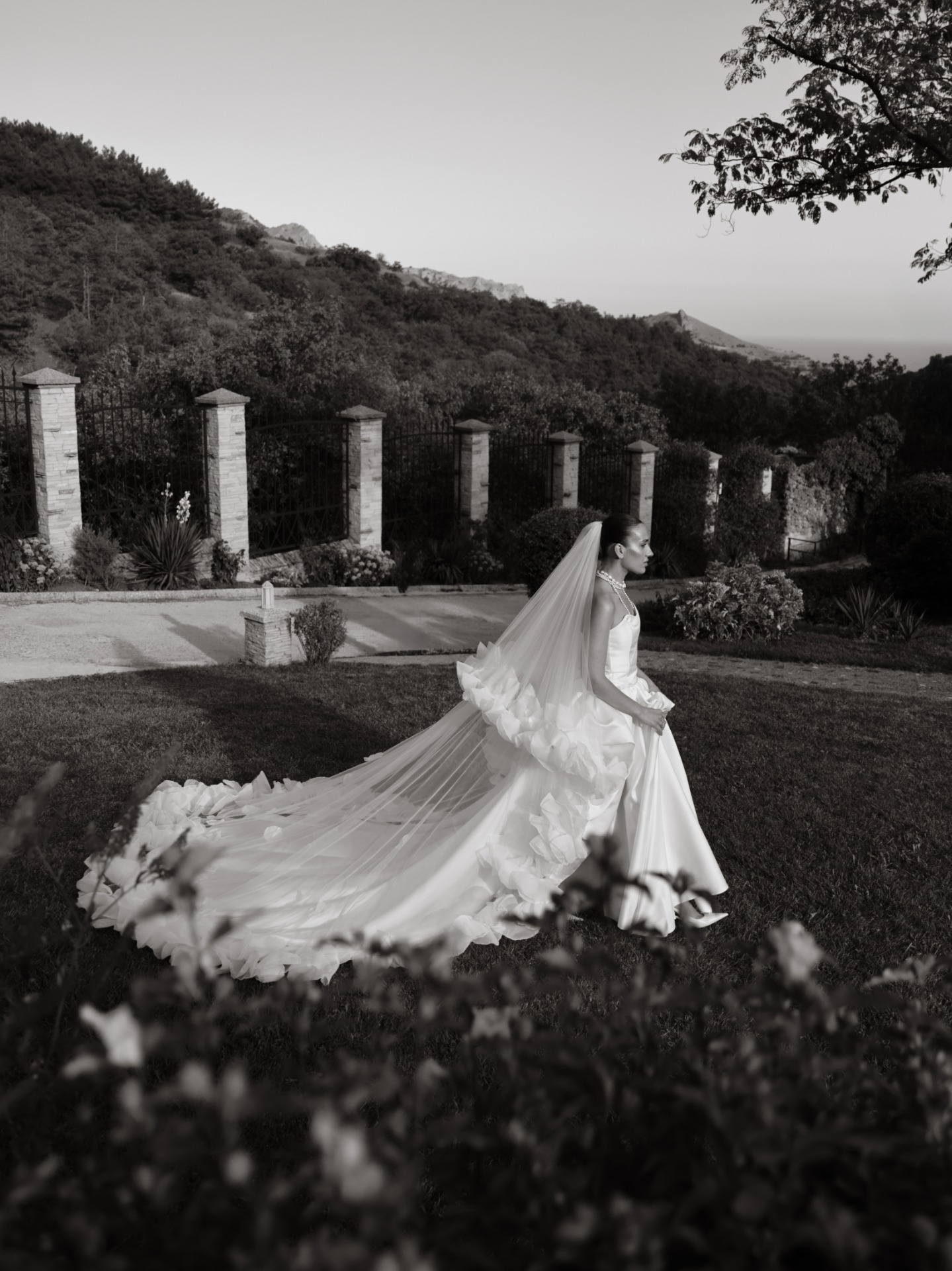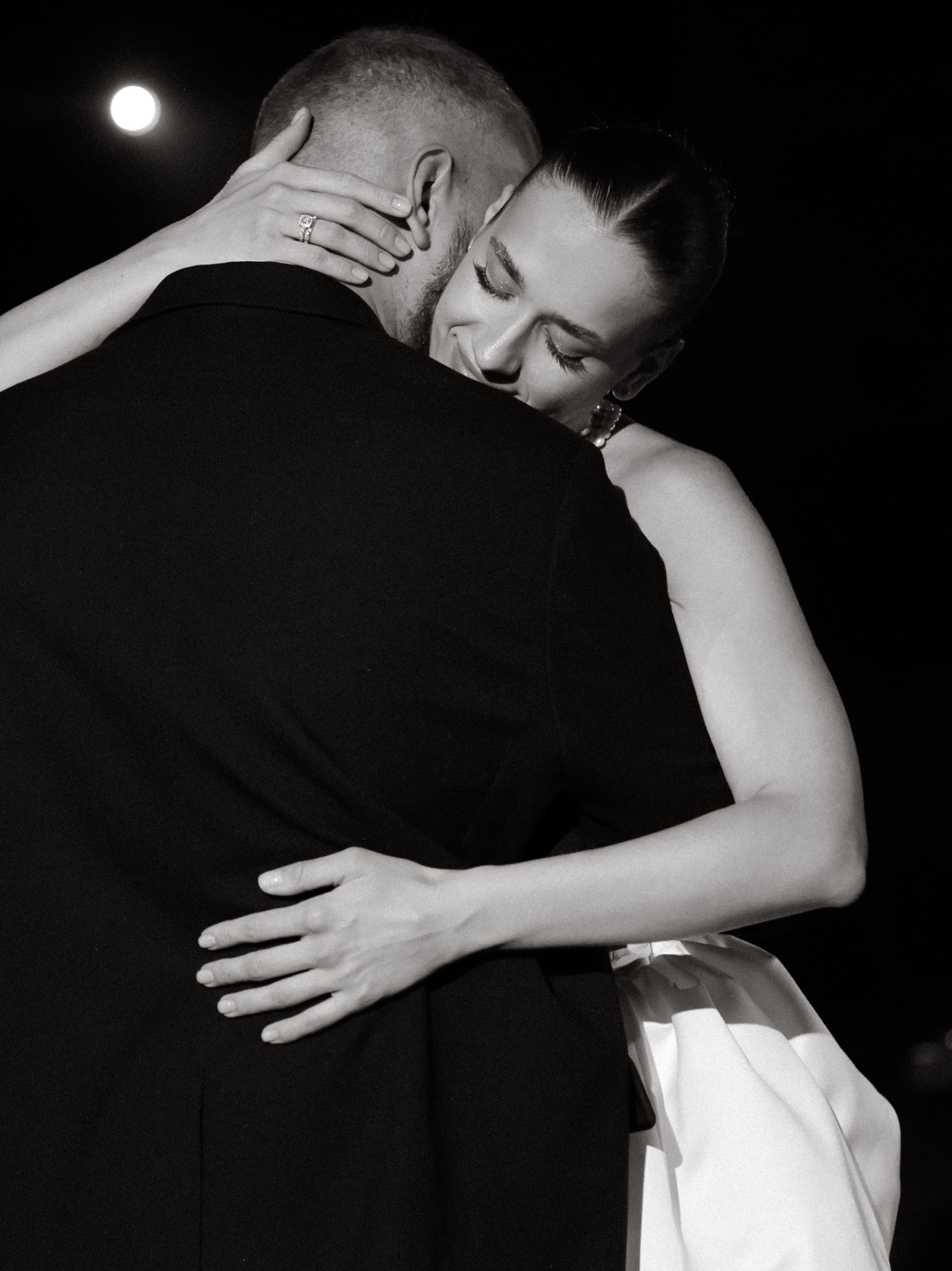 Я хотела создать итальянский вайб: огромное количество свечей в колбах с водой, никаких цветочных декоров, вилла с красивым видом, дресс-код total black, букет невесты из красных роз. Всё должно было быть очень элегантно.