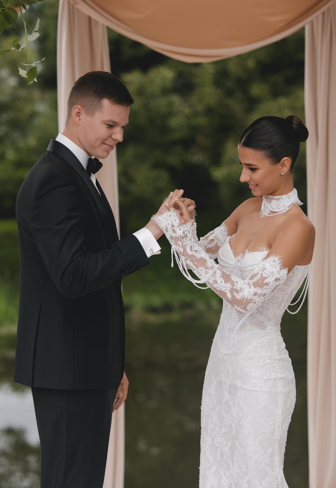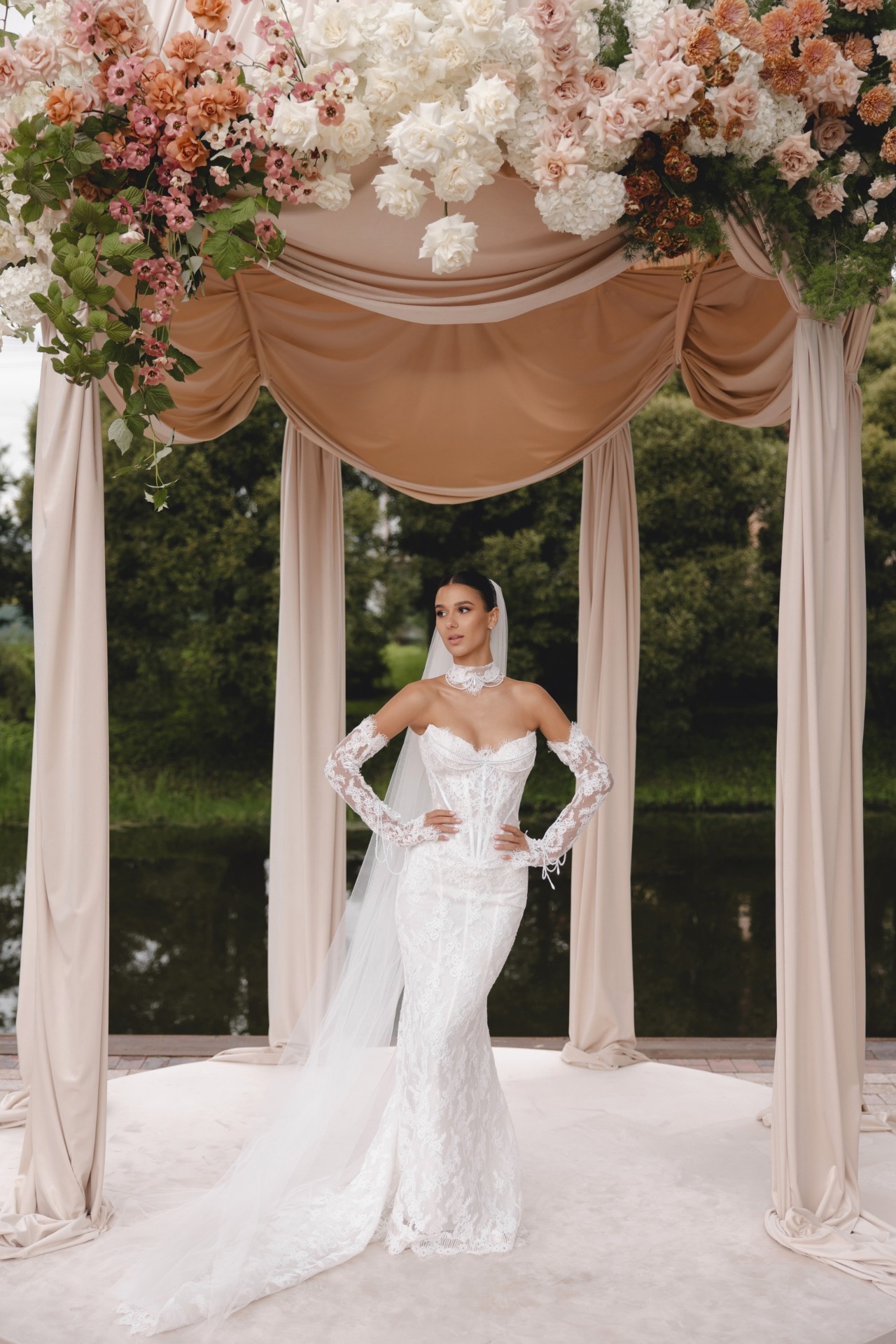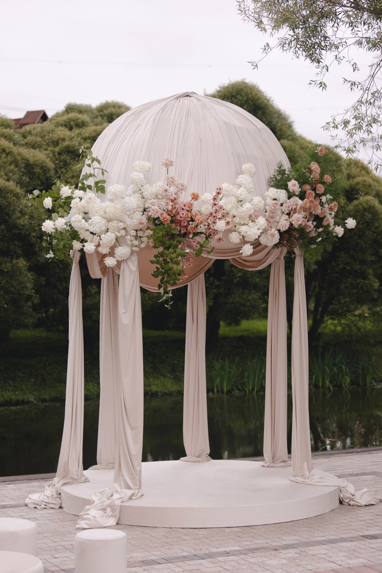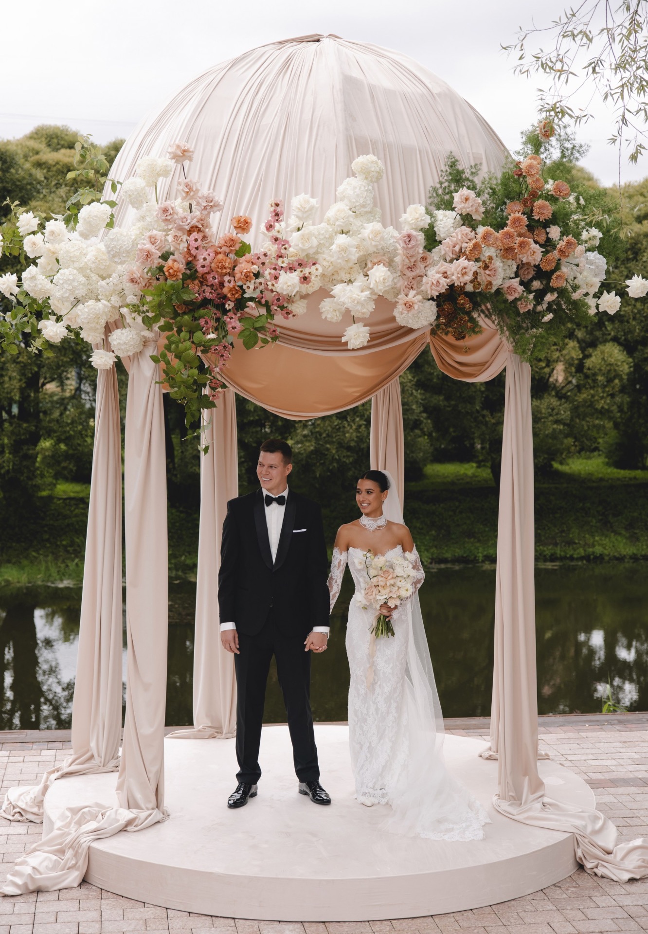 Я очень хотела выездную церемонию у ротонды — это была моя мечта, поэтому в первую очередь мы рассматривали локации, где она есть, но их оказалось не так много. В какой-то момент нам предложили возвести свою ротонду на локации, где её не было, но которая территориально была удобнее всего. Мы согласились, и получилось шикарно!
