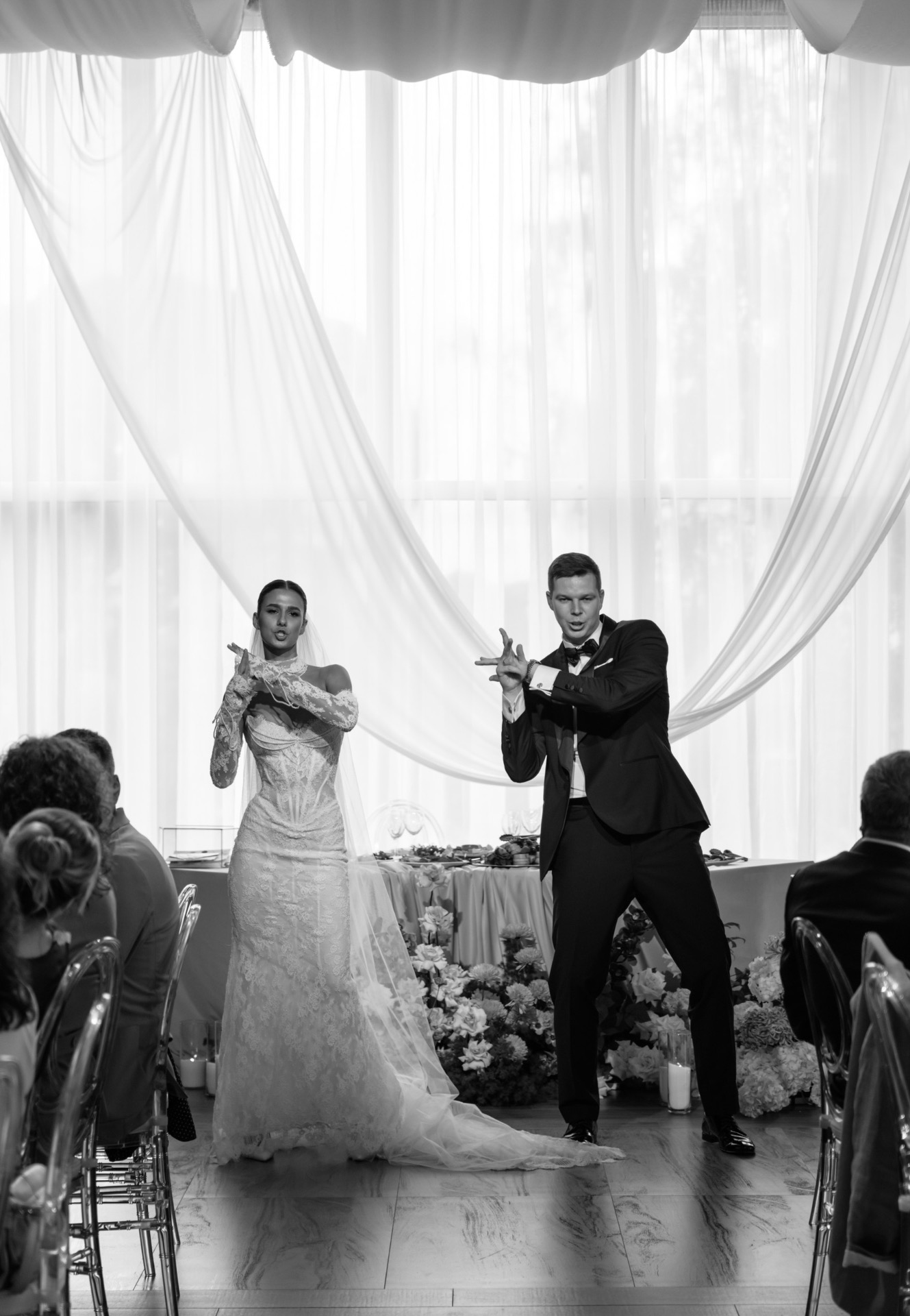 После официальной и сентиментальной части мы направились в зал, где подготовили выход под трек Miyagi & Эндшпиль. Я увидела эту идею в социальных сетях, и мне очень захотелось её реализовать.