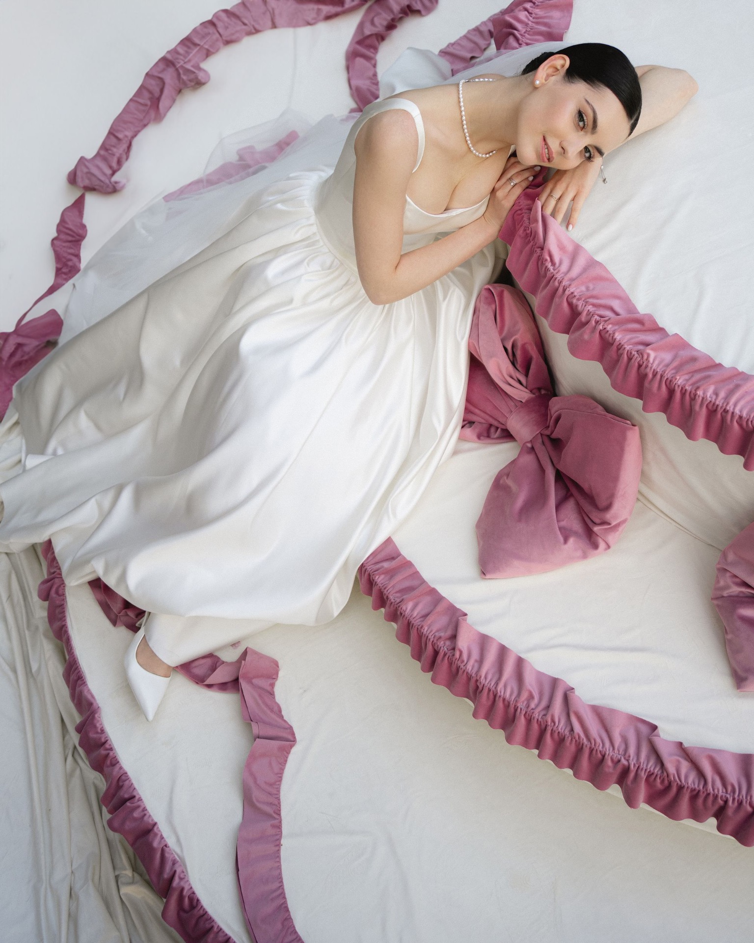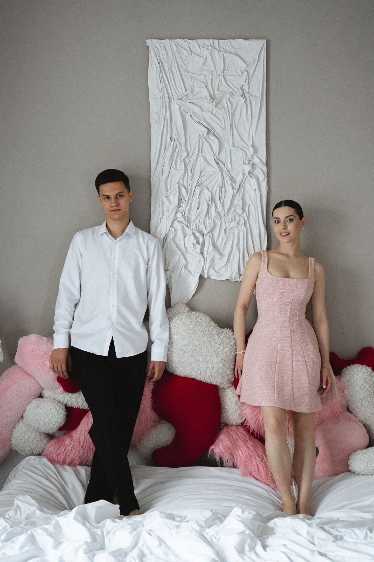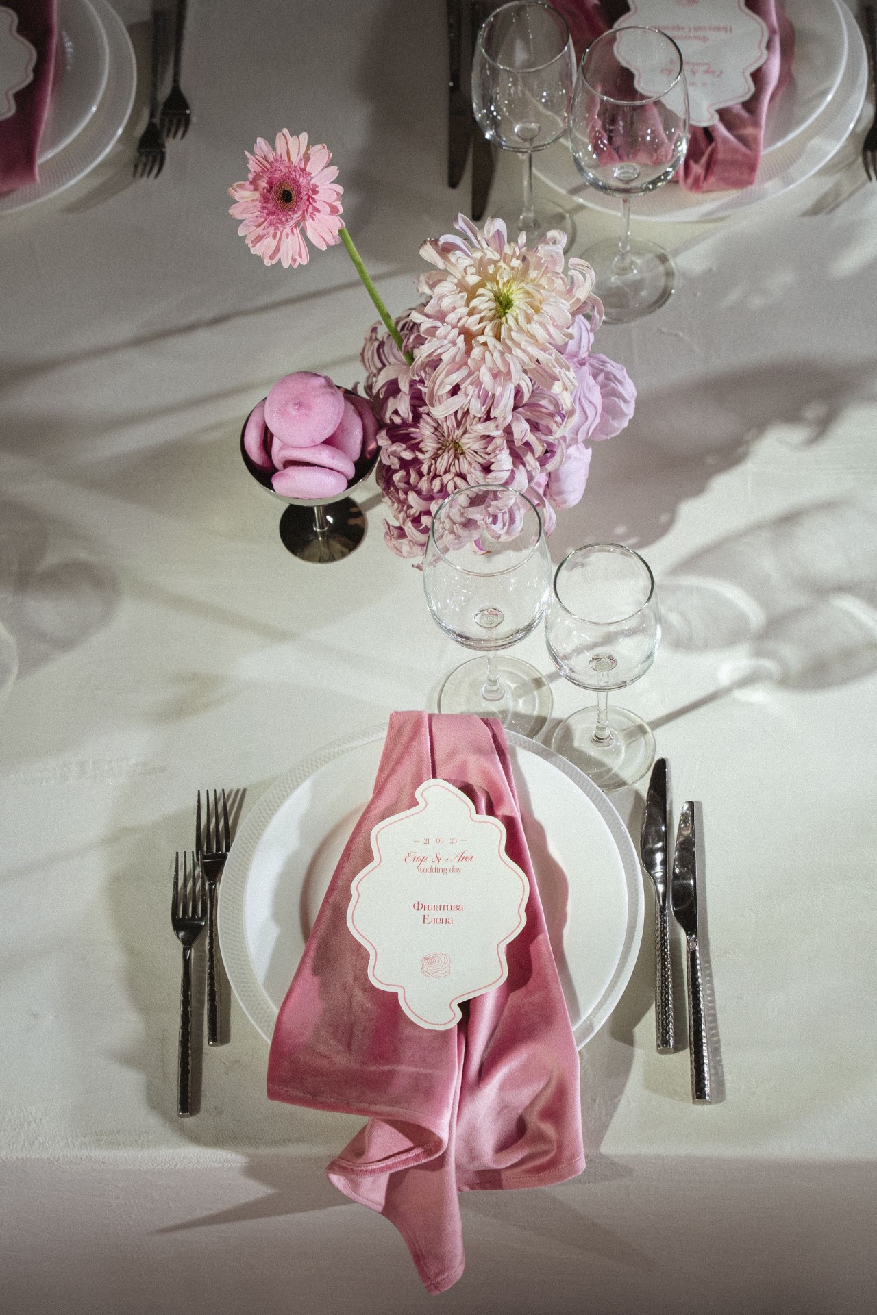 Я очень люблю сладкое, у нас с Егором очень мягкие, нежные черты внешности — из этого родилась наша тортно-зефирная свадьба. Сначала мы хотели сделать розовый монохром, но Егор сказал, что всё-таки стоит разбавить его белым, чтобы избежать розового безумия.