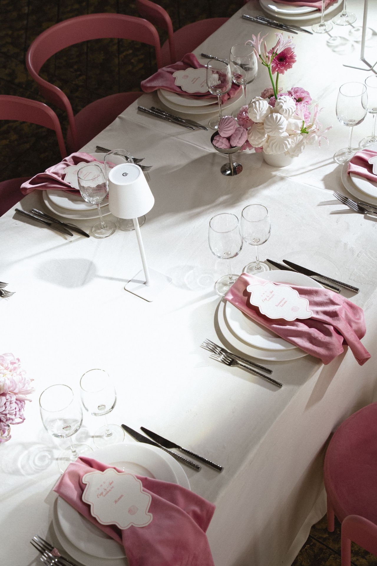 За основу мы взяли розовый и белый цвета, а в деталях использовали настоящий зефир. Флористика была минималистичная, а цветы также были отсылкой к чему-то конфетному. Стулья стали важным акцентом: они были словно леденцы, без них картинка выглядела бы совсем иначе.