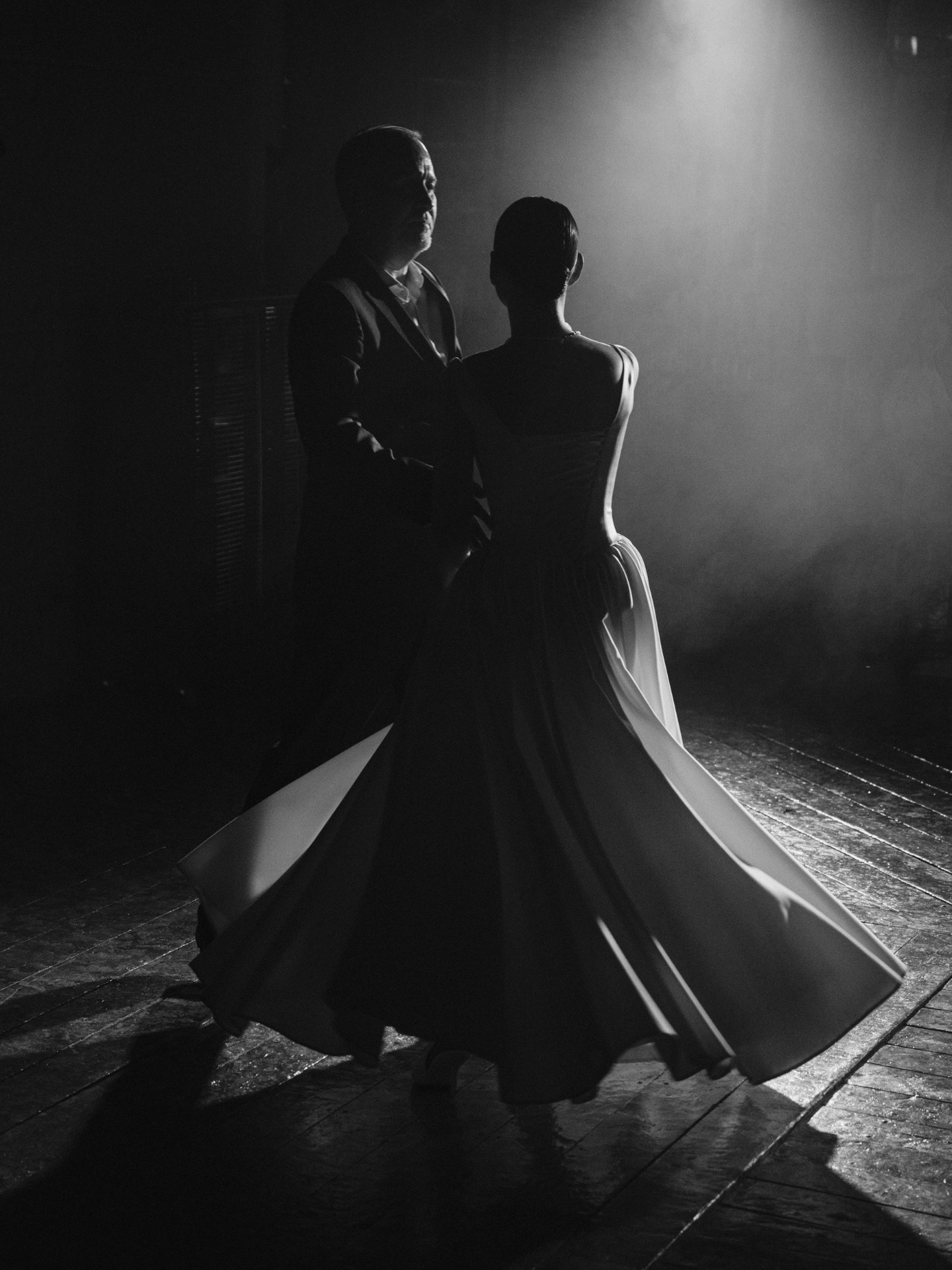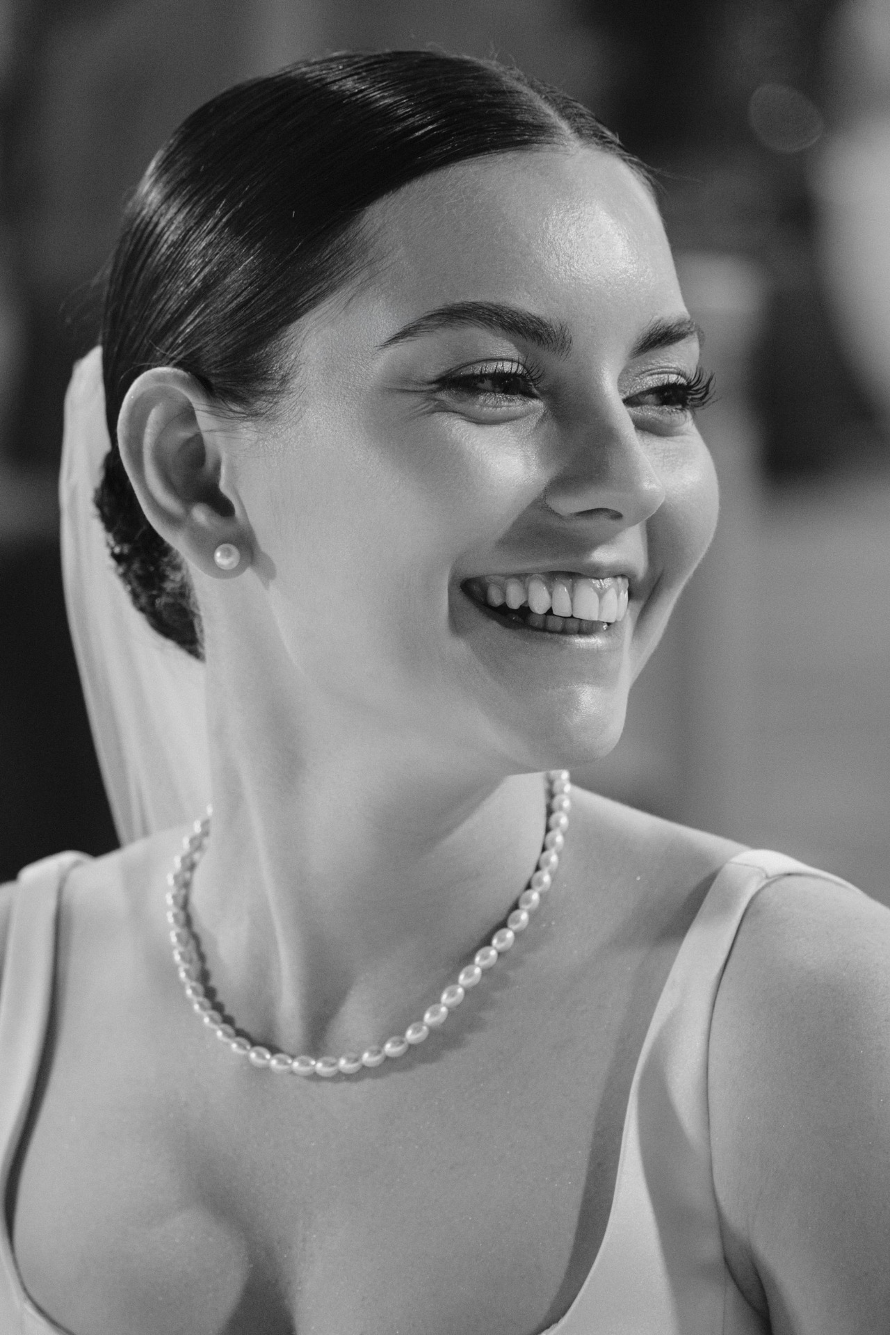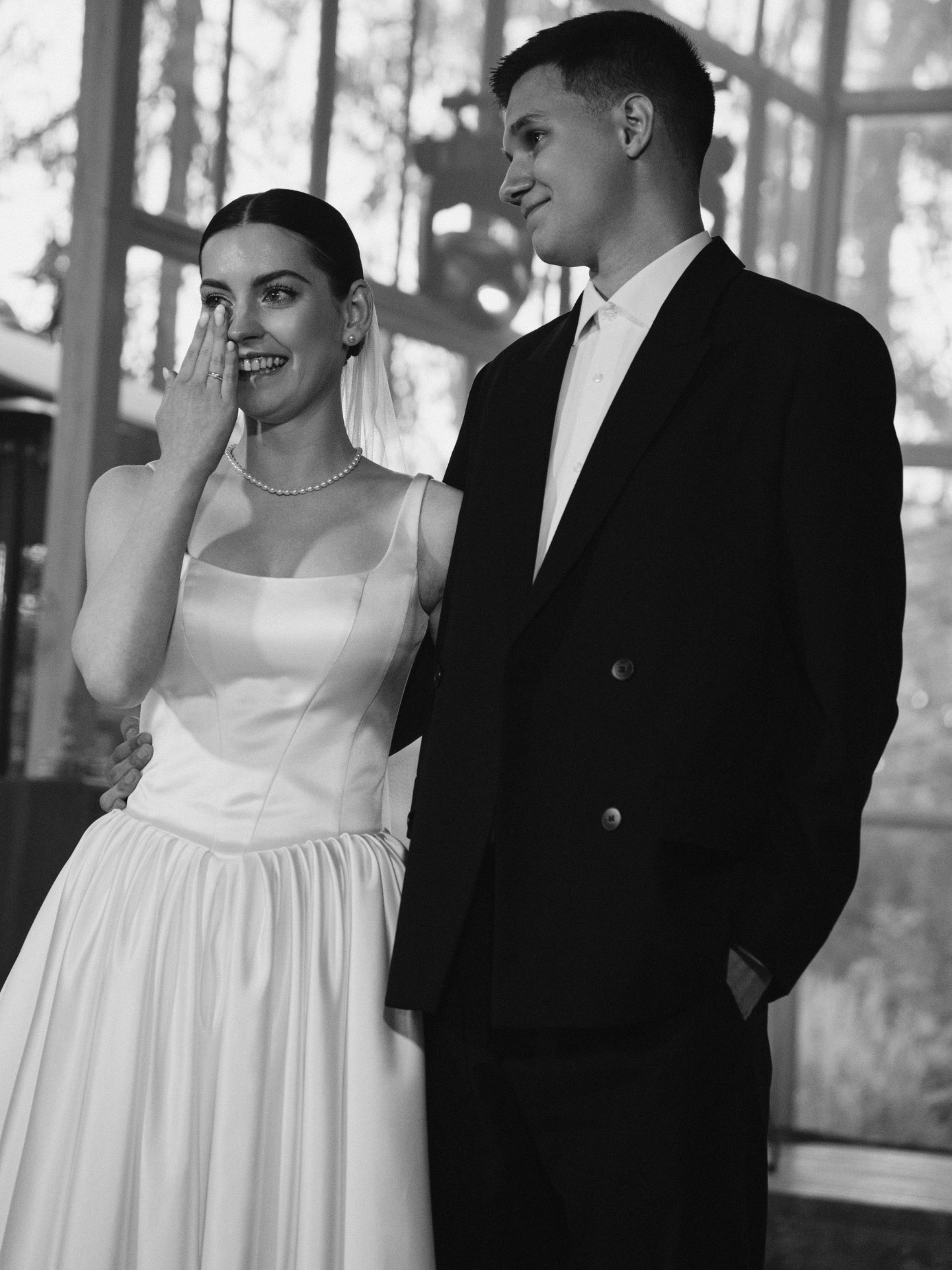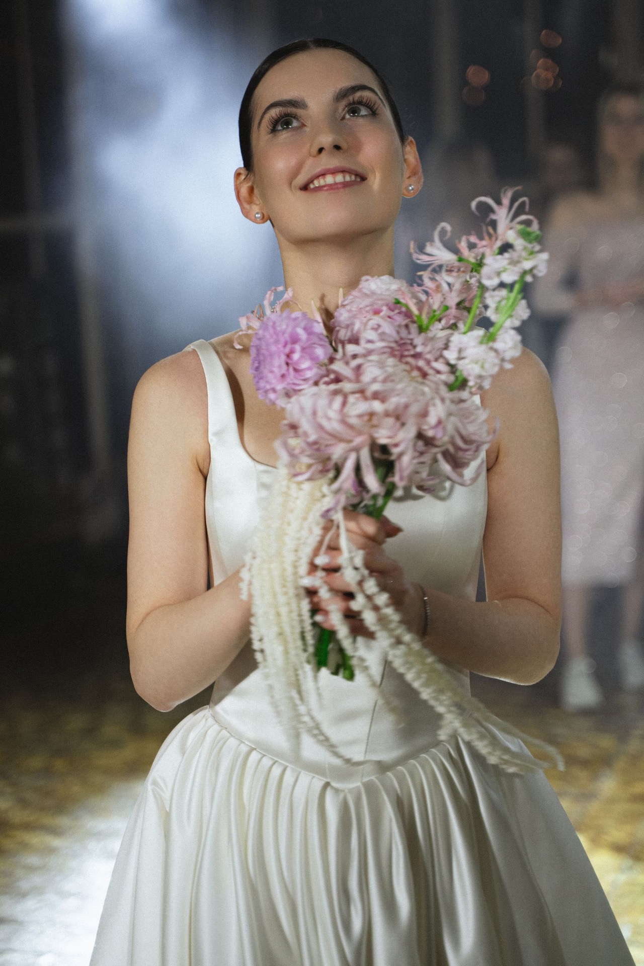 Я примерила много платьев, но выбрала то, к чему склонялась изначально: платье с V-образным кроем юбки, лаконичным верхом и чуть завышенными боками. Я правда была похожа на статуэтку на торте. В качестве причёски я остановилась на гладком низком пучке — классике, которая мне очень подходит.