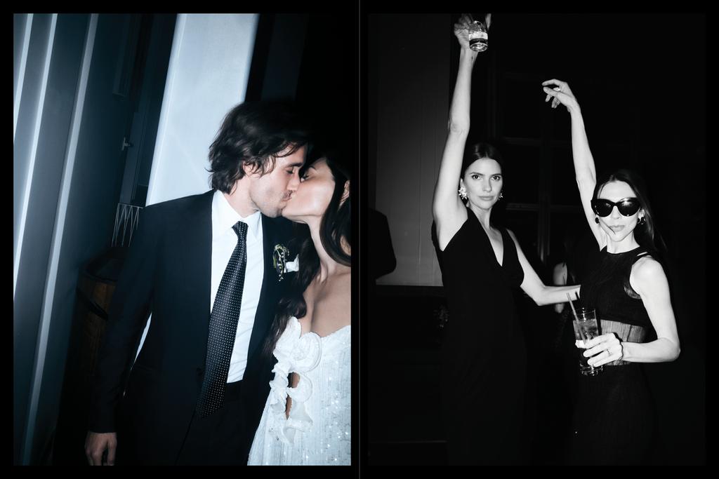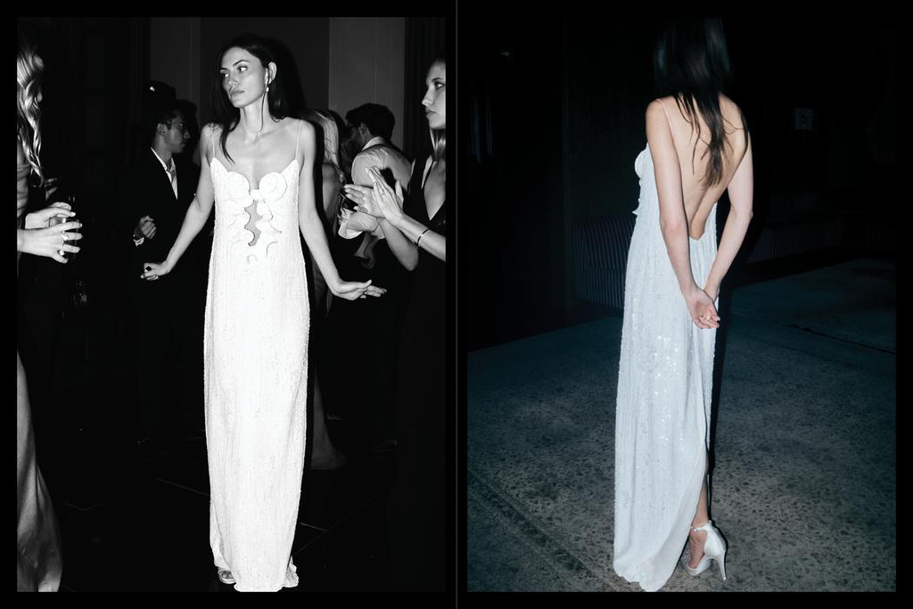 По всем традициям классической американской свадьбы — сначала была репетиция ужина в Mr. Chow, где Фиби была одета в винтажный John Galliano. Образ дополнили украшения от Ana Khouri jewellery.