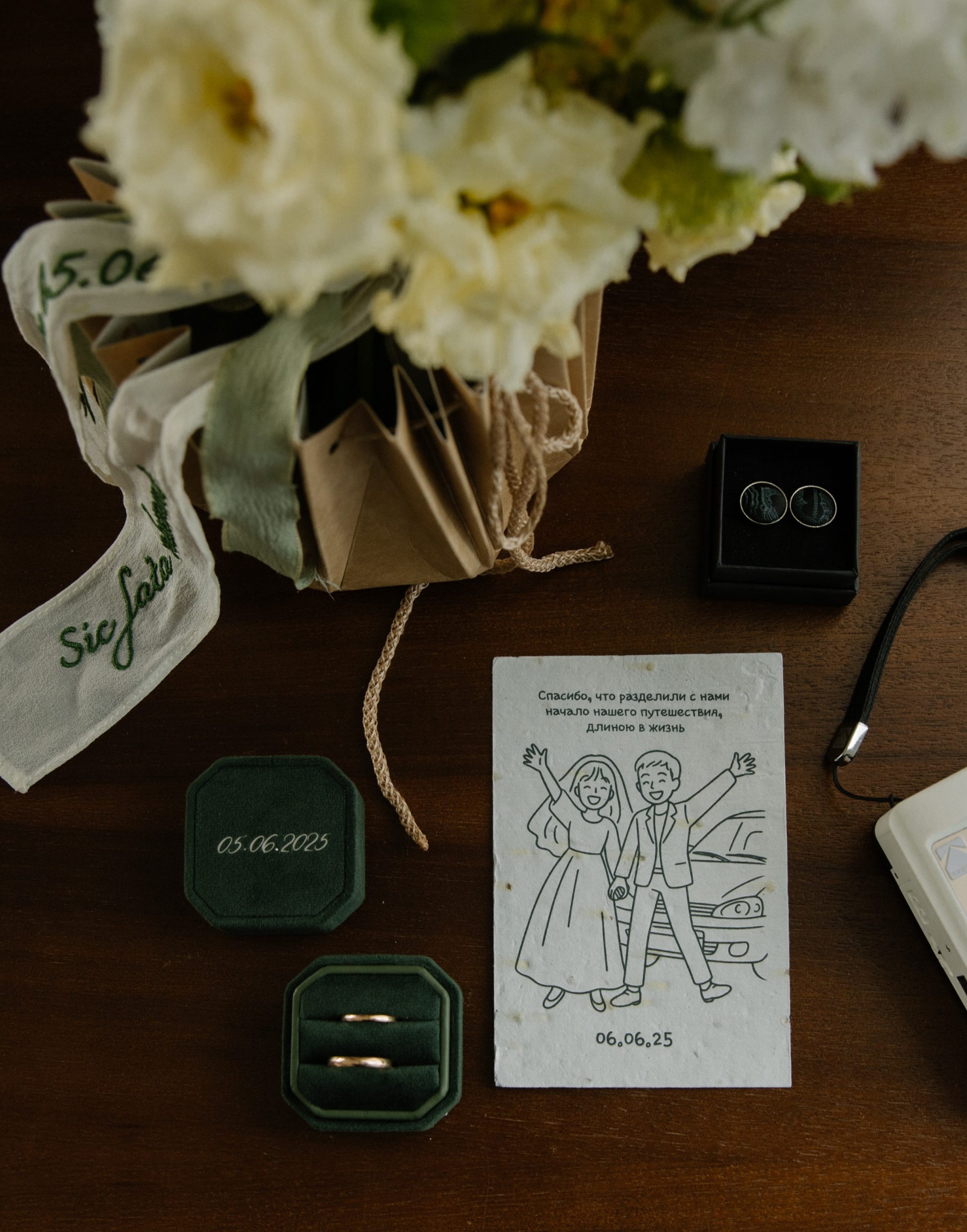 Так у них и появилась идея создать свадебные открытки с уникальным дизайном, подписанные вручную для каждого гостя и подрядчика — своего рода бонбоньерки, наполненные теплом и вниманием.