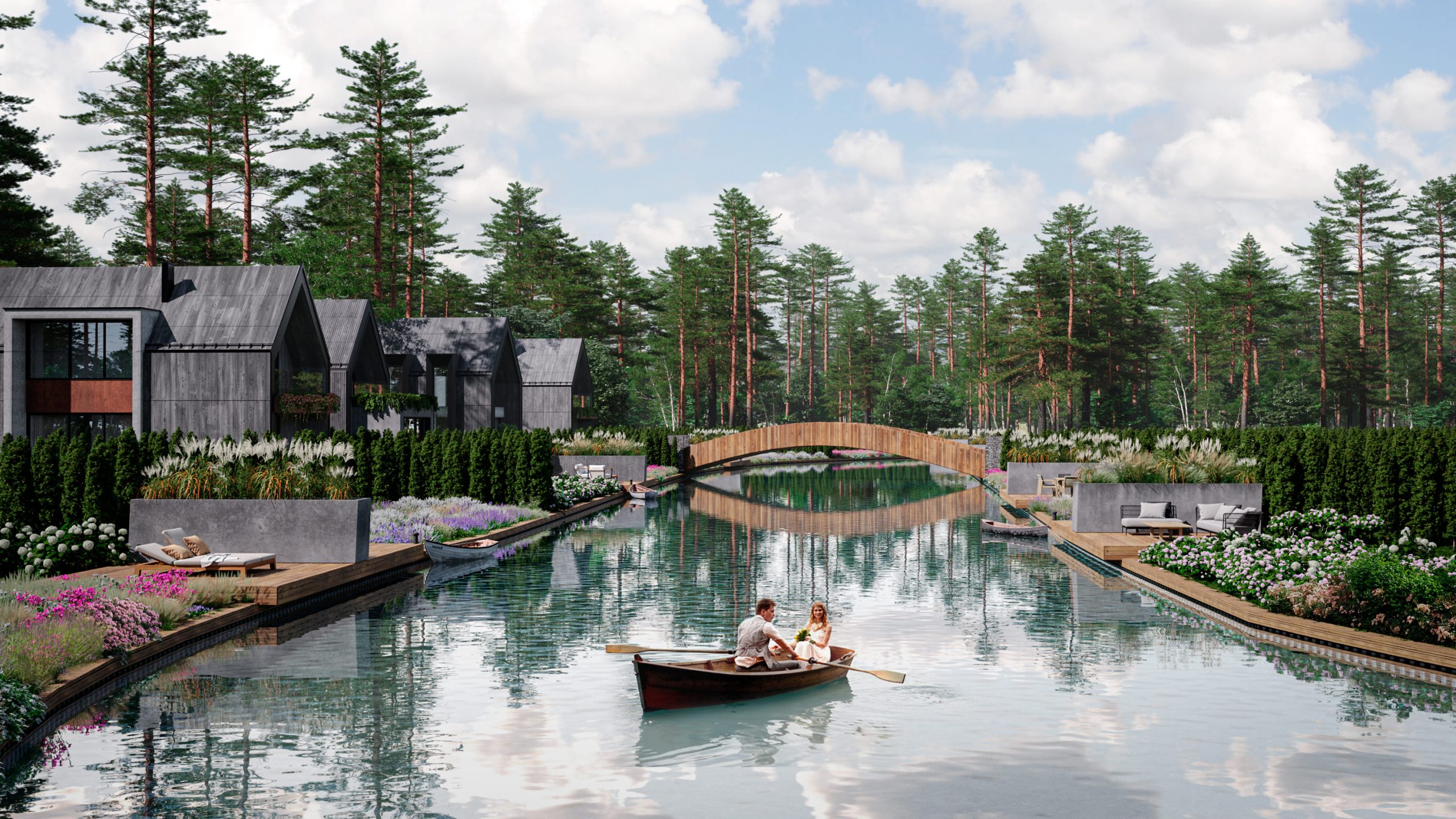 В продаже осталось всего несколько участков с выходом на судоходный канал. Других посёлков с собственным каналом в России пока нет, а в Форест Вилладж ещё и вполне рабочий способ передвижения по посёлку: летом на безмоторных лодках и сапах, а зимой на коньках.