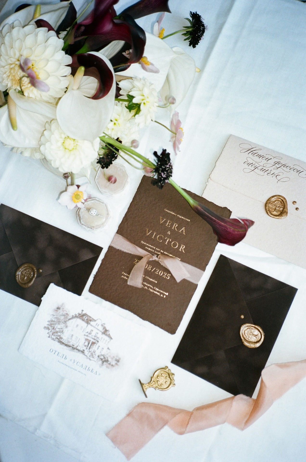 Финал мы сделали нестандартным. Вместо салюта мы разбрызгивали шампанское. А на прощание каждый гость получил бархатные конверты, запечатанные сургучом — в них лежали письма, написанные от руки.