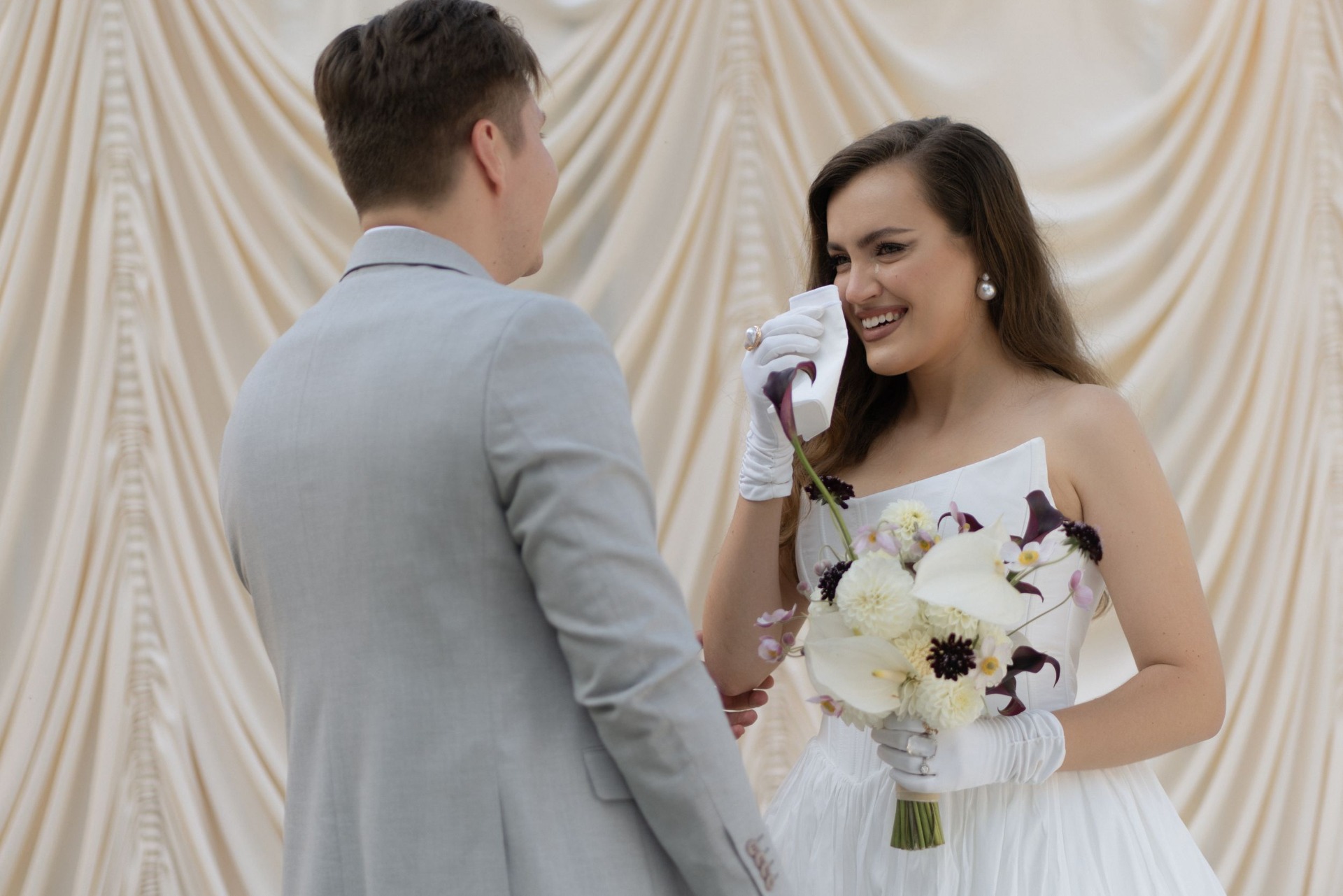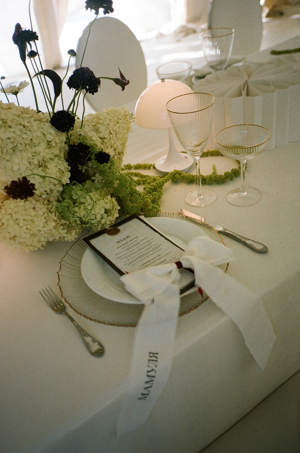 К свадьбе мы готовились чуть больше года. Для выбора палитры и концепции мы просто вспомнили, что мы любим и какая эстетика нам близка. Например, кодовым названием нашей свадьбы было «Сливочное масло» (потому что мы — приторно-сливочная парочка).