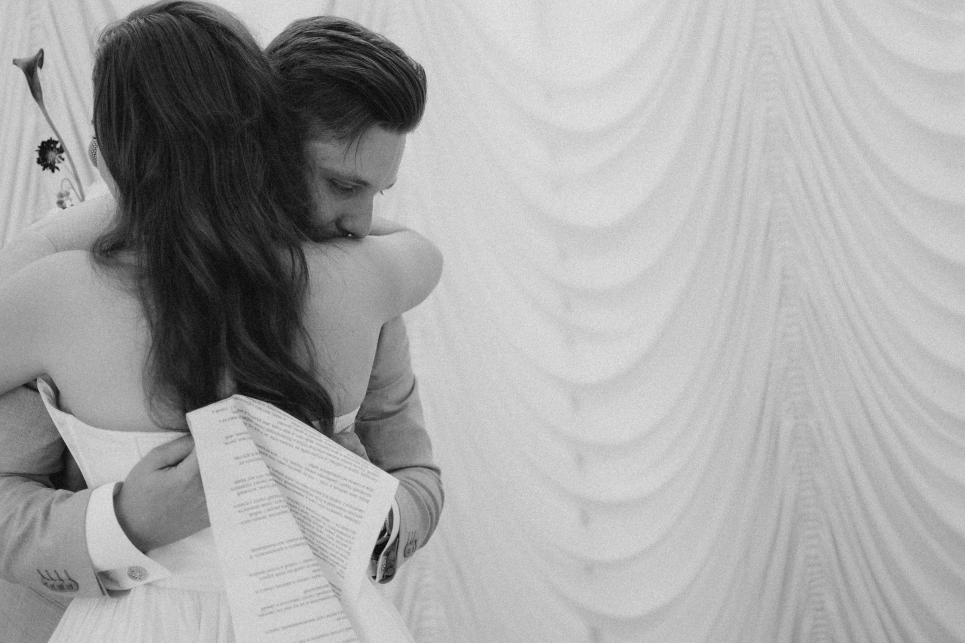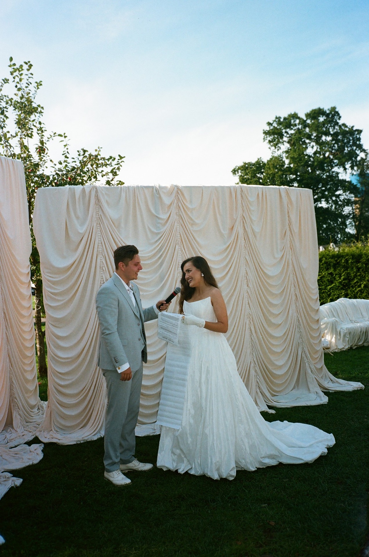 Церемония прошла в слезах счастья! Наши тканевые клятвы были сложены в свиток, и в момент раскрытия этого свитка длиной 1,5 метра сразу стало понятно, что времени на прочтение понадобится гораздо больше, чем обычно.
