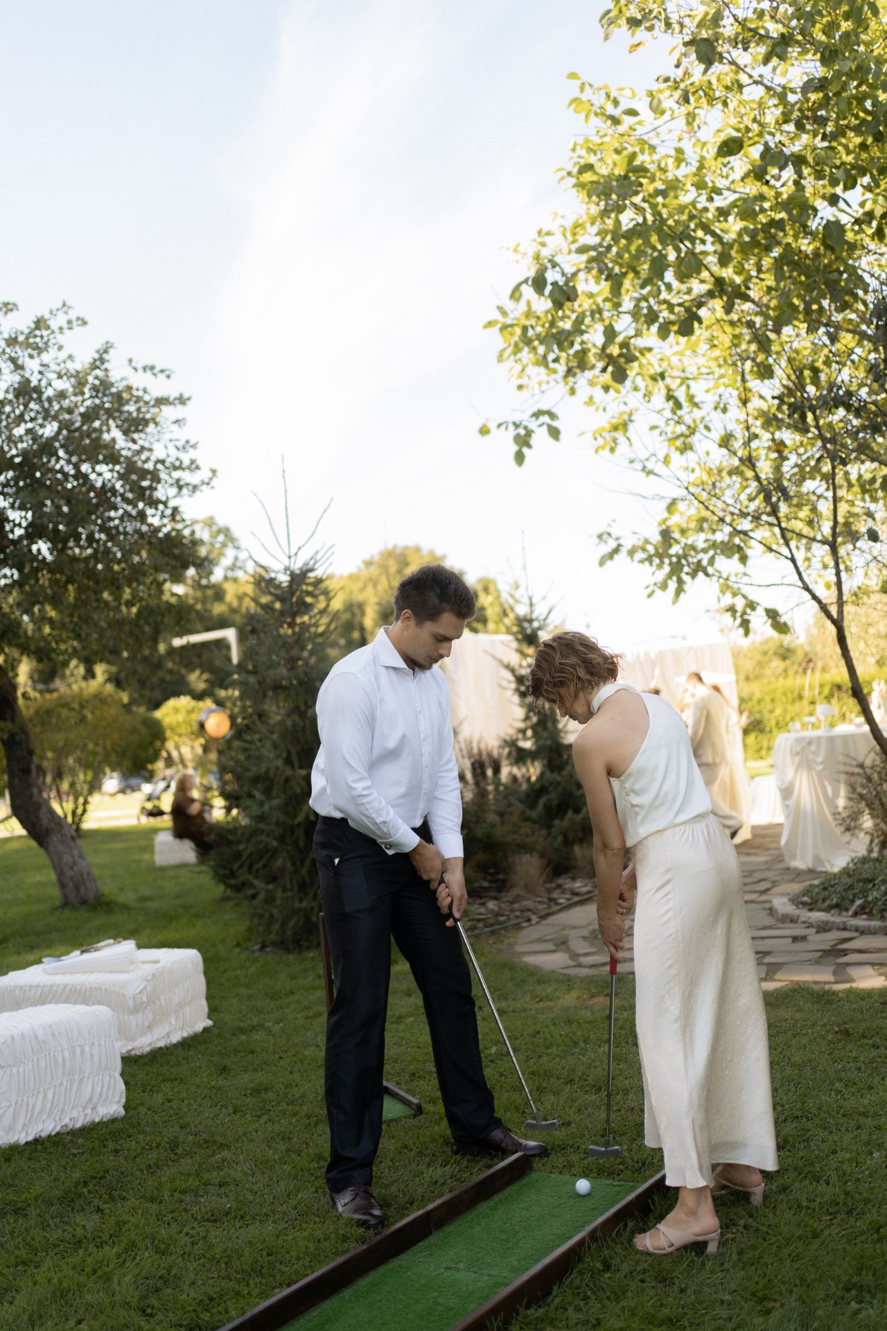 Вечер получился очень живым. На площадке постоянно что-то происходило: кто-то играл в мини-гольф или винное казино, кто-то снимал на плёночные фотоаппараты, кто-то проводил время у бара с фирменными коктейлями или в сигарной зоне.