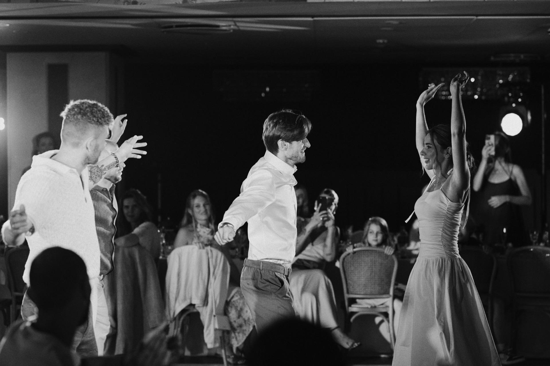 Ведущий классно чувствовал аудиторию, как будто он наш давний друг. Ему удалось создать для нас разные рандомные приколы — например, он придумал выключить свет, посадить всех гостей в круг и всем вместе спеть песню. У нас получился почти что терапевтический хор.