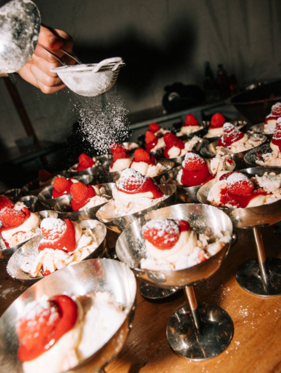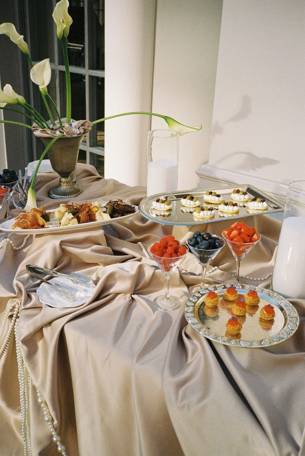 Вы можете сделать и отдельную сладкую зону с фруктами, мороженым и выпечкой. Красивые мини-тортики, капкейки, кексы, макаруны, печенье — всё это может быть частью сладкой зоны, всё зависит от ваших предпочтений и предпочтений ваших гостей. Помните, что в летний период лучше подавать сезонные фрукты и не располагать стол на открытом воздухе, иначе сладкое может подтаять, а закуски обветриться.