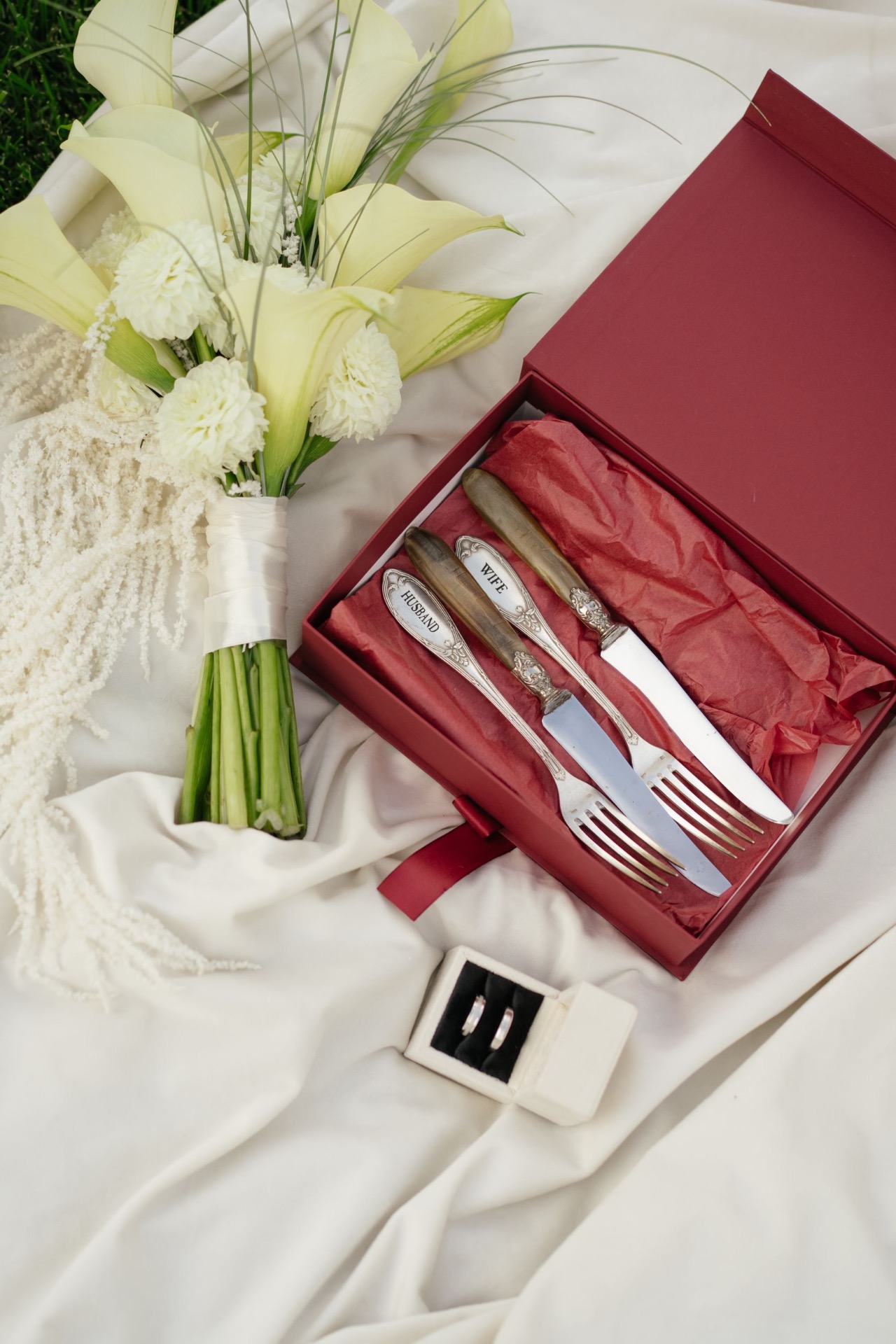 На церемонии было много милых моментов. Во-первых, её проводил брат Серёжи. Во-вторых, во время клятв я преподнесла Серёже сюрприз — серебряные столовые приборы с гравировкой. В-третьих, в конце церемонии всем подали бокалы с шампанским, и мы сделали общий чин-чин.