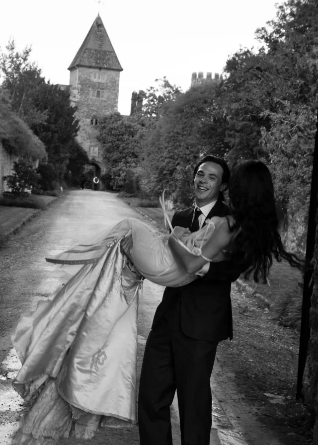 Церемония прошла в Ирландии, в атмосферном готическом замке Лисмор. На свадьбу пригласили около 40 гостей, а к алтарю Харли сопровождала мама.