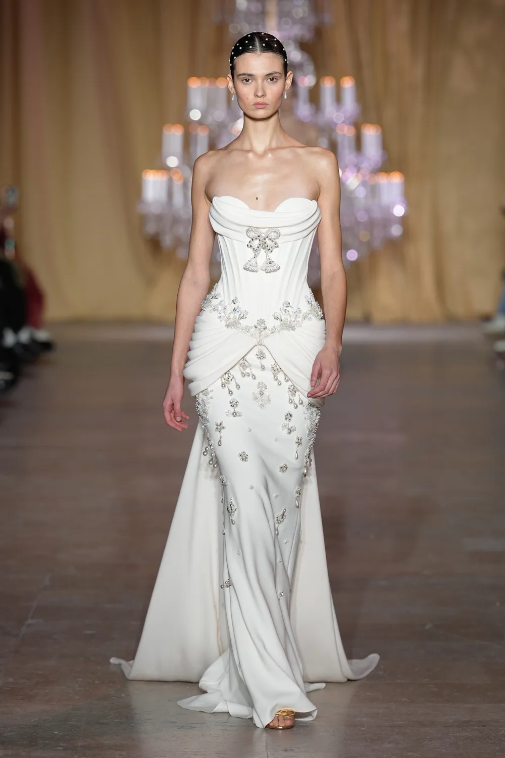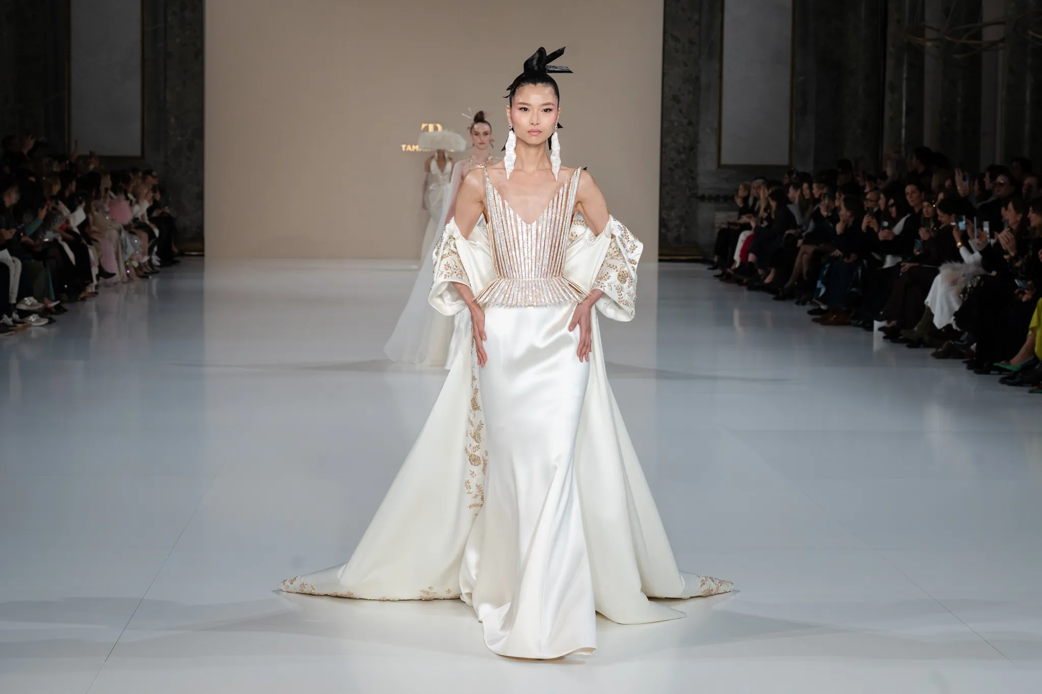 Новая коллекция Dior под руководством Джонатана Андерсона впечатлила скульптурными моделями, которые подойдут авангардной невесте. Gaurav Gupta, в свою очередь, представил по-настоящему мечтательные образы для романтичного настроения. А коллекция Tamara Ralph с обилием белых нарядов выглядела почти как полноценная свадебная линейка.
