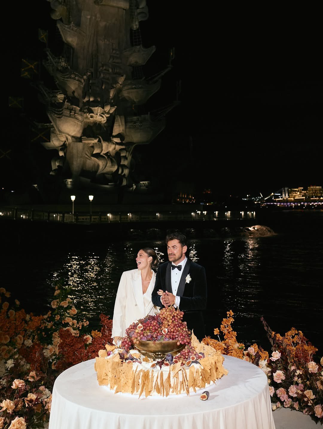 Камерная свадьба состоялась в яхт-клубе с видом на Москву-реку. Во время церемонии кольца молодым вынес сын Агаты, Тимофей.