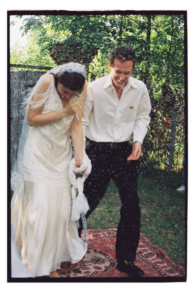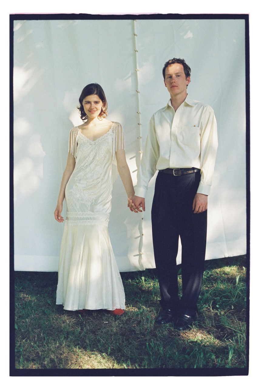 Молодожёны сами создавали себе образы: Маша выбрала шёлковое платье Lillie Rubin и туфли с Aliexpress, а Илларион — брюки с «Авито» и рубашку отца.