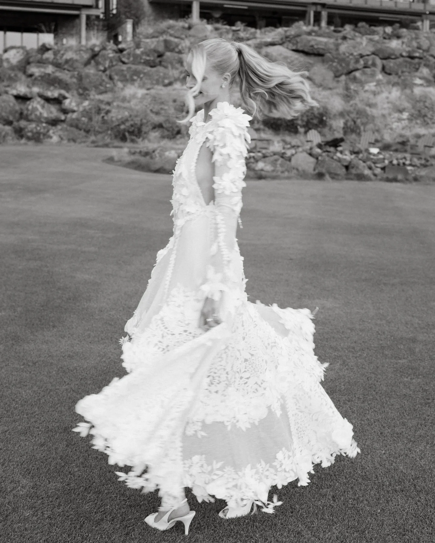 Пара отметила свадьбу в Санта-Барбаре. Невеста выбрала атласное платье Ralph Lauren с ручной вышивкой, а жених классический смокинг того же модного дома.