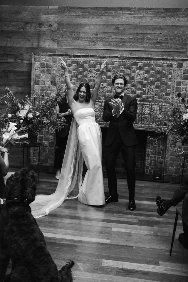 Свадьба прошла в ресторане The Milling Room в Нью-Йорке. Аарон выбрал смокинг Berluti с аксессуарами Cartier, а Эрика предстала в винтажном платье Oscar de la Renta.